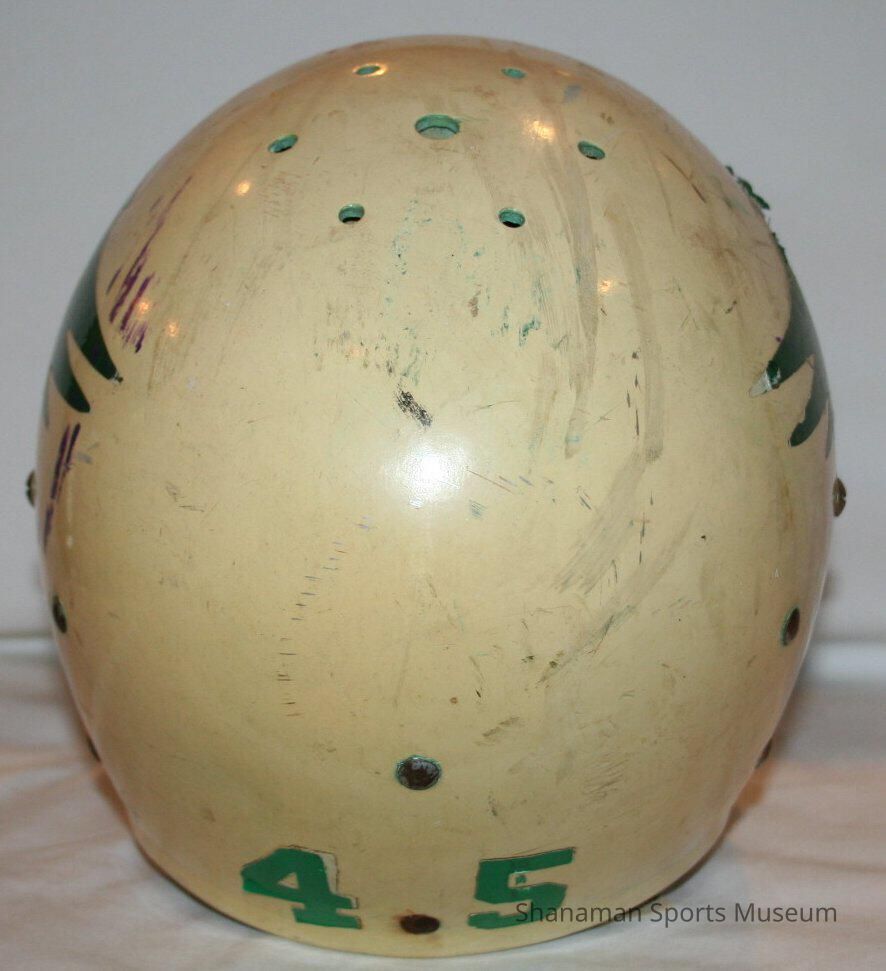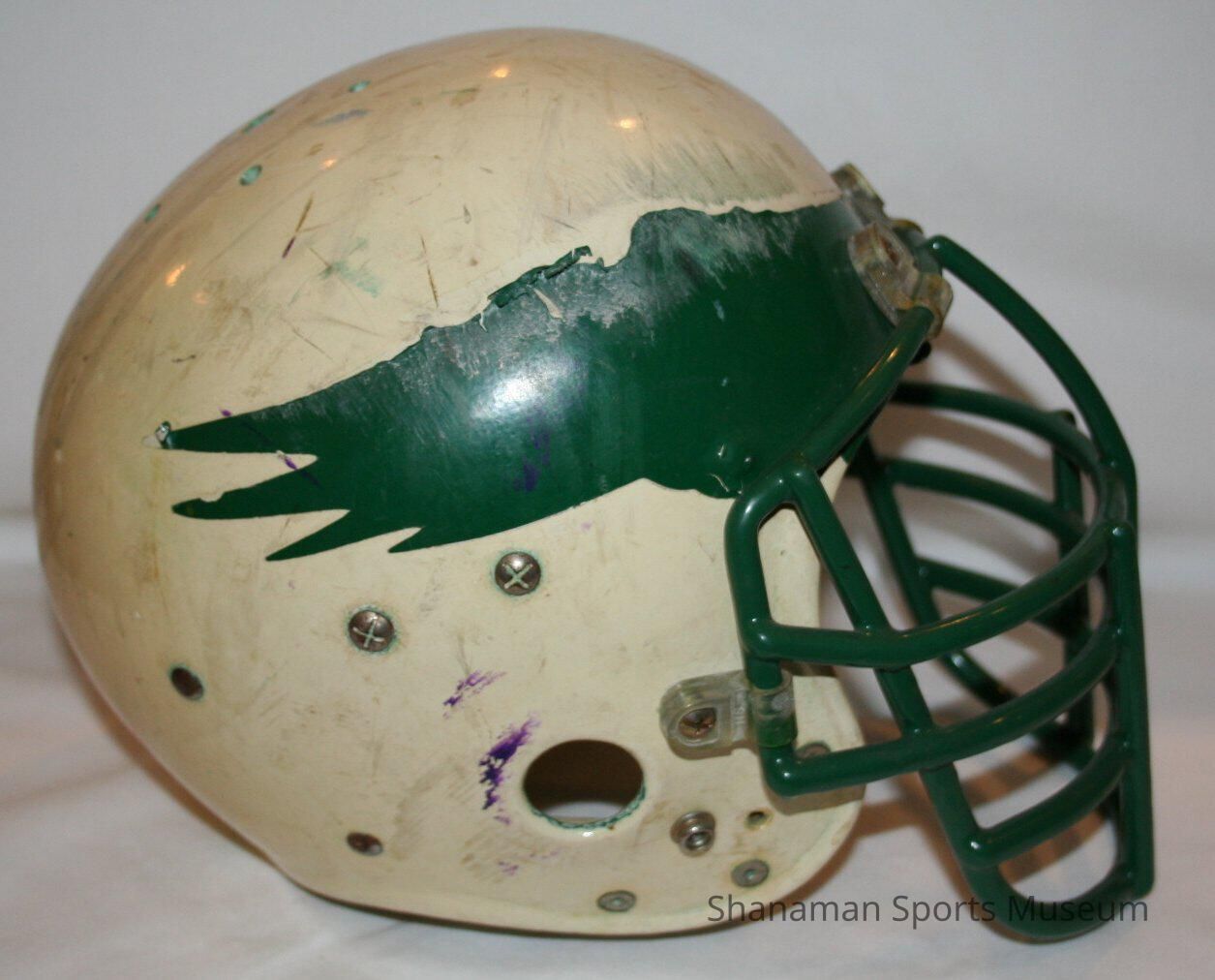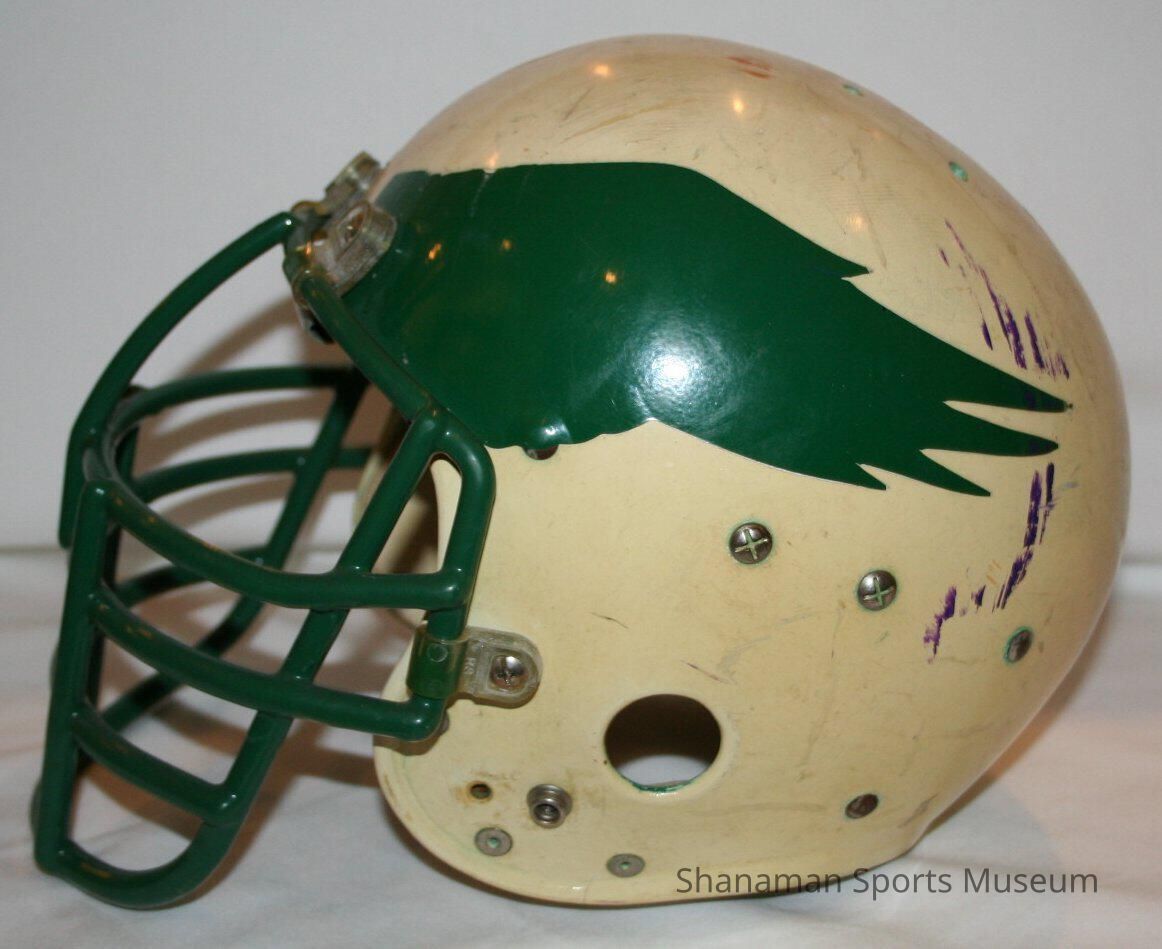 Ron Medved wore this football helmet when he played for the Philadelphia Eagles. After graduating from Bellarmine Prep in 1962, he played running back at the University of Washington from 1963 to 1966 and played on the Huskies Pac-8 championship team in 1964. He was the team captain and an academic All-American in 1965. That year he earned a spot in the East-West Shrine game and Hula Bowl game and also played in the coaches' All-American Game. After being the UW's starting running for three years, he was drafted by the Philadelphia Eagles and played defensive back. From 1966-70, Medved played defensive back for the Eagles and was the team's player representative from 1969-70. He was inducted into the Tacoma-Pierce County Sports Hall of Fame in 2005.Lexicon