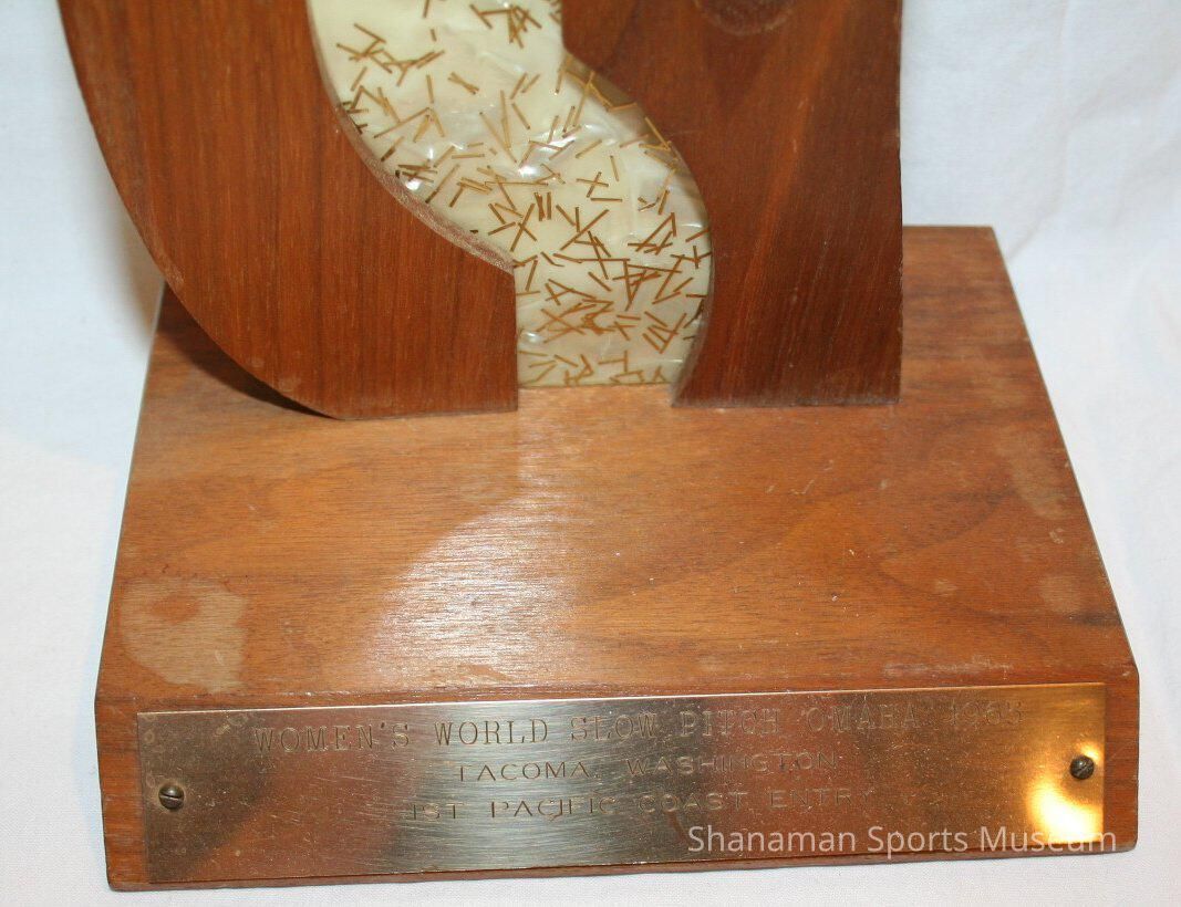 Trophy from first women's slowpitch softball team - Spud's Pizza Pete - from West of the Mississippi to ever