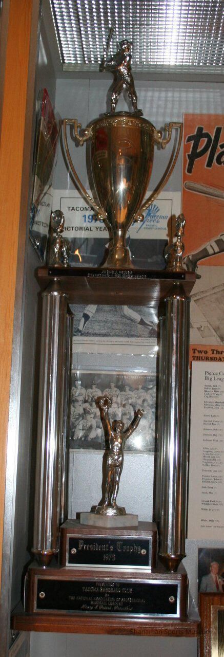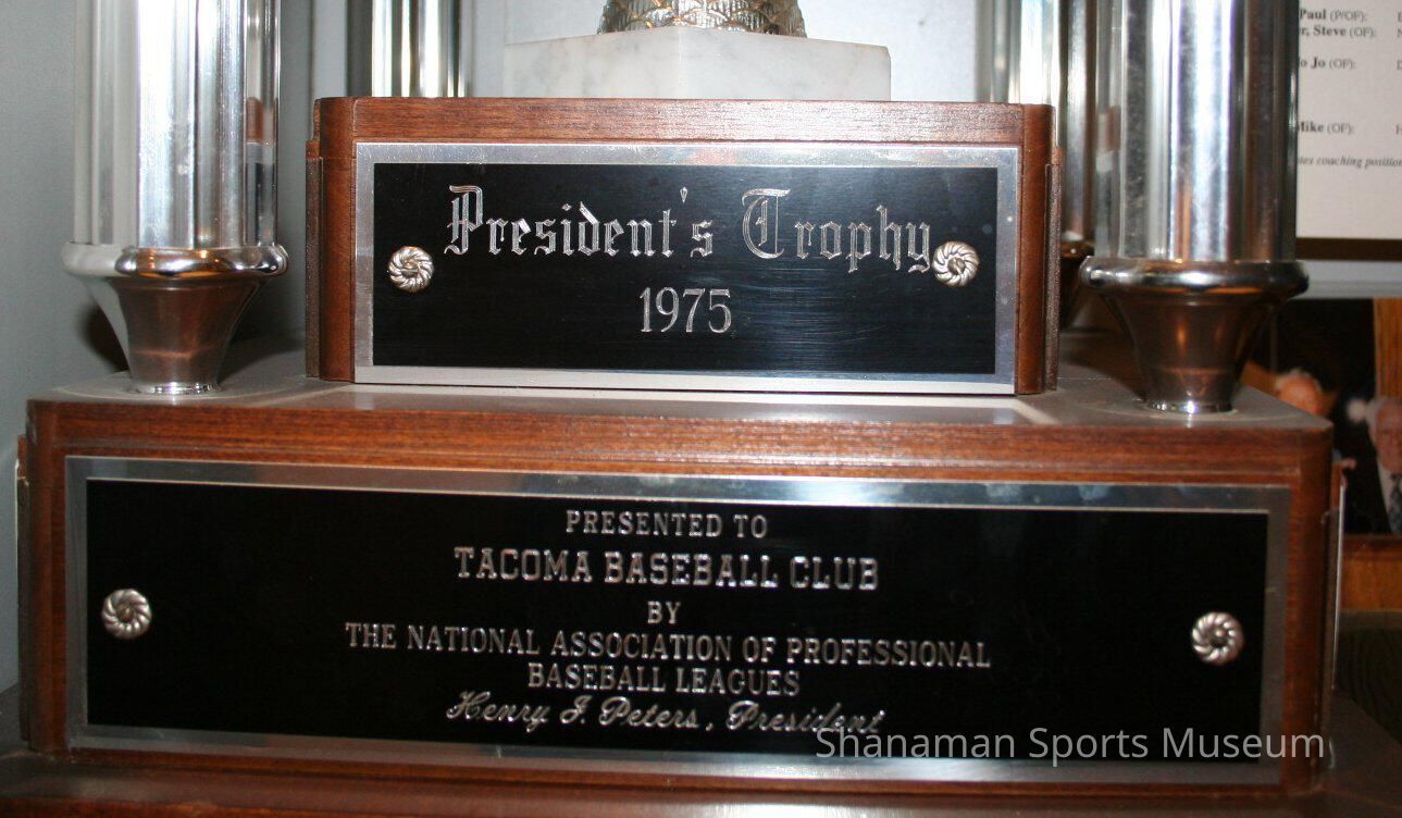 The John H. Johnson President's Award was presented in 1975 to the Tacoma Twins by the National Association of Professional Baseball Leagues. The award is presented annually by the Minor League Baseball to recognize the best complete baseball franchise. It is considered the league's top honor. The trophy was awarded to Jim Zarelli, the Tacoma Twins president, and to Stan Naccarato, the vice president and general managers of the Twins. The award is named after John H. Johnson, who served as the MLB president from 1979 to 1988. The annual award was first presented in 1974 and Tacoma won the award twice in 45 years. The Tacoma Tigers also won it in 1982.