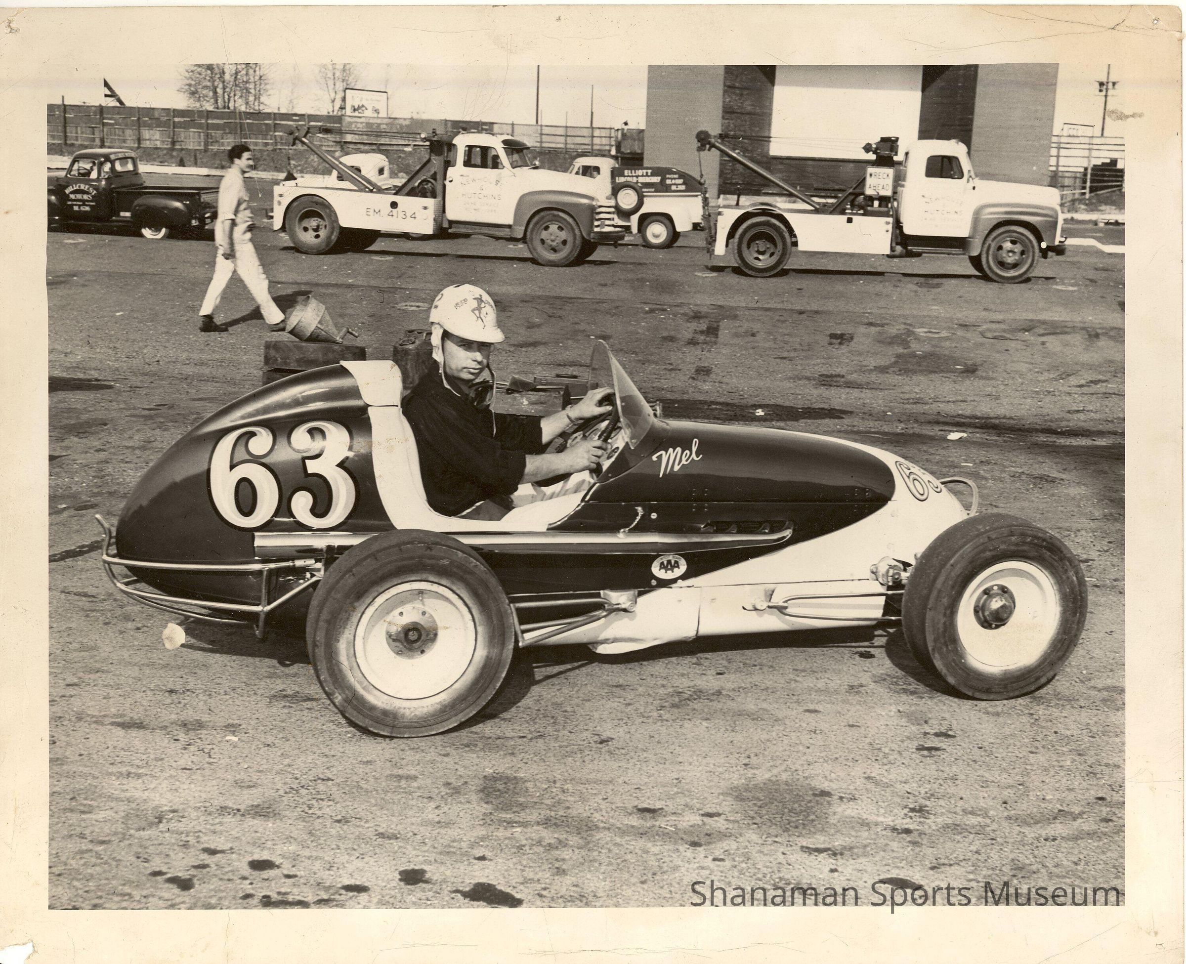 Mel Maughey, an avid midget race car enthusiast, sits in his midget racing car, No. 63. Maughey had five or six midget race cars and was a frequent driver in local races. Midget car racing started in Tacoma in the 1940s and today races at South Sound Speedway in Tenino.Lexicon