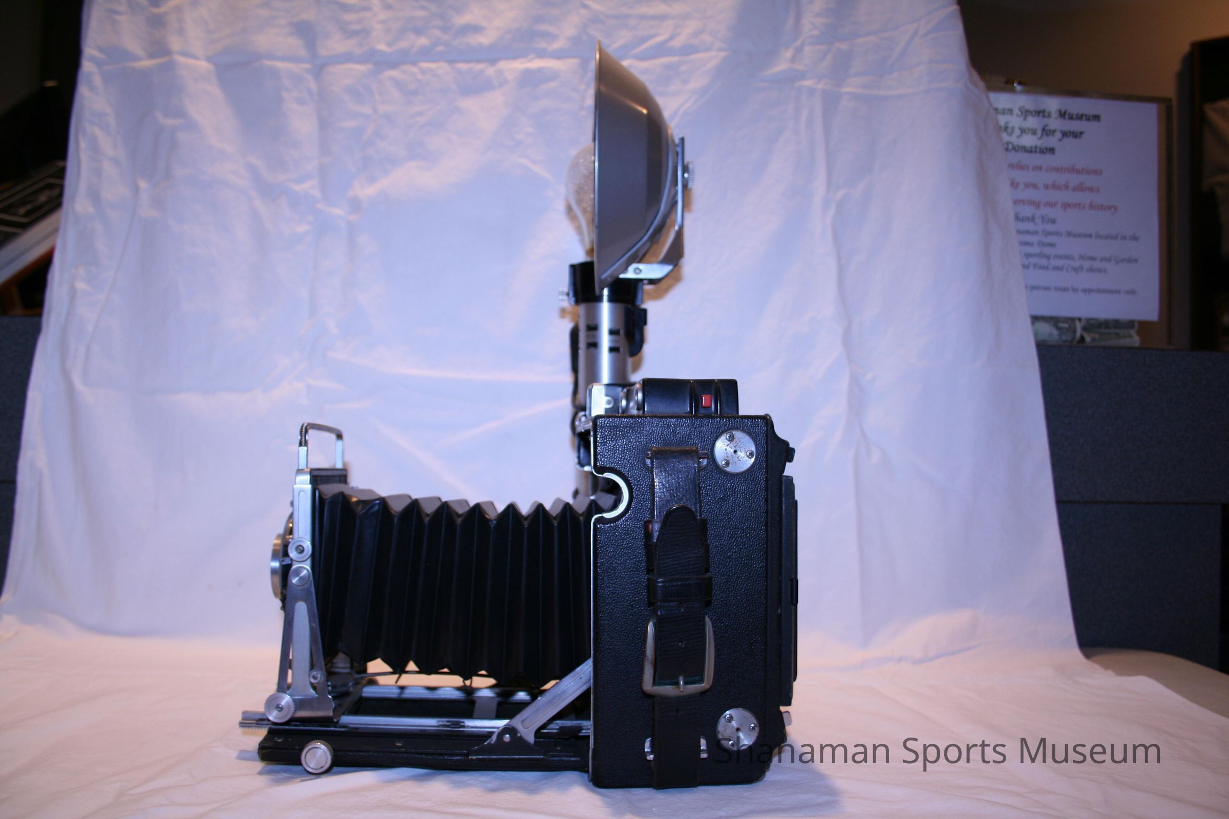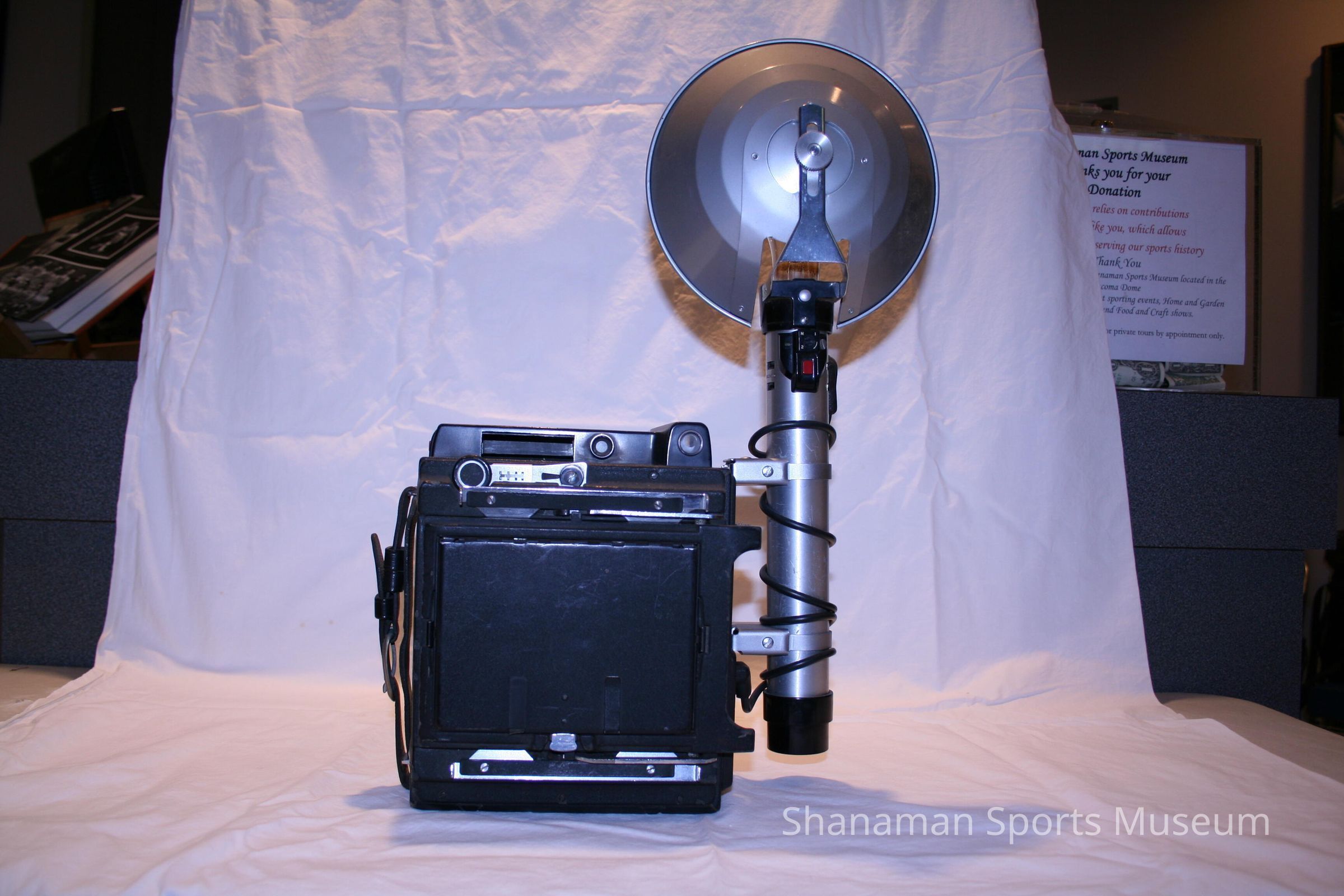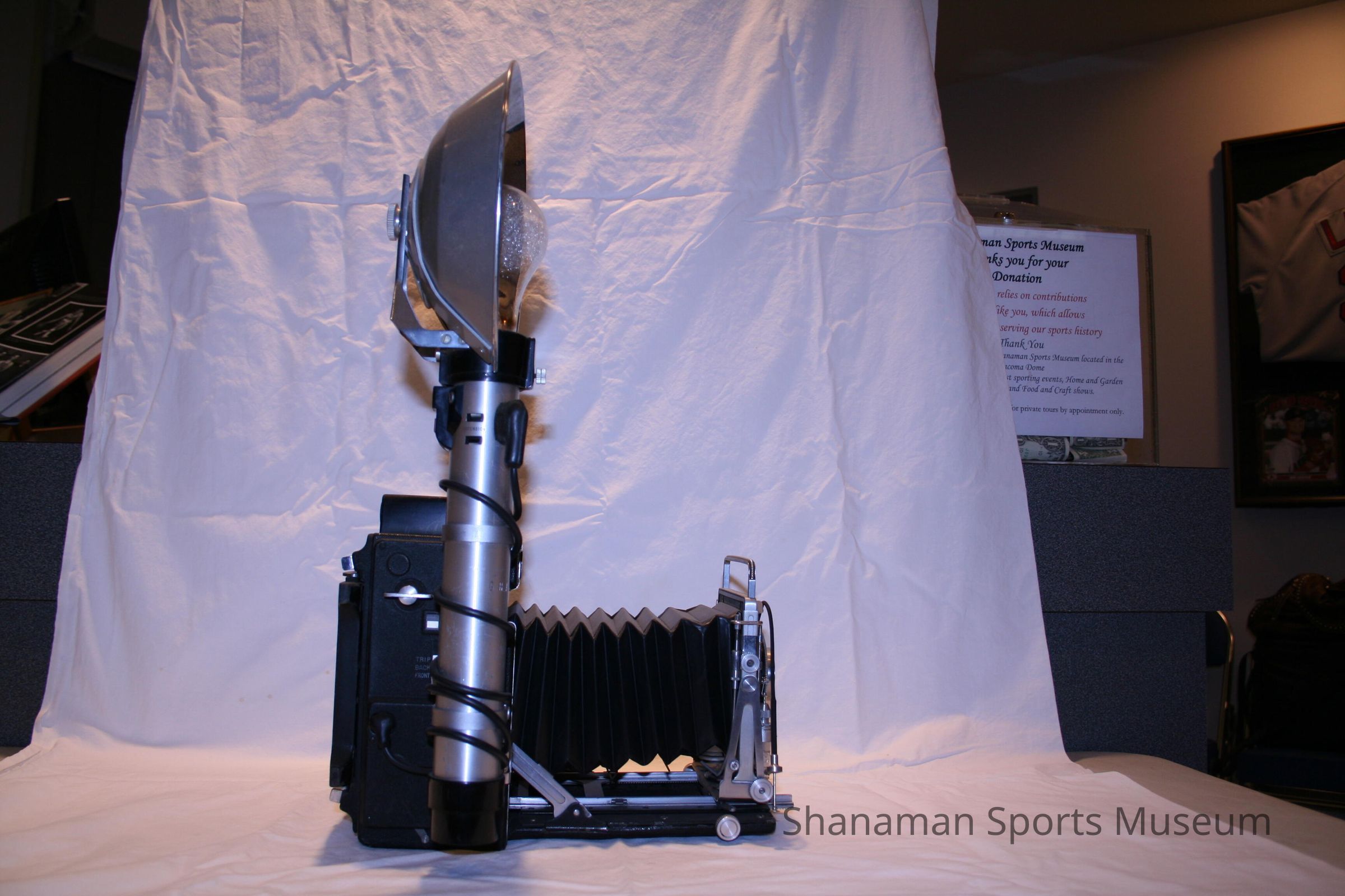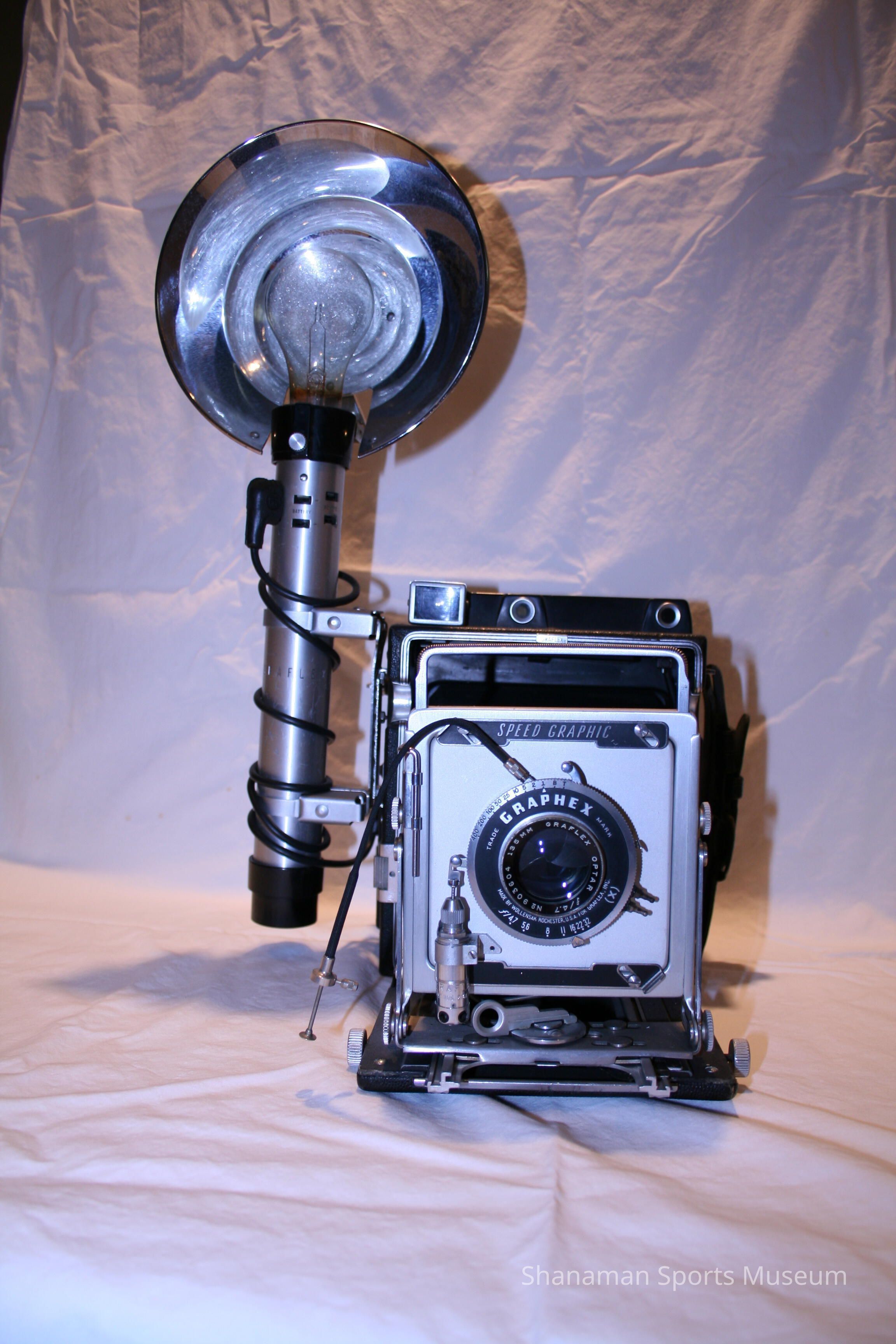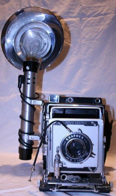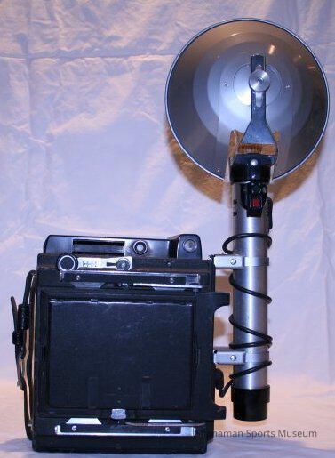 Morley Brotman used this camera to take photos of local sports. Brotman, who was born in 1910 in Canada and moved to Tacoma in 1923, was a committed local businessman and a strong sports supporter. Back in the 1950s he supported building a local convention center. In 1980, Brotman's dream came true when the Tacoma Dome was built. When the Tacoma Athletic Commission held a Morley Brotman Night in 1980, there was $25,000 raised and it was put in a fund to be overseen by the TAC and earmarked for a sports museum. In 1937, Brotman started radio Communication and Motion Picture Engineers Inc. and later founded Morley's Photography Studio in Tacoma working with McChord Military Base.Lexicon