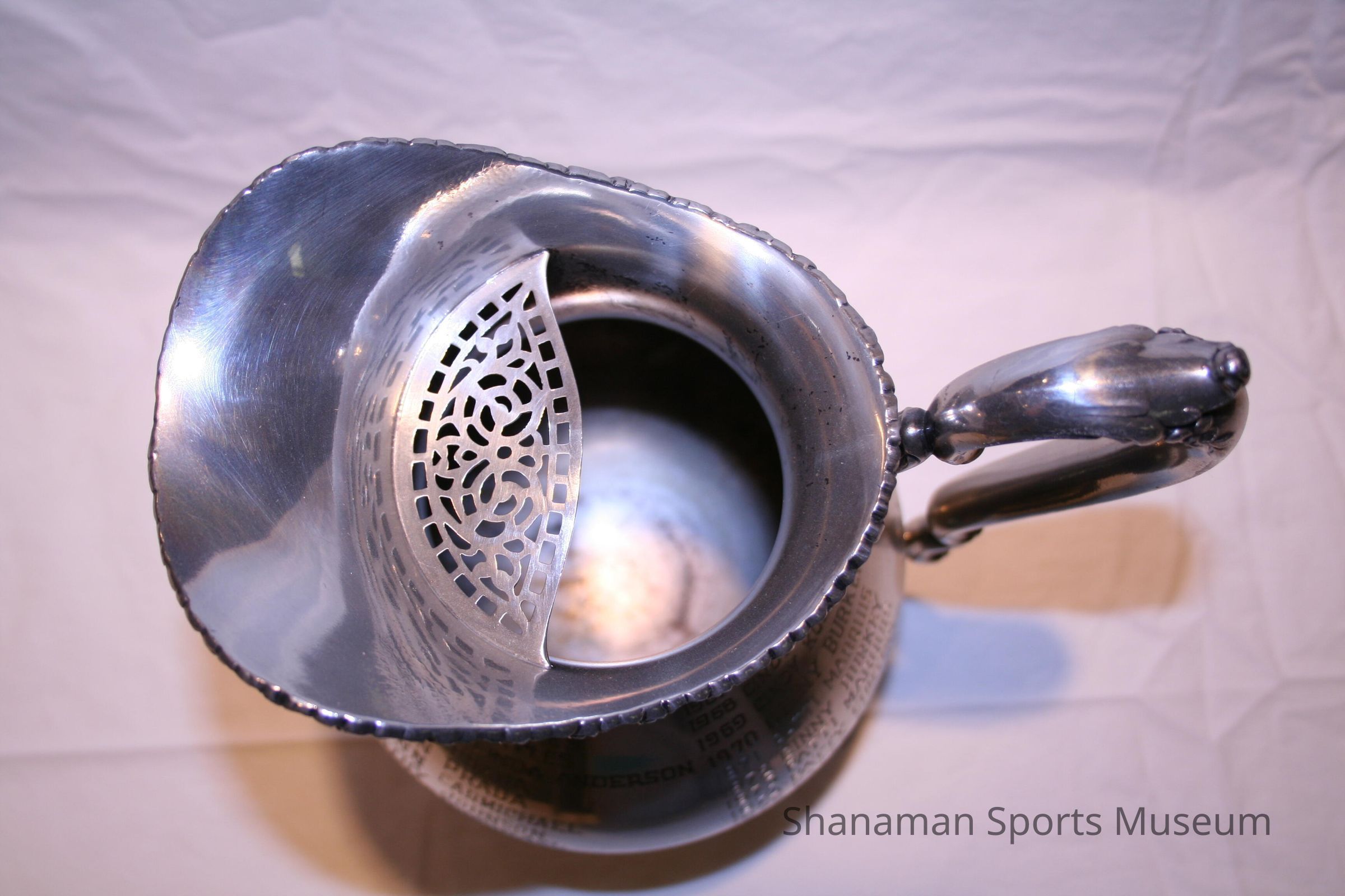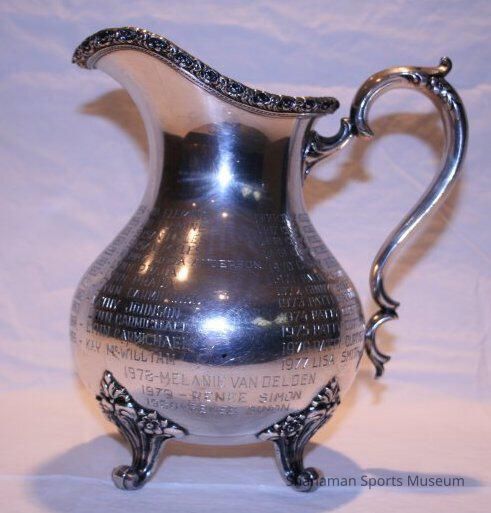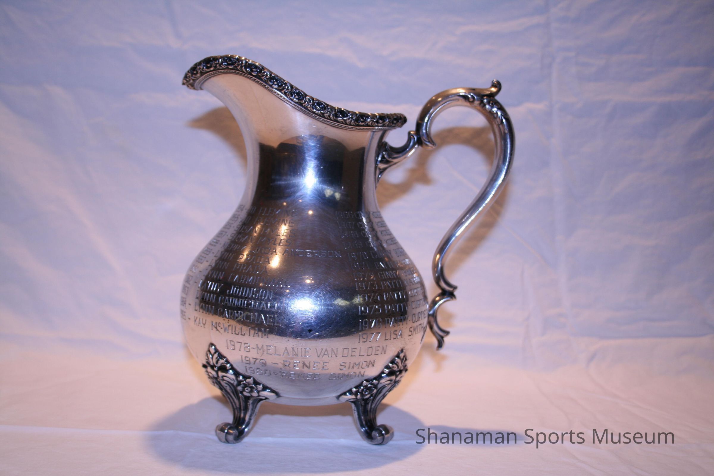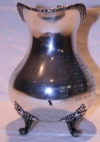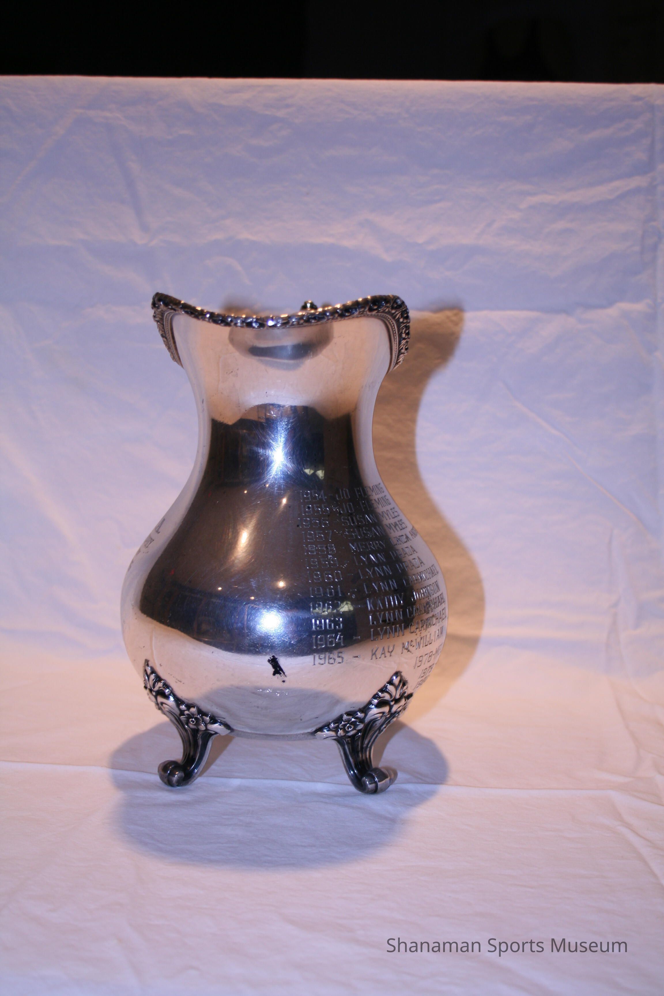 Here is a golf trophy in the shape of a pitcher was awarded in the 1970s to the winners of a local women's golf tournament. Over the years there's been lots of talented women golfers coming out of Tacoma. Marjorie Shanaman was one of the first as she won the Tacoma County and Golf Club women's club championship in 1927 and 1928 when she was still just a teenager. At age 18, she won Tacoma's club championship for the first time. Shirley Baty won the state women's amateur golf championship in 1961. Joan Mahon Allard was a six-time winner of the Tacoma women's Golf Association amateur championship and a three-time winner of the state women's public lings championship. In 1971, Allard shot a hole-in-one on the sixth hole at the Pacific Northwest Golf Association tournament at the Tacoma Golf and Country Club. She is the first woman to shoot a hole-in-one in a PNGA tournament.