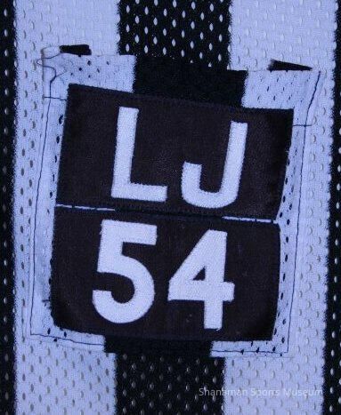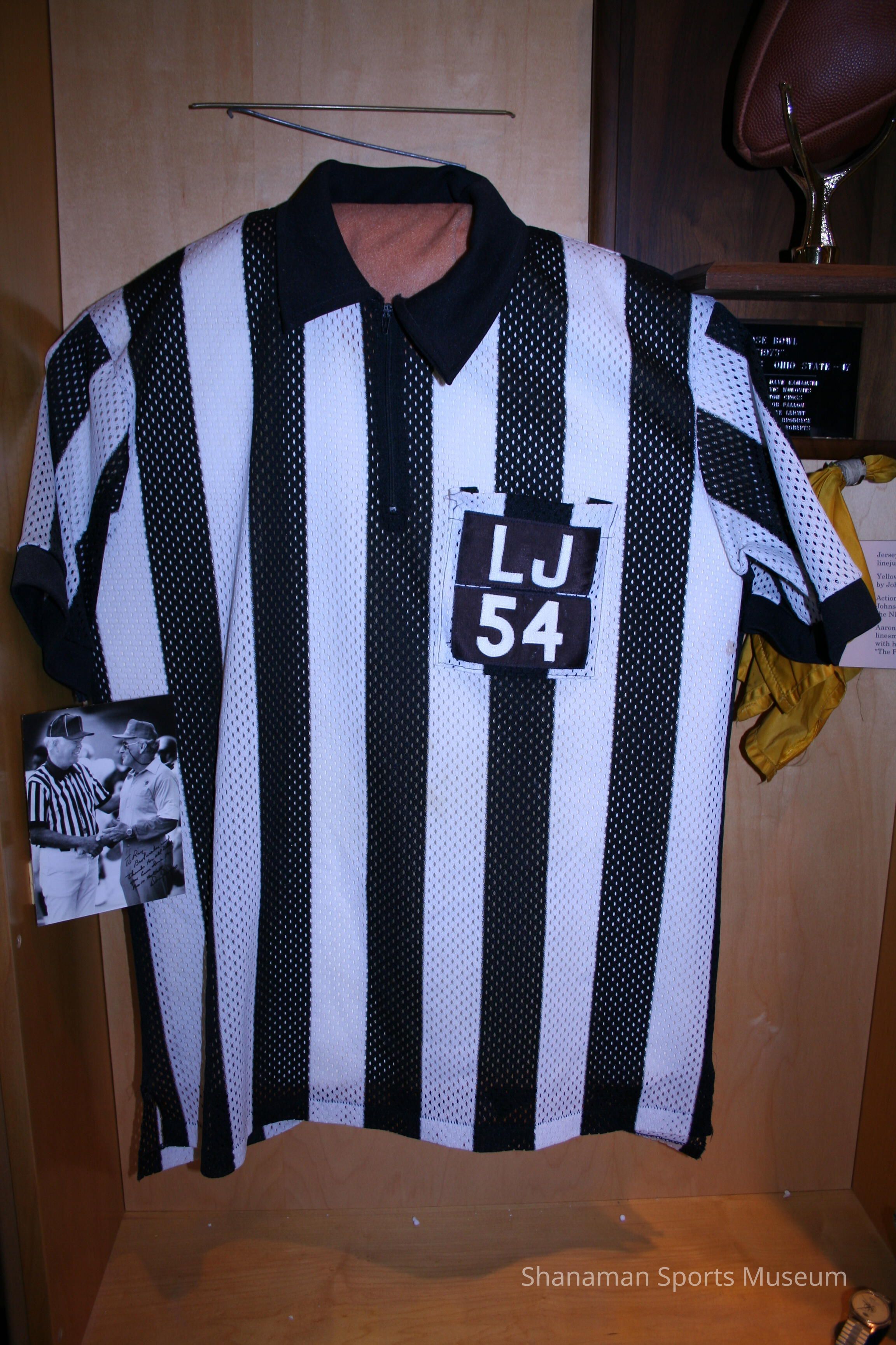 A uniform worn by Jack Johnson with LJ (for line judge) and 54 on the front.
