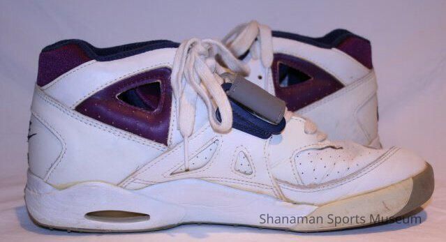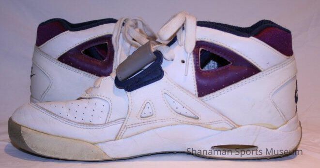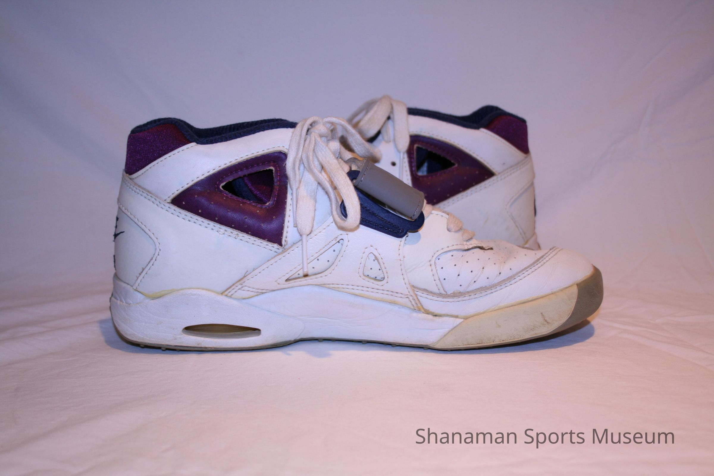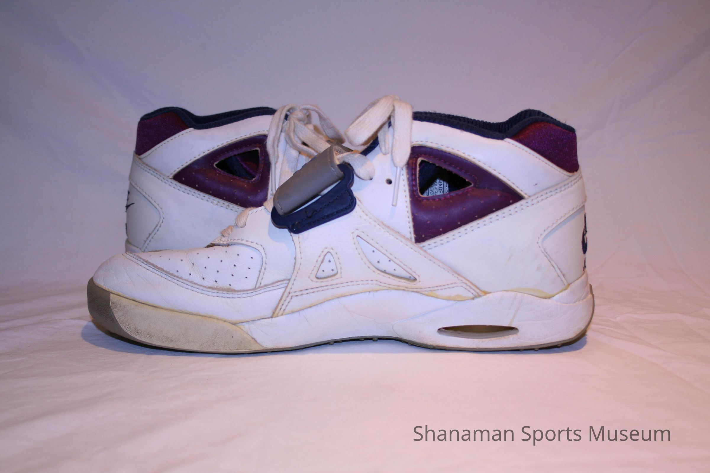 Shoes, tennis worn by Pat Galbraith at the 1993 Wimbledon Championships - "Nike - Air." Left shoe autrographed by Pat Galbraith.