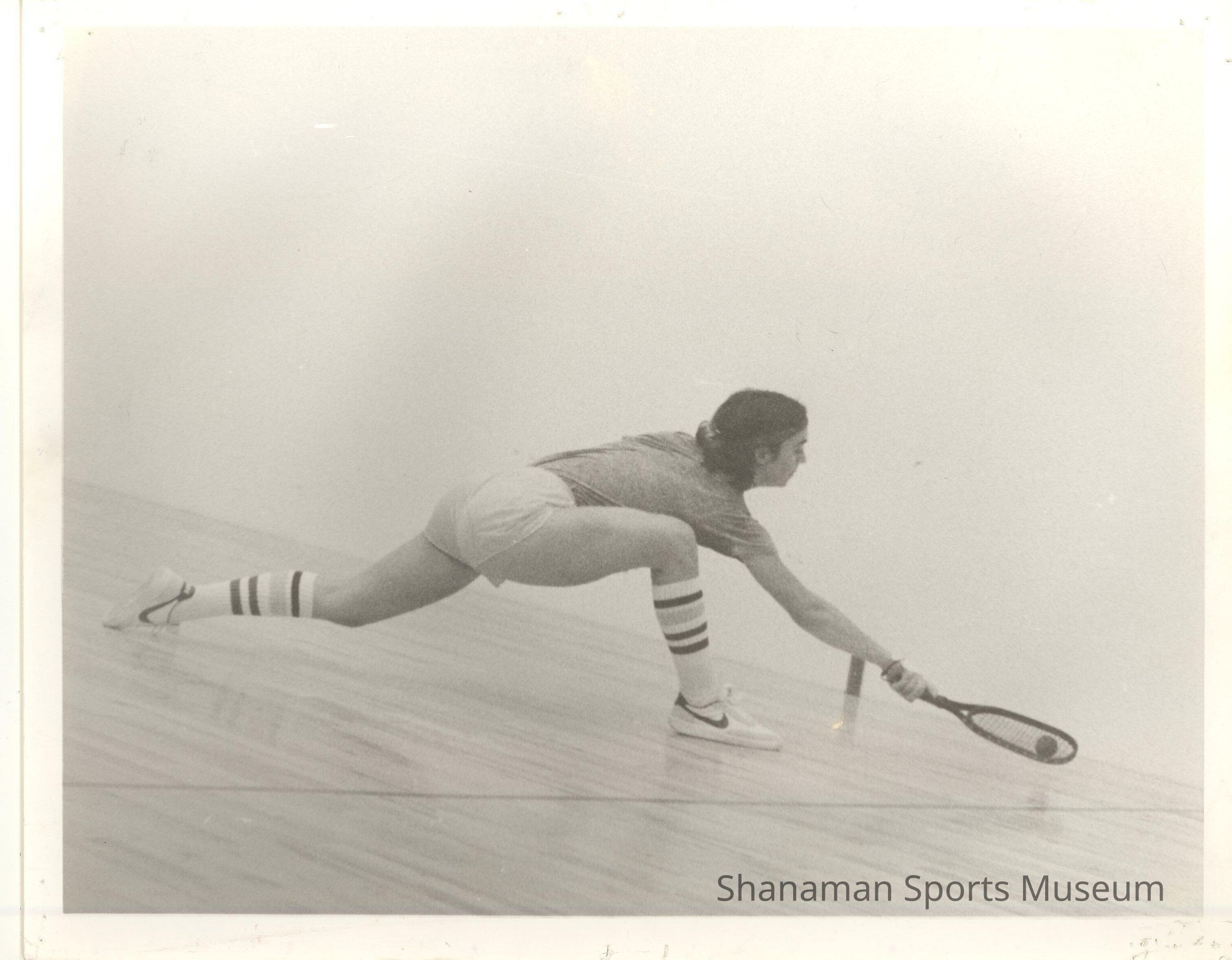 Vicki Panzeri of Seattle stretches to return a shot in this photo from the mid-1970s, early in her racquetball career. Panzeri went on to became one of the nation's top female racquetball players in the 1980s. Her best national ranking was No. 2 in the 1984-85 season behind perennial champion Lynn Adams. One of Panzeri's biggest career victories came over another racquetball legend, Heather McKay, in the semifinals of the 1985 national championship tournament in Costa Mesa, CA. McKay had announced her retirement and was hoping for one more title before Panzeri -- ranked No. 3 at the time behind Adams and McKay -- pulled off the 3-2 upset. Adams then won title match, 3-0. Panzeri was in the top-10 national rankings from 1981-82 through 1987-88.Lexicon