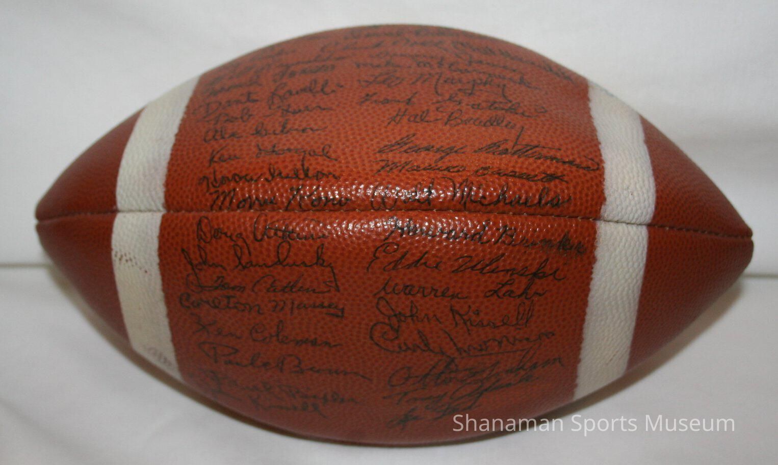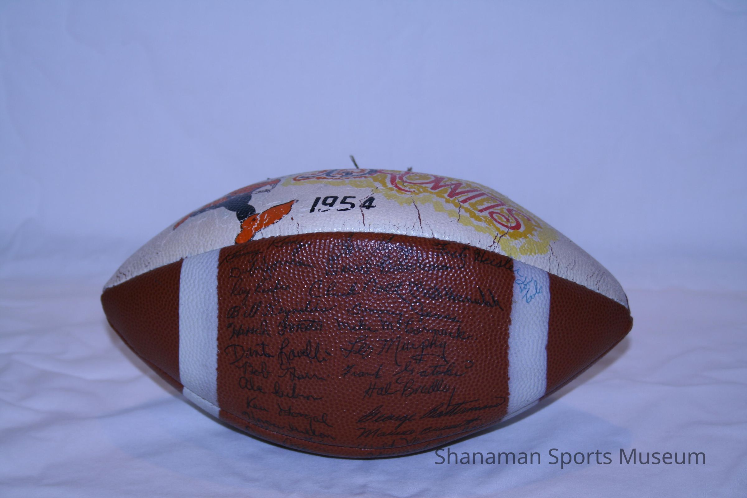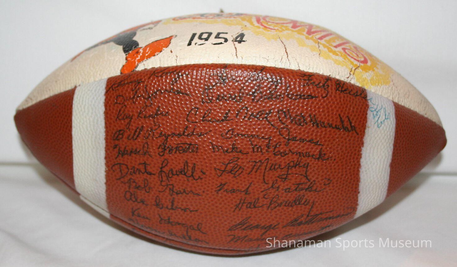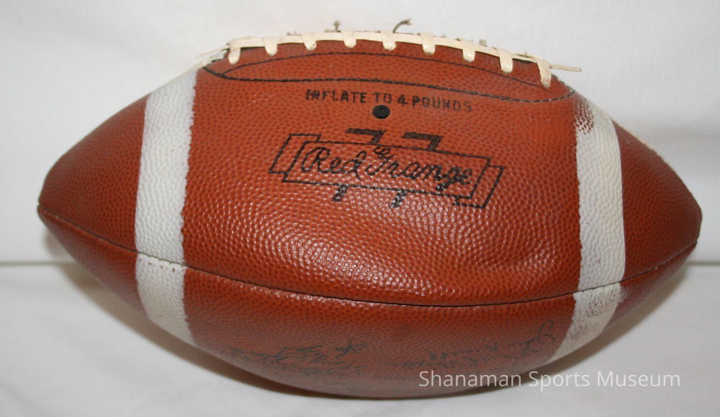 A football from the 1954 season was presented to Fife High School graduate Don Paul, who was a halfback and defensive back for the Chicago Cardinals (1950-53) and Cleveland Browns (1954-58) of the National Football League.