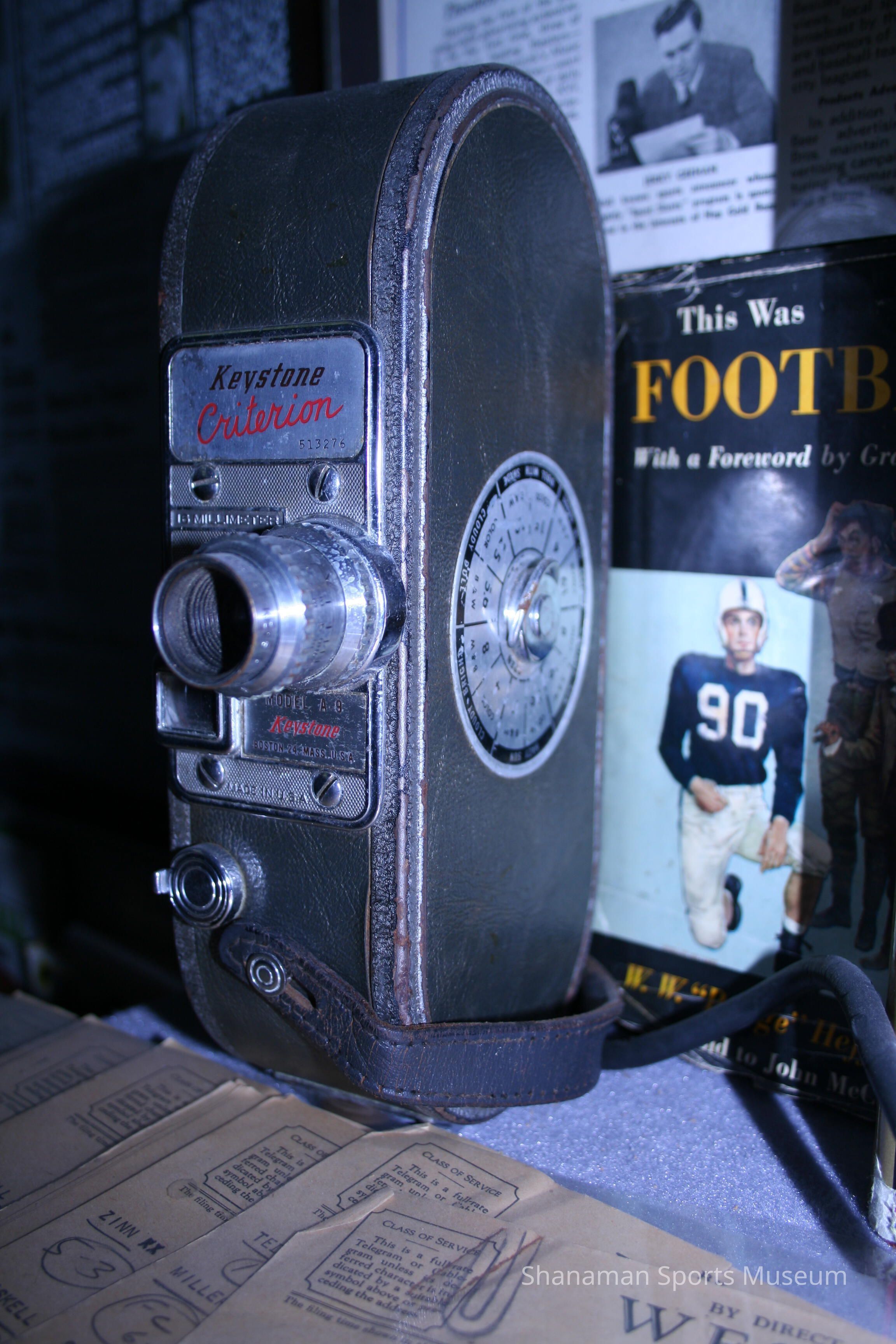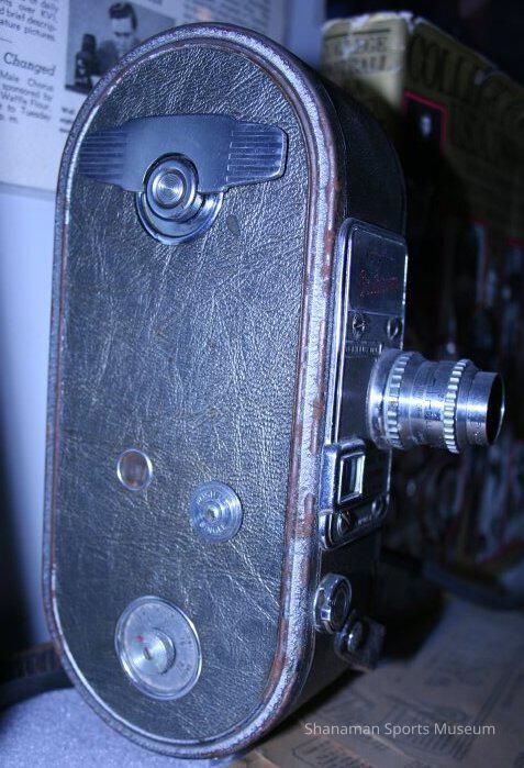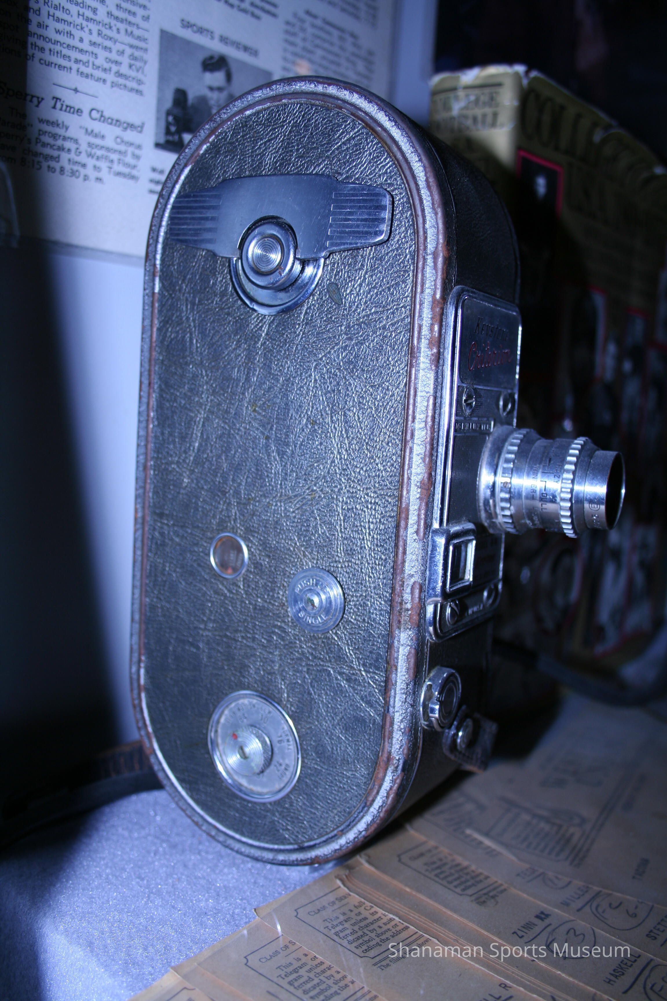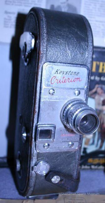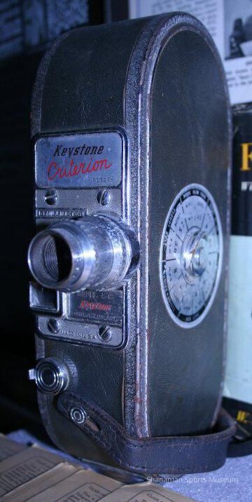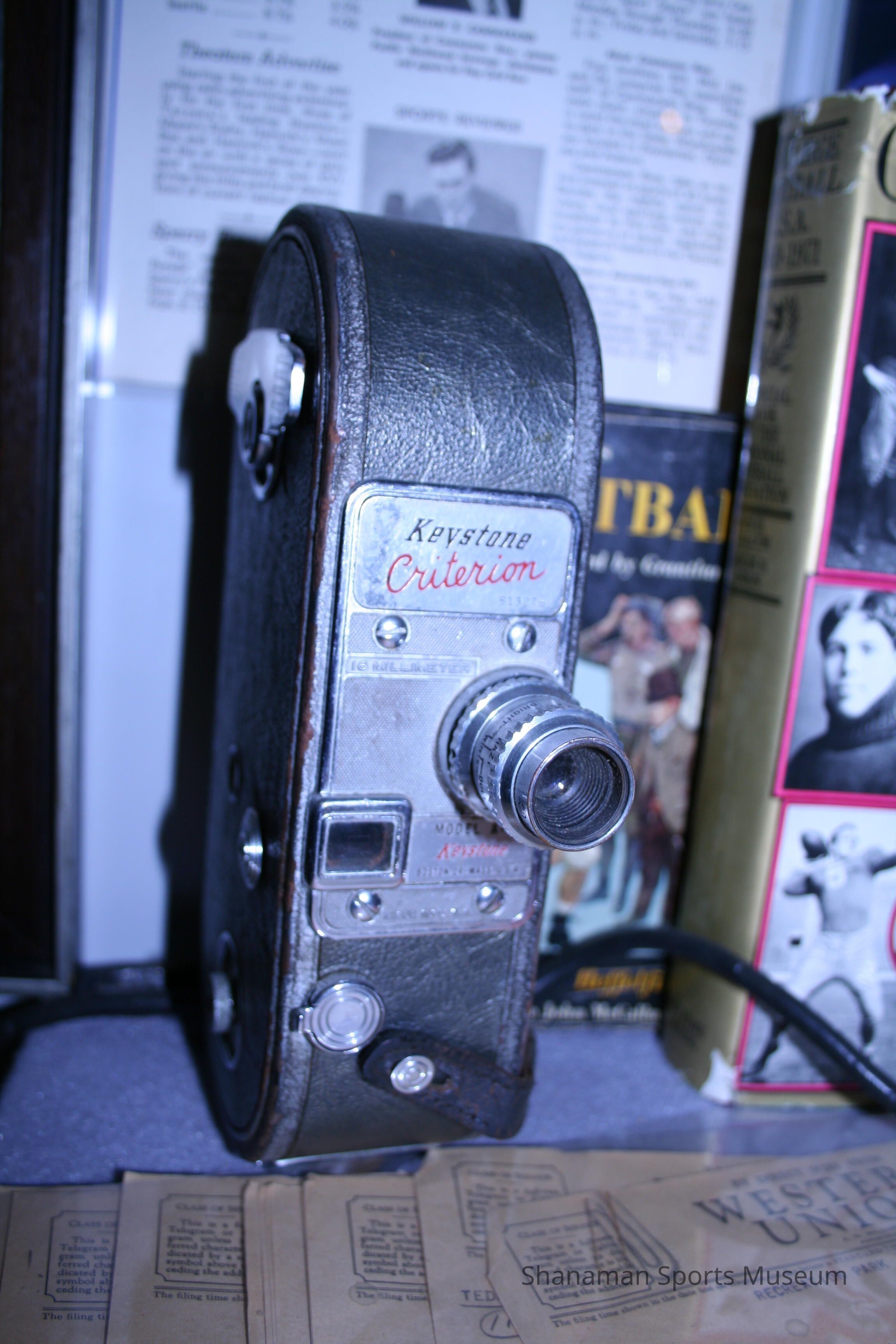 Here is an old Keystone Criterion 16mm movie camera, a model A-9 that was owned by John Jarstad, who donated this camera to the Tacoma Sports Museum. Jarstad was a pioneer in broadcast journalism in the 1940s and he played a major role in the growth of television news and sports production locally. He worked for newspapers in Bremerton, Boise and Syracuse. He also had sports and news programs aired on KOMO-TV, KIRO-TV, KTNT-TV and KTVW. Back in the late 1940s and 1950s, Jarstad would film the final minutes of games on his own camera and highlight clips on TV. Games he covered included high school football wrap ups, the University of Washington's football and basketball games in the 1950s. When he was the sports editor at the Bremerton Sun in the 1940s, his “Time Out” column covered Bremerton and Kitsap Peninsula athletes in the post-war years. Later, Jarstad did live broadcasts of the Tacoma Rainiers and hosted an outdoor show on KOMO-TV for 13 years.Lexicon