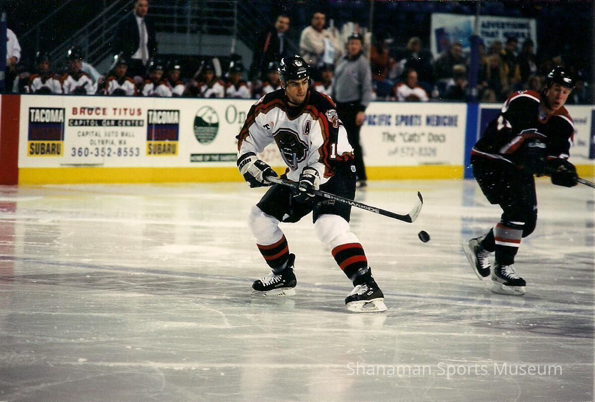 Dampy Brar, player #19, keeps an eye on the play on the ice at the Tacoma Dome during a Tacoma Sabercats hockey game during the 1999-2000 season. The Sabercats were a professional minor league hockey team that began playing in the 1997-88 West Coast Hockey League season and had a successful five-year run. Tacoma won the regular-season Northern Division title and reached the league finals in its first season. The Sabercats lost to the defending champion San Diego Gulls in the league’s first Taylor Cup. The following season, the Sabercats returned to the playoffs after winning the Northern Division title again and this time defeated the Gulls in the Cup finals in the 1998-88 season. It would be the only league championship for the franchise, which folded after the 2001-02 season. The Sabercats made the playoffs all five seasons, winning three division championships as well.Made/Created