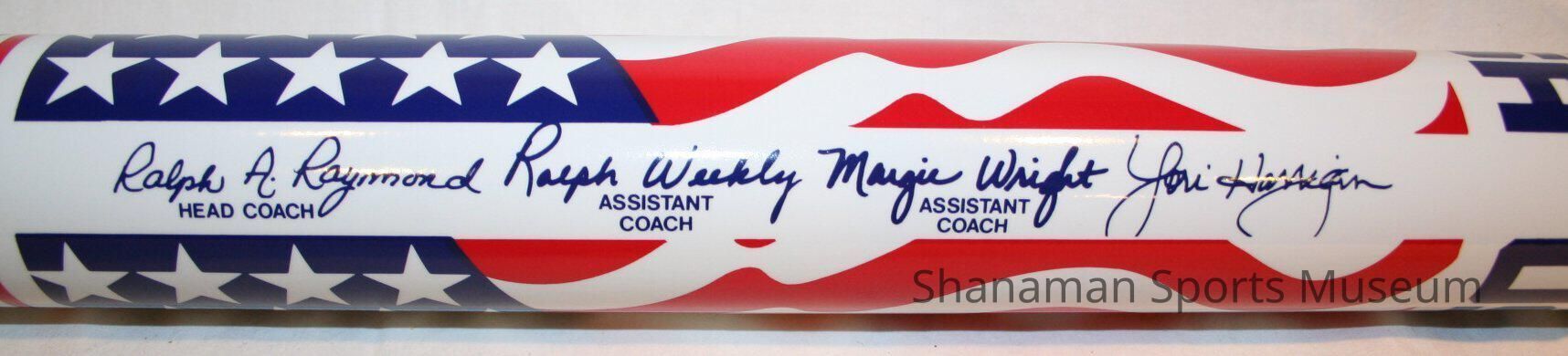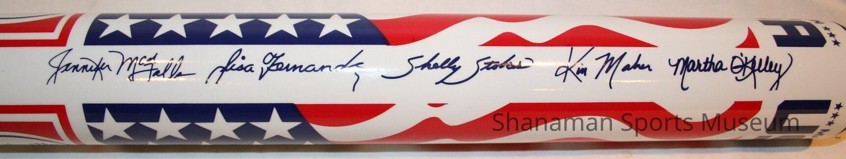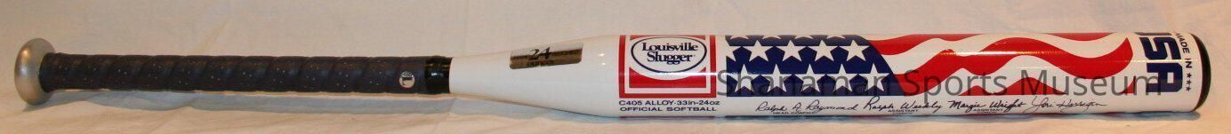 Red, white and blue "TPS" bat used by the 1996 Gold metal winning women's fastpitch softball team.