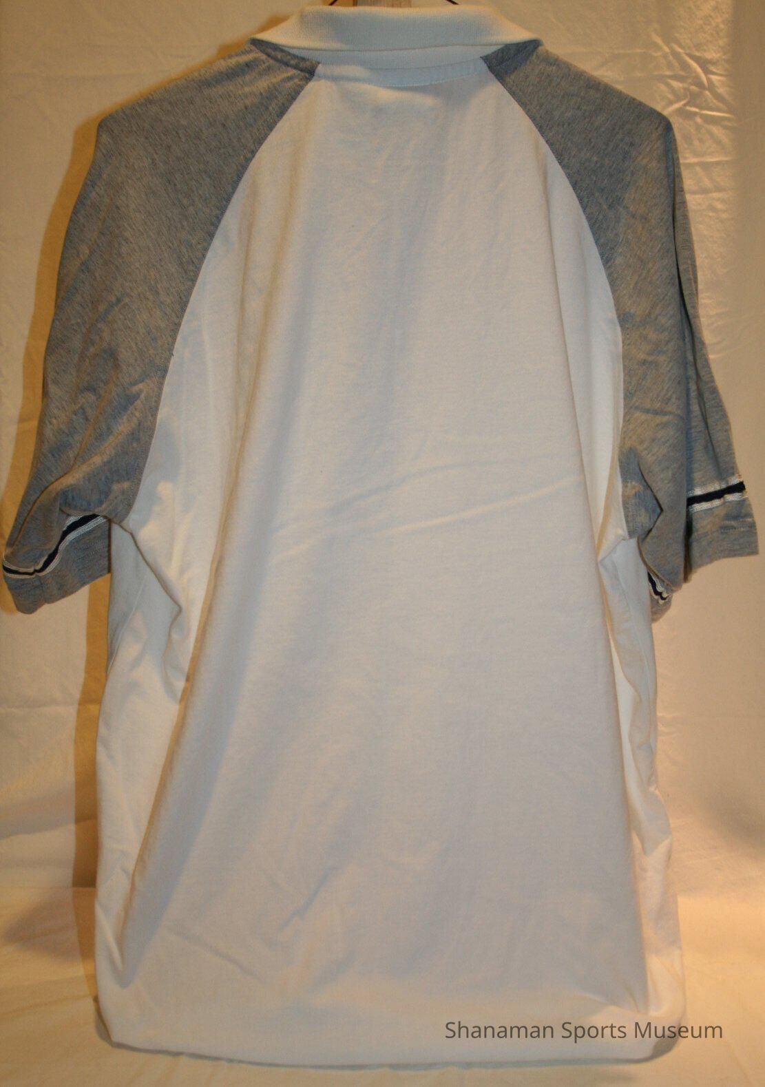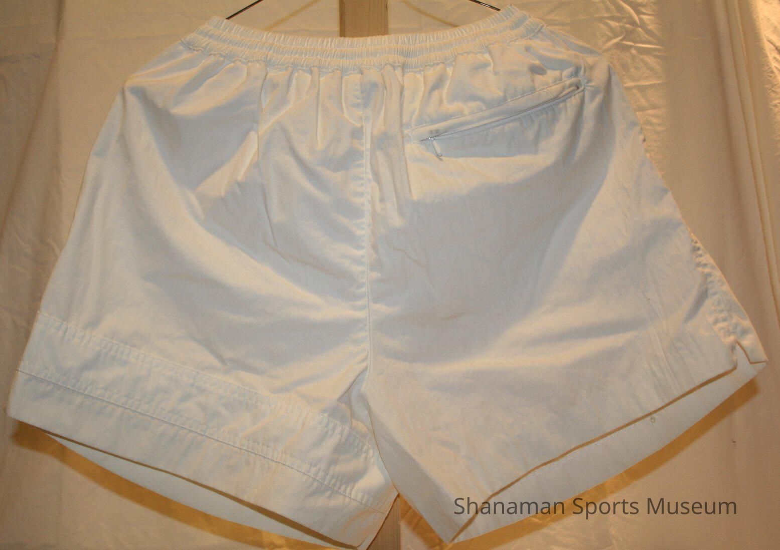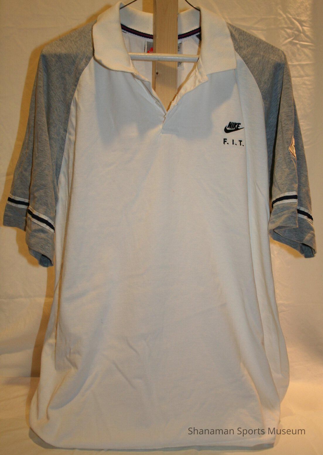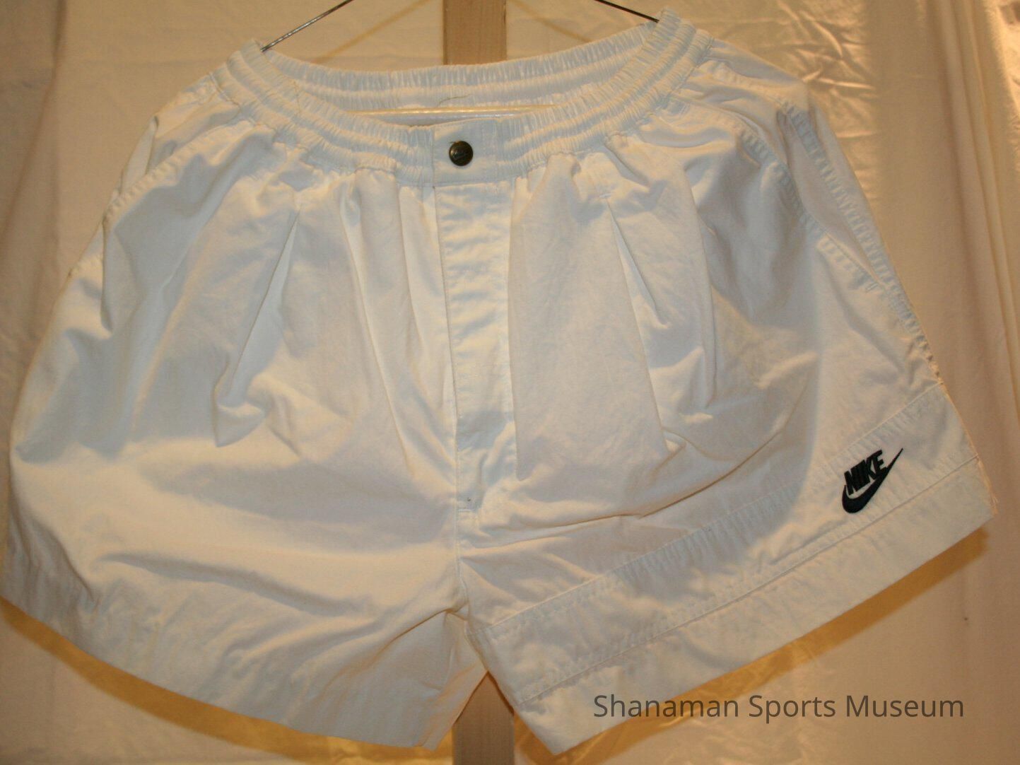 a: White raglan sleeve shirt, sleeves, lt. gray, "Nike", "SC" Supreme Court on sleeves; b: shorts, elastic waist, pockets; "Nike" on leg