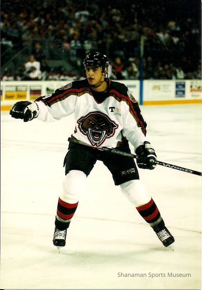 Dampy Brar, player #19, keeps an eye on the play on the ice at the Tacoma Dome during a Tacoma Sabercats hockey game during the 1999-2000 season. The Sabercats were a professional minor league hockey team that began playing in the 1997-88 West Coast Hockey League season and had a successful five-year run. Tacoma won the regular-season Northern Division title and reached the league finals in its first season. The Sabercats lost to the defending champion San Diego Gulls in the league’s first Taylor Cup. The following season, the Sabercats returned to the playoffs after winning the Northern Division title again and this time defeated the Gulls in the Cup finals in the 1998-99 season. It would be the only league championship for the franchise, which folded after the 2001-02 season. The Sabercats made the playoffs all five seasons, winning three division championships as well.Made/Created