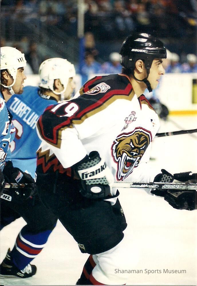 Dampy Brar, player #19, watches the action on the ice at the Tacoma Dome during a Tacoma Sabercats hockey game during the 1999-2000 season. The Sabercats were a professional minor league hockey team that began playing in the 1997-88 West Coast Hockey League season and had a successful five-year run. Tacoma won the regular-season Northern Division title and reached the league finals in its first season. The Sabercats lost to the defending champion San Diego Gulls in the league’s first Taylor Cup. The following season, the Sabercats returned to the playoffs after winning the Northern Division title again and this time defeated the Gulls in the Cup finals in the 1998-99 season. It would be the only league championship for the franchise, which folded after the 2001-02 season. The Sabercats made the playoffs all five seasons, winning three division championships as well.Made/Created