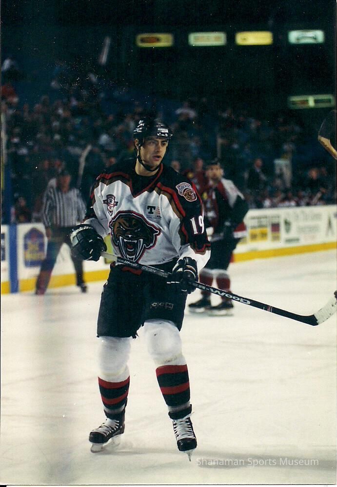 Dampy Brar, player #19, keeps an eye on the play on the ice at the Tacoma Dome during a Tacoma Sabercats hockey game during the 1999-2000 season. The Sabercats were a professional minor league hockey team that began playing in the 1997-88 West Coast Hockey League season and had a successful five-year run. Tacoma won the regular-season Northern Division title and reached the league finals in its first season. The Sabercats lost to the defending champion San Diego Gulls in the league’s first Taylor Cup. The following season, the Sabercats returned to the playoffs after winning the Northern Division title again and this time defeated the Gulls in the Cup finals in the 1998-99 season. It would be the only league championship for the franchise, which folded after the 2001-02 season. The Sabercats made the playoffs all five seasons, winning three division championships as well.Made/Created