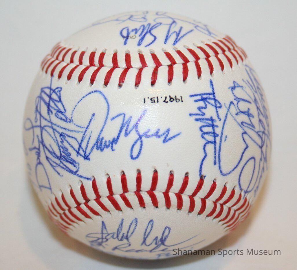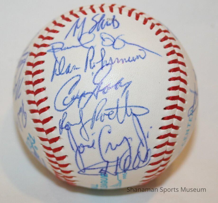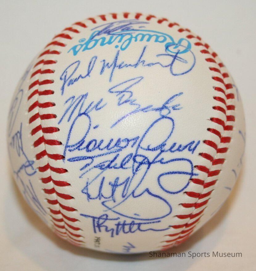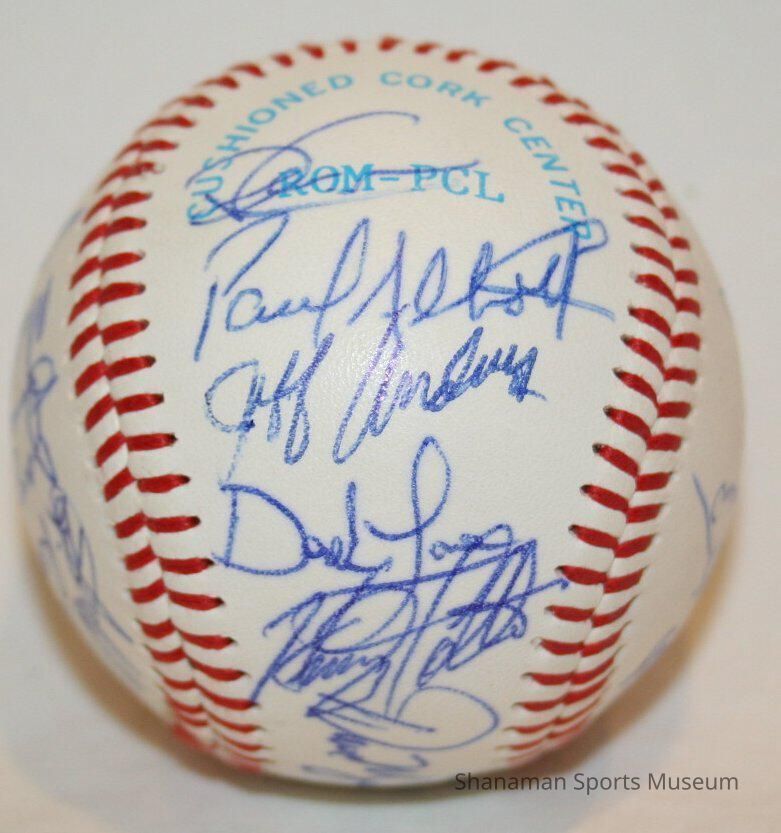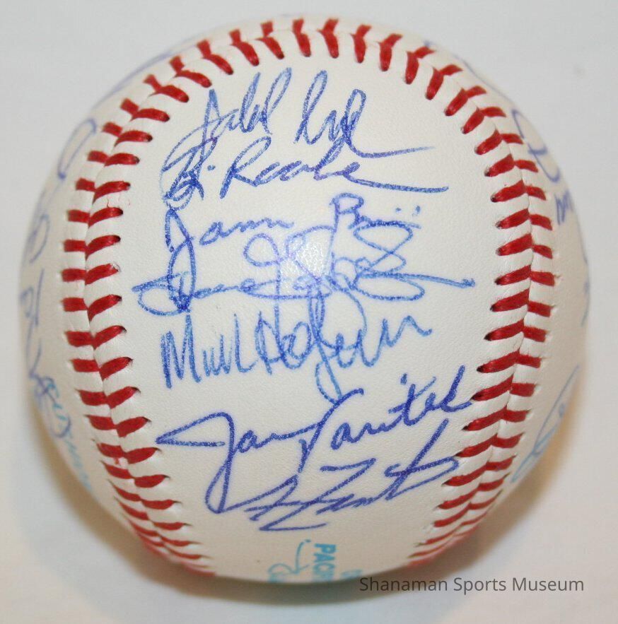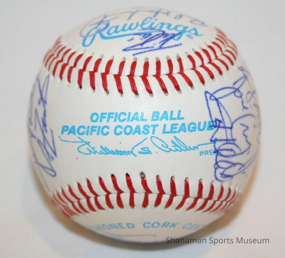 Baseball signed and autographed by members of the 1997 Tacoma Rainiers Team. Manufactured by Rawlings; Official Pacific Coast League.
