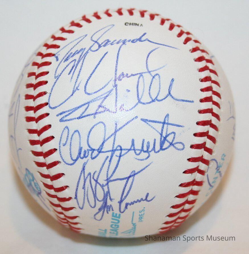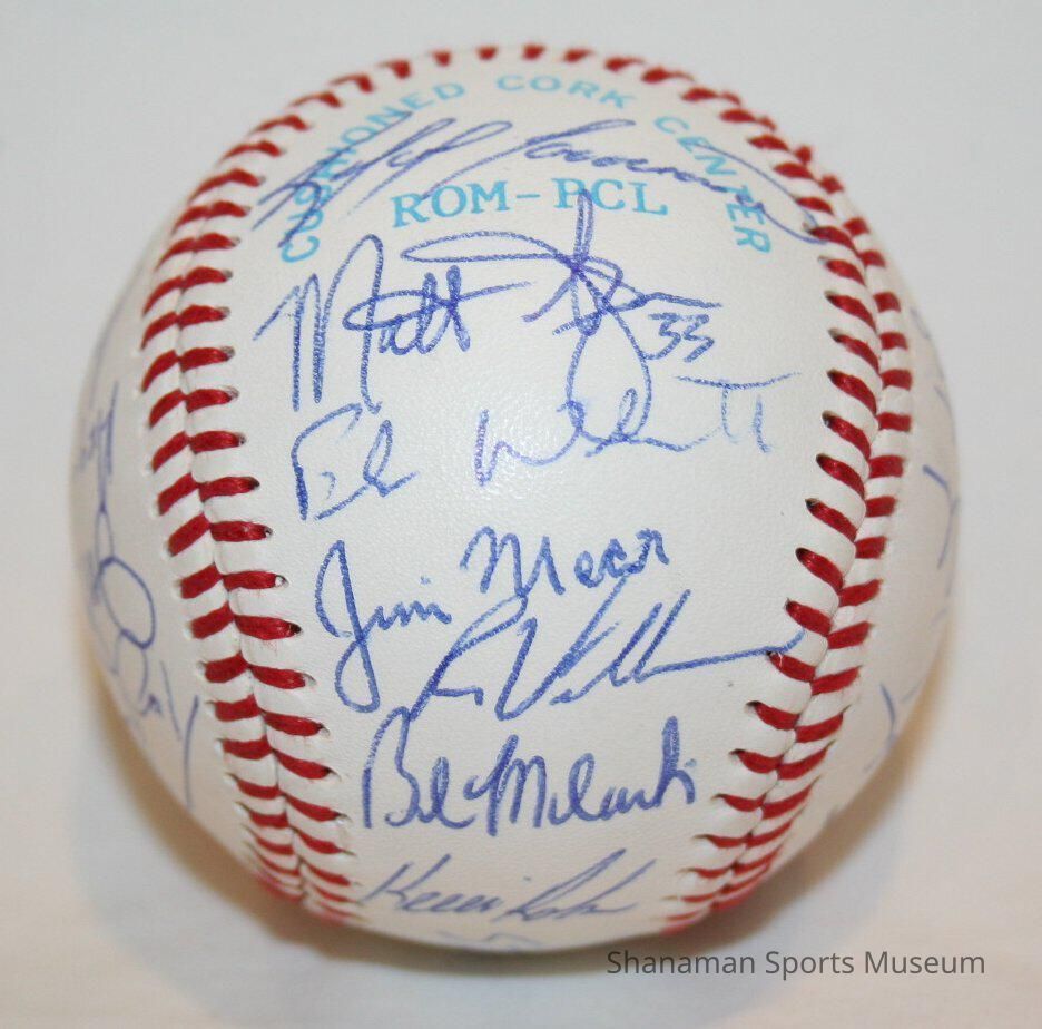 Baseball signed and autographed by members of the 1995 Tacoma Rainiers Team. Manufactured by Rawlings; Official Pacific Coast League.Lexicon