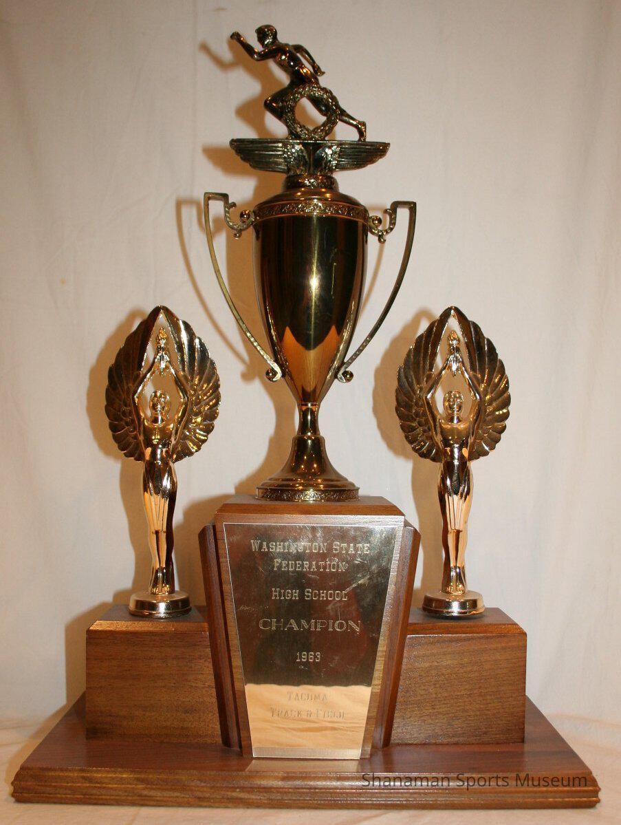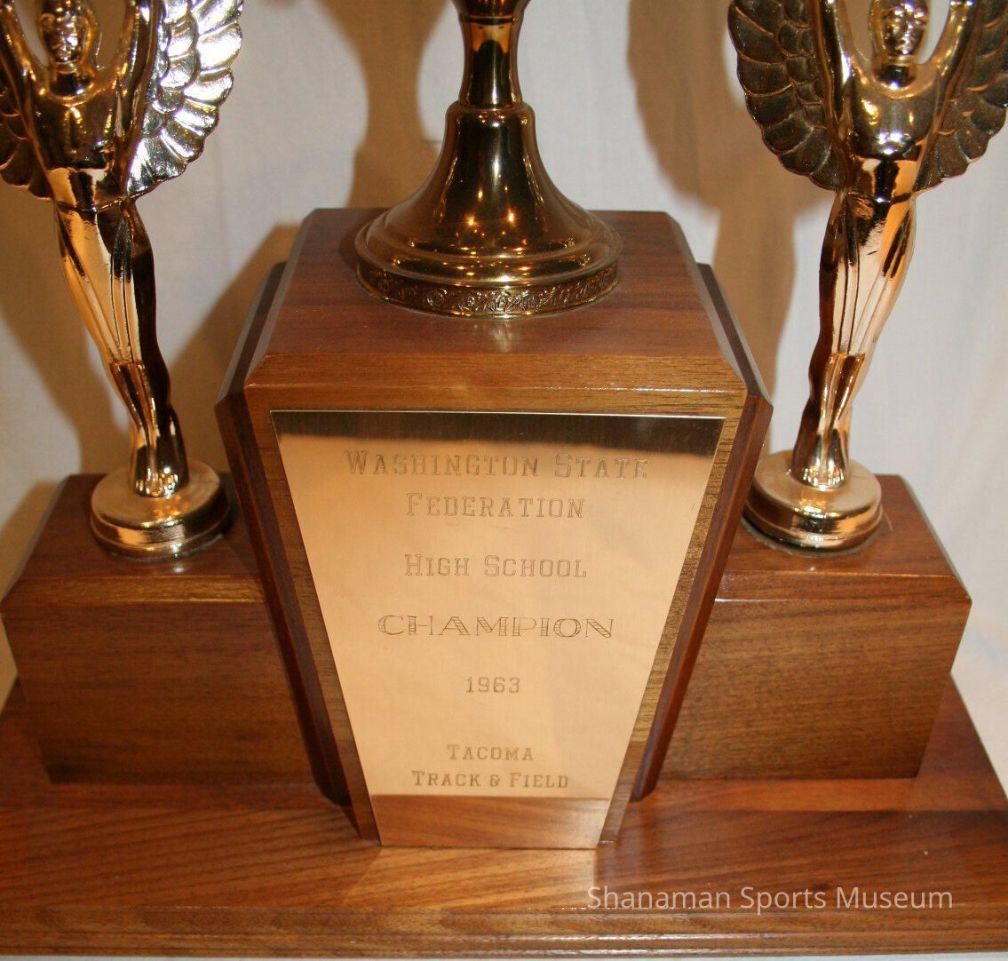 Inscribed on the front, "Washington State Federation High School Champion 1963 Tacoma Track & Field.”