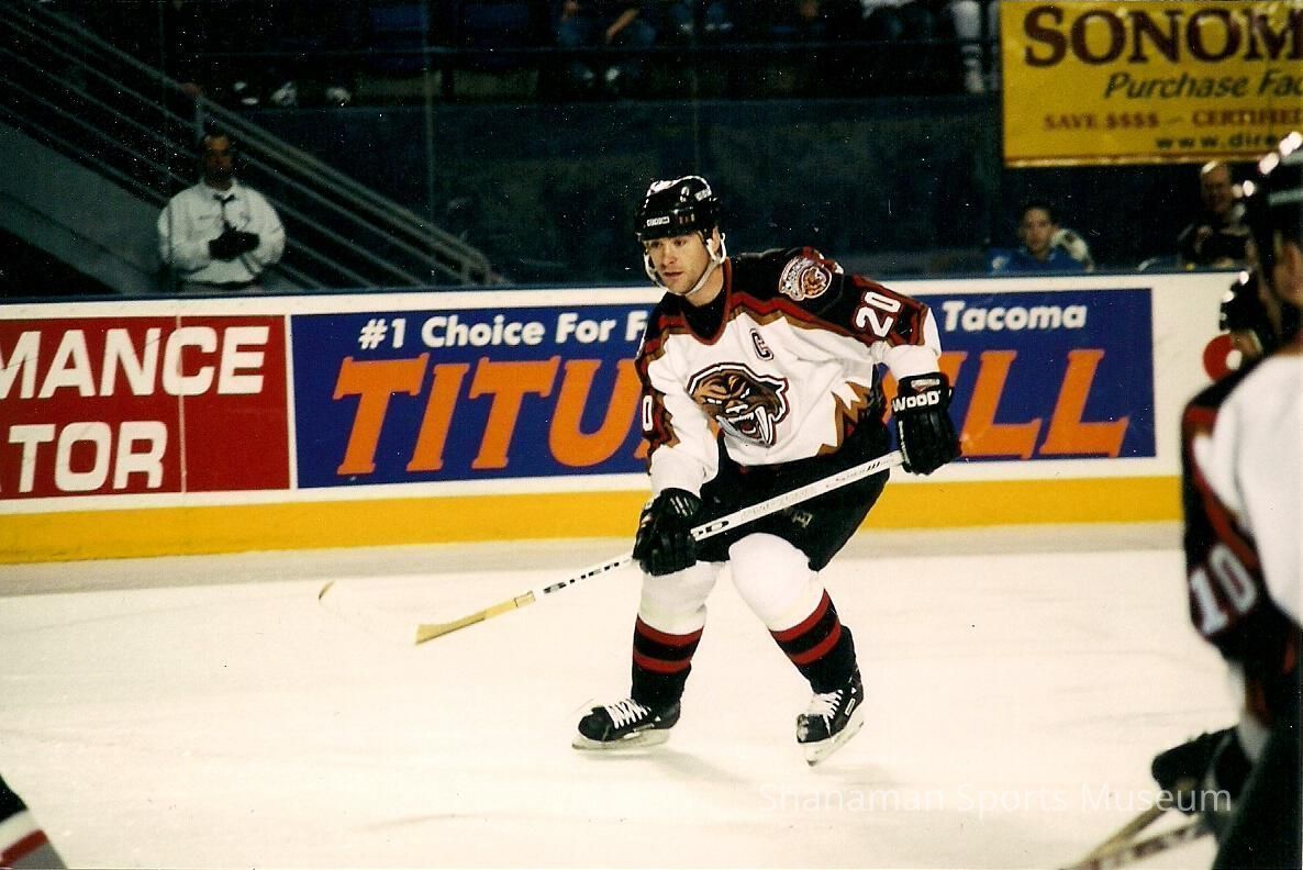 Defenseman player #20 Scott Boston skates during a Tacoma Sabercats game at the Tacoma Dome during the 1999-2000 season. The Sabercats were a professional minor league hockey team that began playing in the 1997-88 West Coast Hockey League season and had a successful five-year run. Tacoma won the regular-season Northern Division title and reached the league finals in its first season. The Sabercats lost to the defending champion San Diego Gulls in the league’s first Taylor Cup. The following season, the Sabercats returned to the playoffs after winning the Northern Division title again and this time defeated the Gulls in the Cup finals in the 1998-88 season. It would be the only league championship for the franchise, which folded after the 2001-02 season. The Sabercats made the playoffs all five seasons, winning three division championships as well.Made/Created