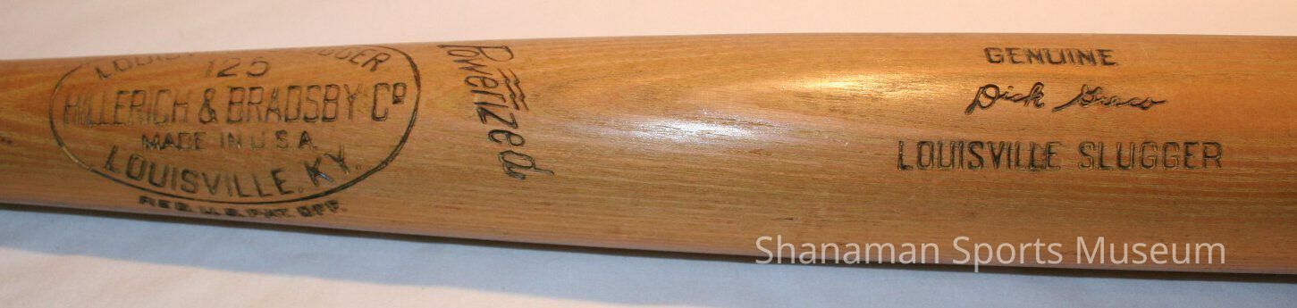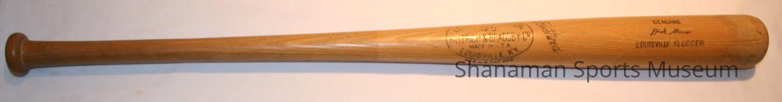 Dick Greco used this Louisville Slugger baseball bat to hit home runs while he played for the Tacoma Tigers in the late 1940s and early 1950s. Greco, who was born in Tacoma in 1925 and graduated from Stadium High School in 1943, belted over 300 home runs over 12 years while playing in the minor leagues. He hit over 30 homers in a season five times and he batted over .300 10 of the 12 years he played in the minor leagues. He played parts of four seasons with the Triple-A Tacoma Tigers, but he never played in the major leagues. In 1947, Greco hit .313 with 21 home runs in 133 games for the Tacoma Tigers. The next year he batted .333 with 25 home runs while playing in Tacoma.Lexicon