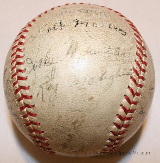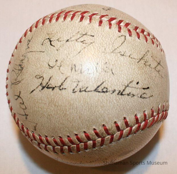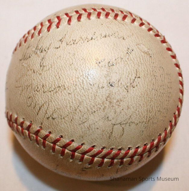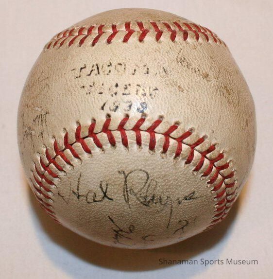 Western International League baseball autographed by members of the 1939 Tacoma Tigers. Under the leadership of Harold Rhyne, the ’39 Tigers finished the year with a 78-63 record to rank second in the Western International League standings. Despite the regular season finish, the Tigers roared through the playoffs to claim the league championship, their second in three years (they would go on to repeat in 1940).Lexicon