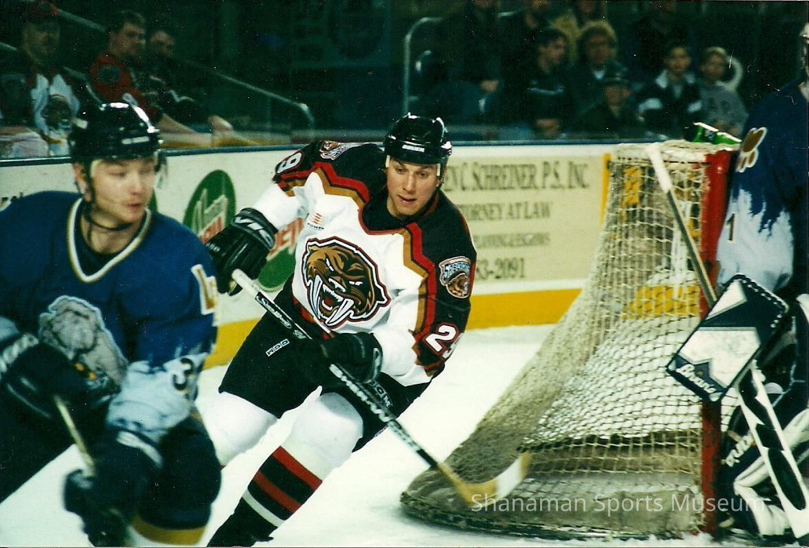 An unidentified Tacoma Sabercat player #29 skates in on the action during a West Coast Hockey League during the 1999-2000 season. The Sabercats were a professional minor league hockey team that began playing in the 1997-98 season. Tacoma won the regular-season Northern Division title and reached the league finals in its first season. The Sabercats lost to the defending champion San Diego Gulls in the league’s first Taylor Cup. The following season, the Sabercats returned to the playoffs after winning the Northern Division title again and this time defeated the Gulls in the Cup finals in 1998-99. It would be the only league championship for the franchise, which folded after the 2001-02 season. The Sabercats made the playoffs all five seasons winning three division championships as well.Made/Created