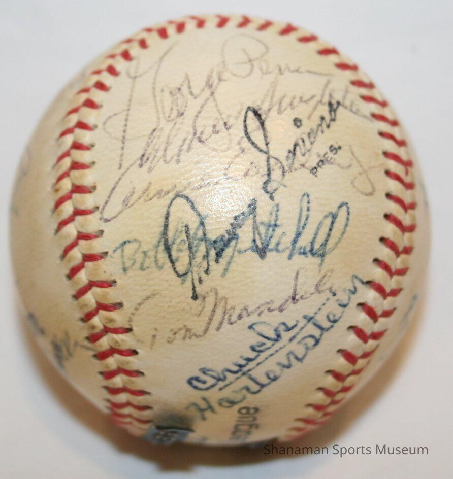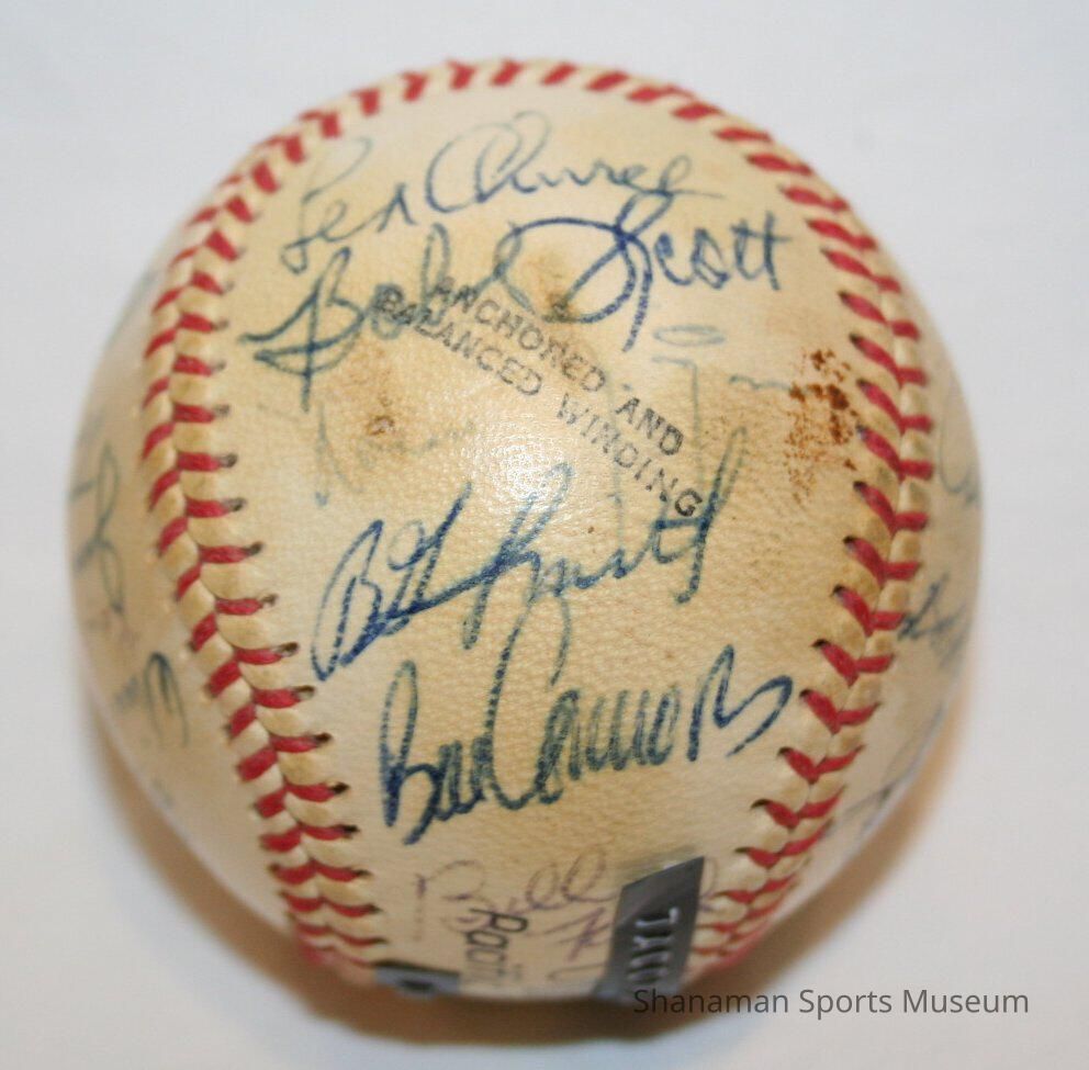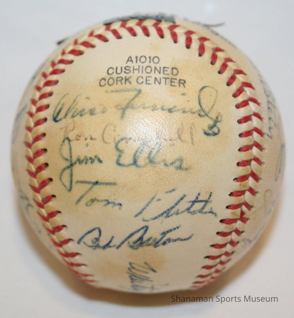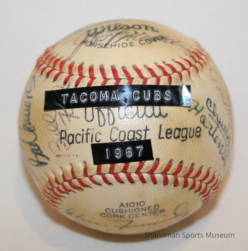 Players from the 1967 Tacoma Cubs baseball team autographed this baseball in blue and black ink. From 1966 to 1971, they were the Tacoma Cubs. The Chicago Cubs used the Tacoma team as their Triple-A affiliate for six seasons. With a solid pitching staff that had a combined 3.01 ERA for the season, the Tacoma Cubs won the Pacific Coast League championship in 1969. The first team to play at the new Cheney Stadium in 1960 was the Tacoma Giants. They were the Tacoma Giants until 1965 and then became the Tacoma Cubs in 1966. When the Chicago Cubs pulled their Triple-A team from Tacoma in 1971, Stan Naccarato and Clay Huntington recruited local businessmen for financial help and secured an affiliation with the Minnesota Twins. They were the Tacoma Twins from 1972 to 1977.Lexicon