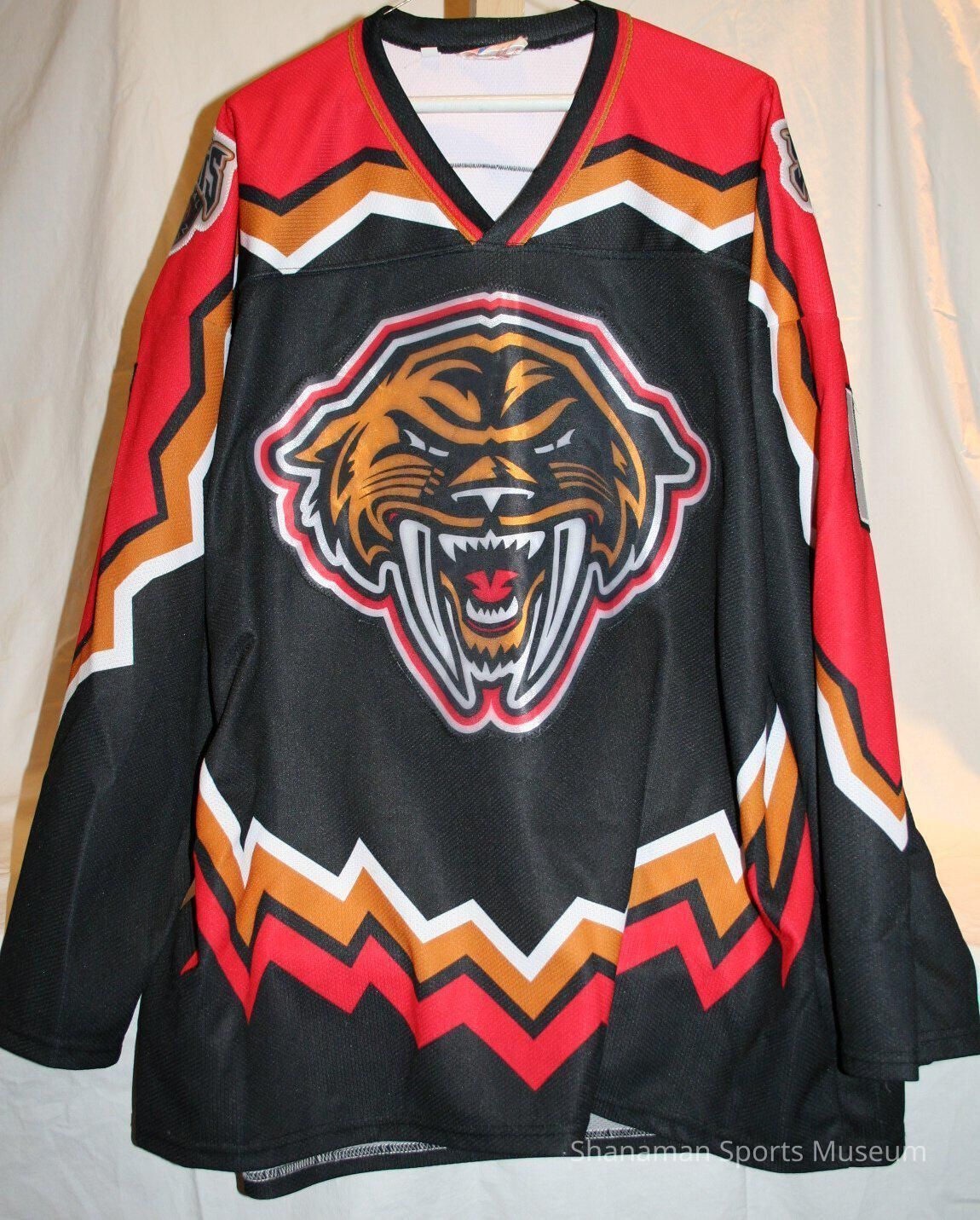 This Tacoma Sabercats road jersey was worn by goalie Gord Besse during the team’s inaugural 1997-98 season in the West Coast Hockey League.