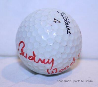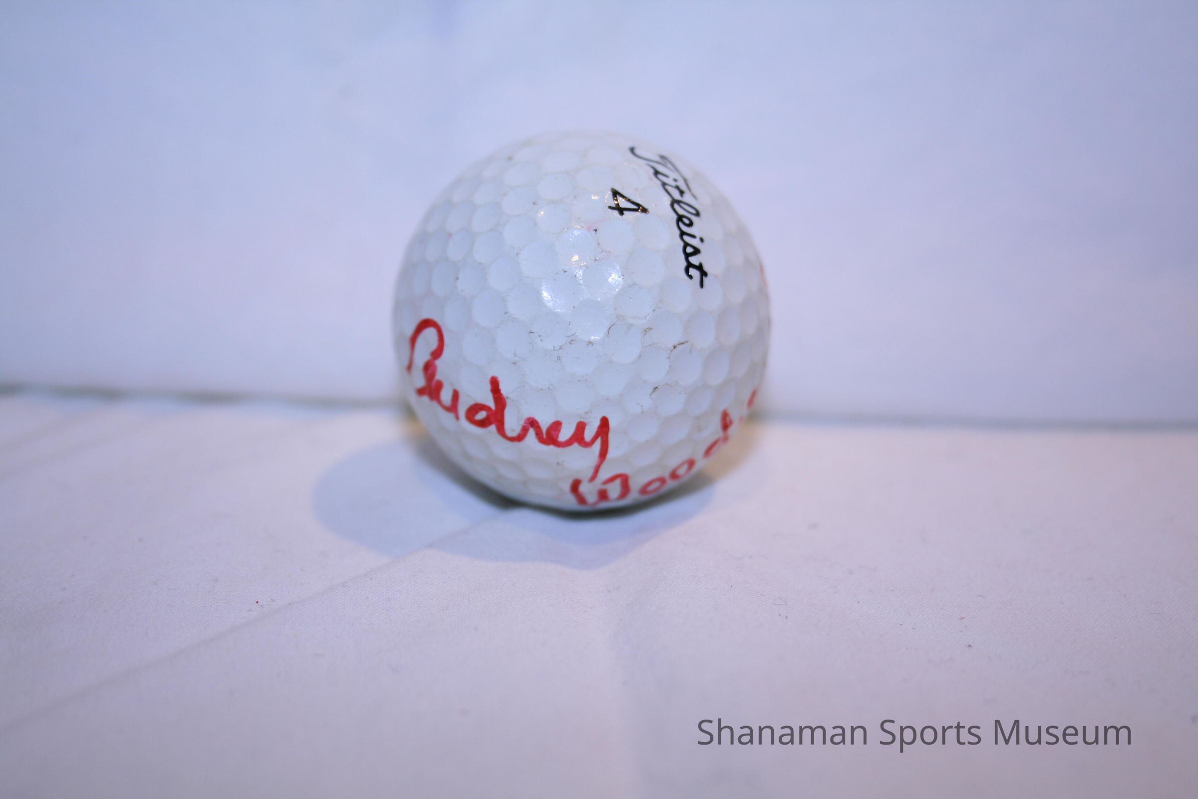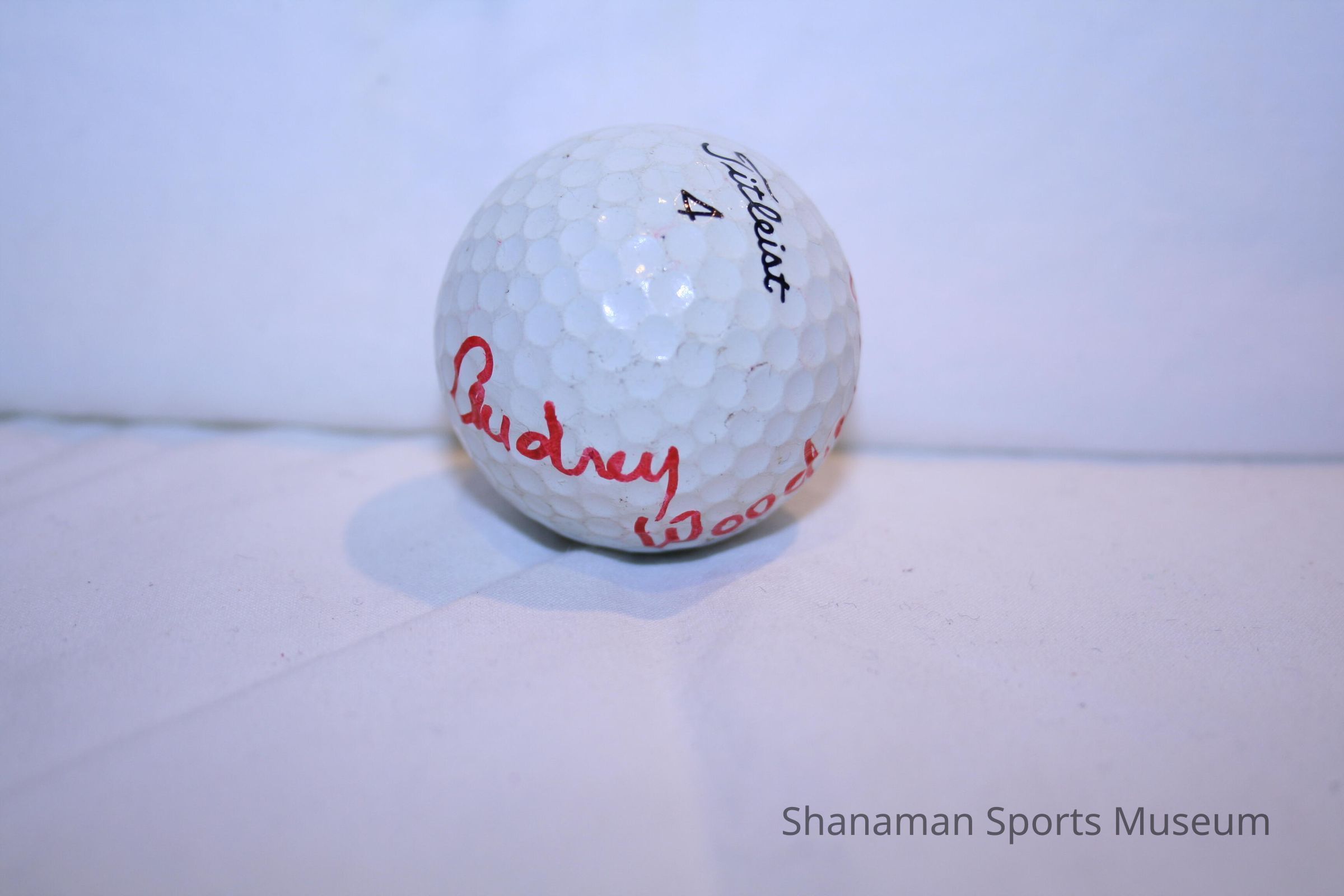 Golf ball (Titleist) signed in red by Audrey Wooding, with smiley face after name. Audrey Wooding currently (6/2000) teaching golf at Interbay in SeattleRelationships