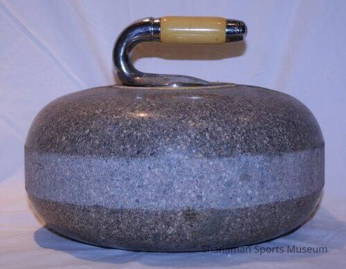 A granite curling stone, shown in this photo, is main implement used in the sport of curling. The stone is pushed down a sheet of ice toward the end with the intention of the stone stopping in the center of a bulls-eye painted into the ice. Curling was first introduced on the West Coast at the Lakewood Ice Arena. The curling club was one of many popular sports played at the rink including hockey and figure skating. The ice arena was the entertainment hub from its opening in 1938 until 1982 when part of the building collapsed and the rest was demolished. Belonged to Stephen C. BrightmanLexicon