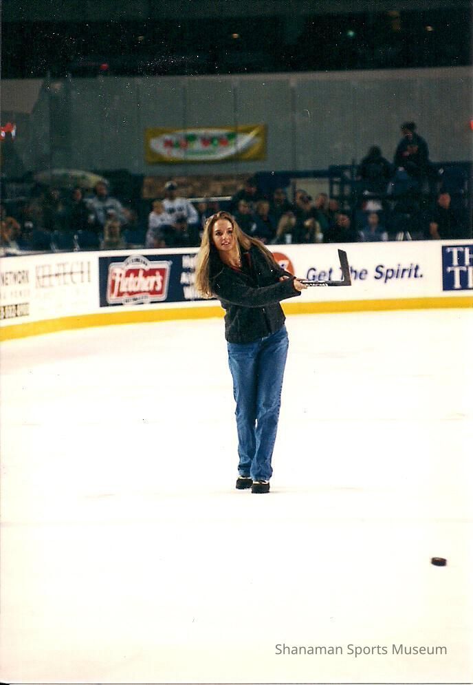 A female fan shoots at the goal for a prize during an intermission at a Tacoma Sabercats game during the 1999-2000 season. The Sabercats were a professional minor league hockey team that began playing in the 1997-88 West Coast Hockey League season and had a successful five-year run. Tacoma won the regular-season Northern Division title and reached the league finals in its first season. The Sabercats lost to the defending champion San Diego Gulls in the league’s first Taylor Cup. The following season, the Sabercats returned to the playoffs after winning the Northern Division title again and this time defeated the Gulls in the Cup finals in the 1998-99 season. It would be the only league championship for the franchise, which folded after the 2001-02 season. The Sabercats made the playoffs all five seasons, winning three division championships as well. The Sabercats were the 1998-1999 WCHL Taylor Cup Champions.Made/Created
