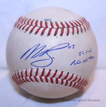 Micah Bowie, who autographed this baseball, was a pitcher for the Sacramento Rivercats. This baseball was thrown by Bowie when he pitched a no hitter through seven innings against the Tacoma Rainiers at Cheney Stadium on May 1, 2001. Bowie played professional baseball for 16 years and pitched in the major leagues for six years, playing for five teams. The left-handed Bowie pitched for the Atlanta Braves, the Chicago Cubs, the Oakland Athletics, the Washington Nationals and the Colorado Rockies. Bowie, who was born in 1974, was drafted by the Atlanta Braves in the eighth round in 1993.Lexicon