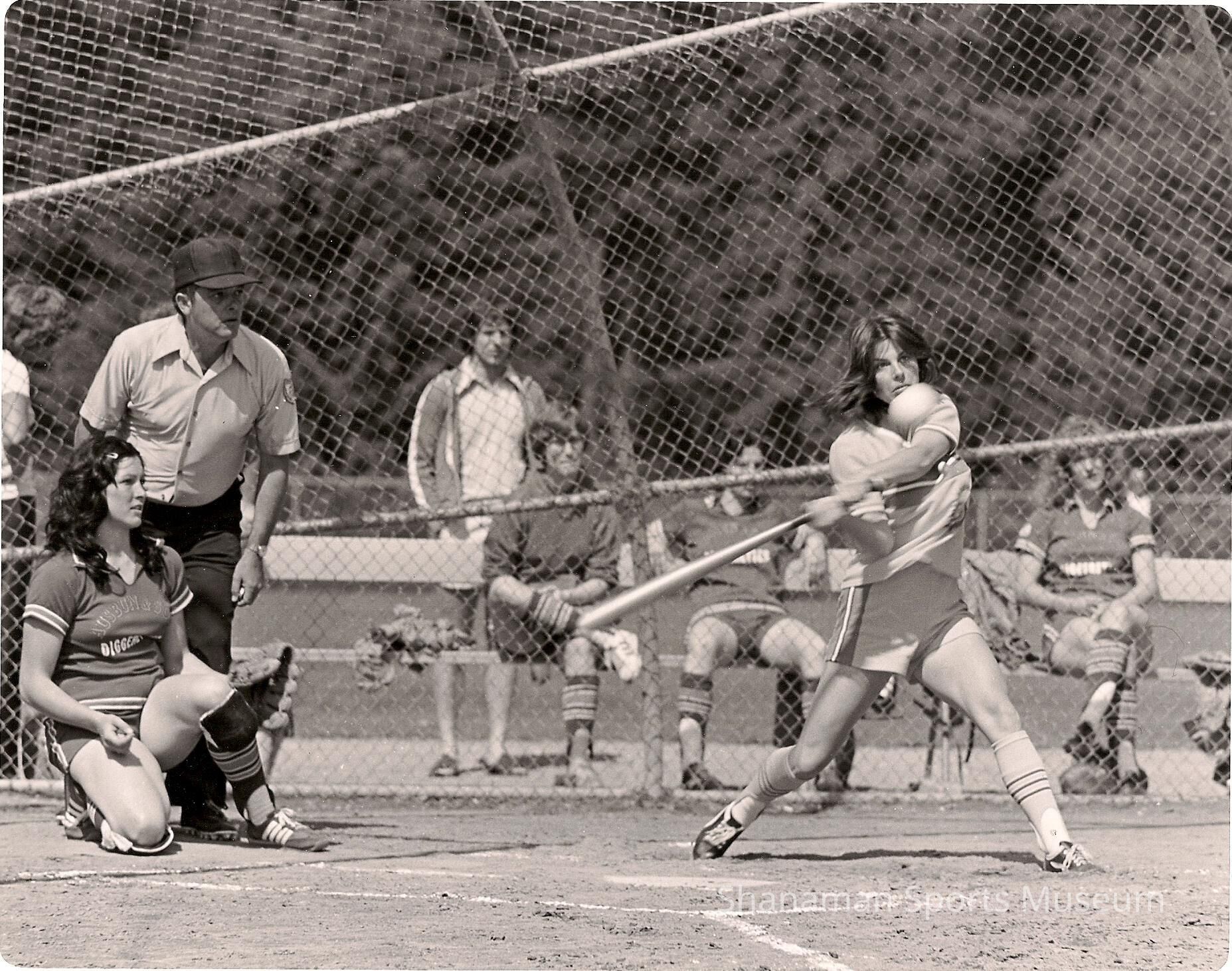 As a female batter swings at a pitch, umpire Tom Slee stands behind the plate calling balls and strikes. Slee was a longtime umpire in Tacoma. Women's and men's softball has remained popular in Tacoma over the years. Slowpitch softball started in 1956 when Tom Cross, who was the assistant superintendent of Tacoma's Metropolitan Park District, started the sport in Tacoma after he saw it played in Chicago. Until then, teams only played fastpitch.Lexicon