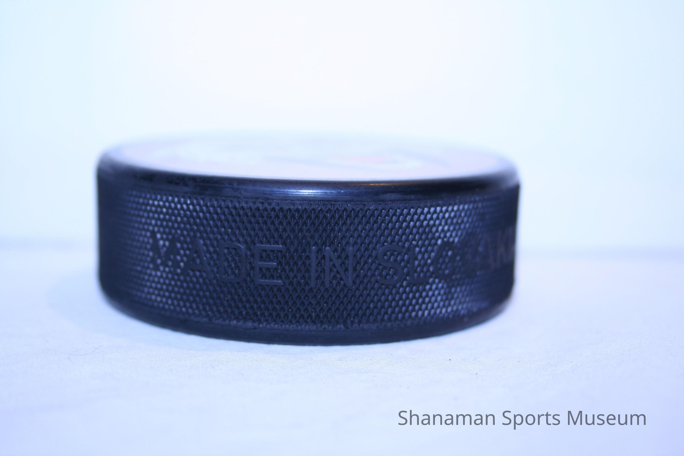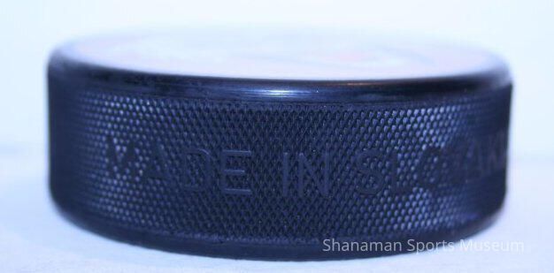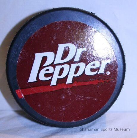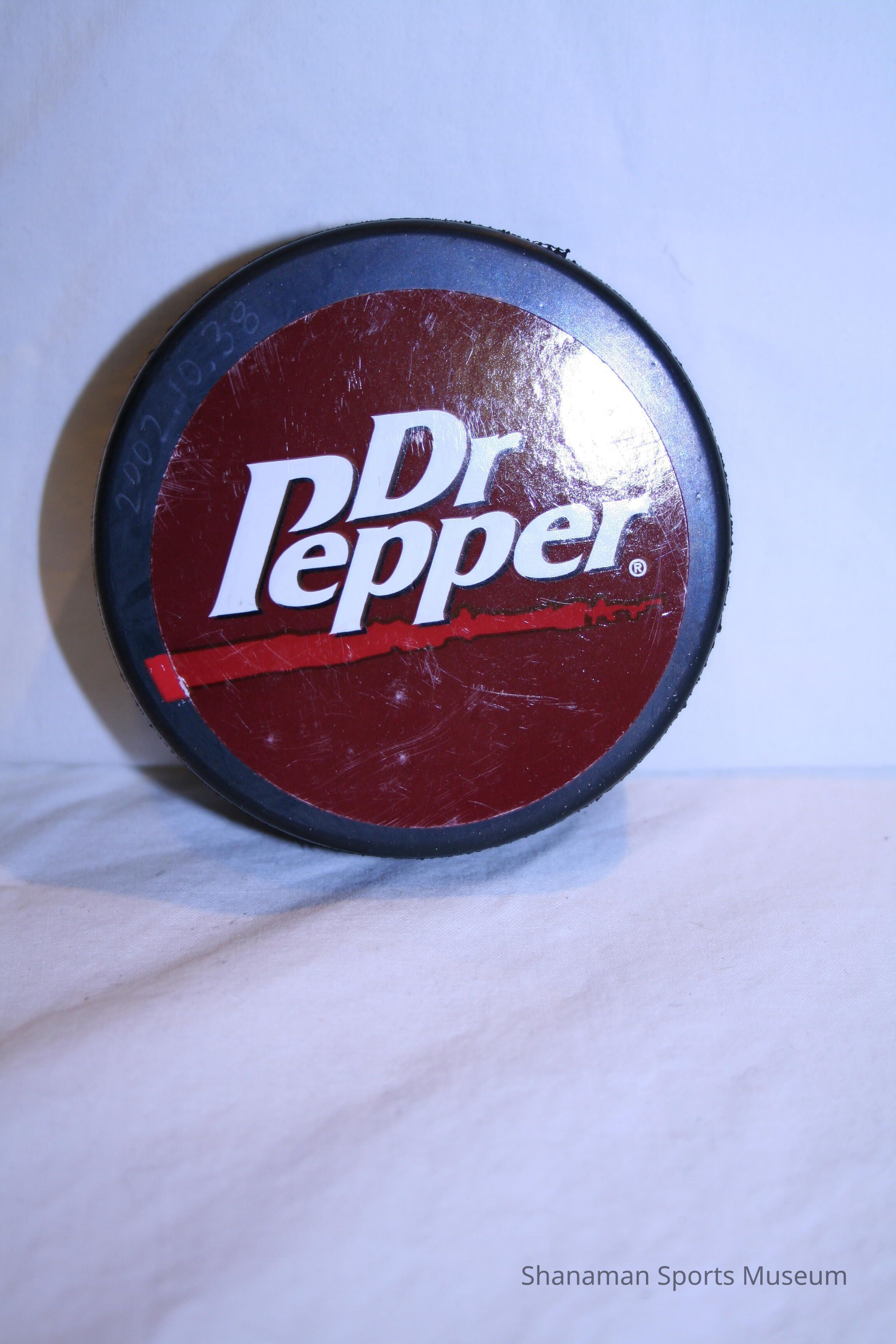 On the other side is the logo of promotion sponsor Dr. Pepper. Lettering around the side of the puck says, VEGUM OFFICIAL MADE IN SLOVAKIA.