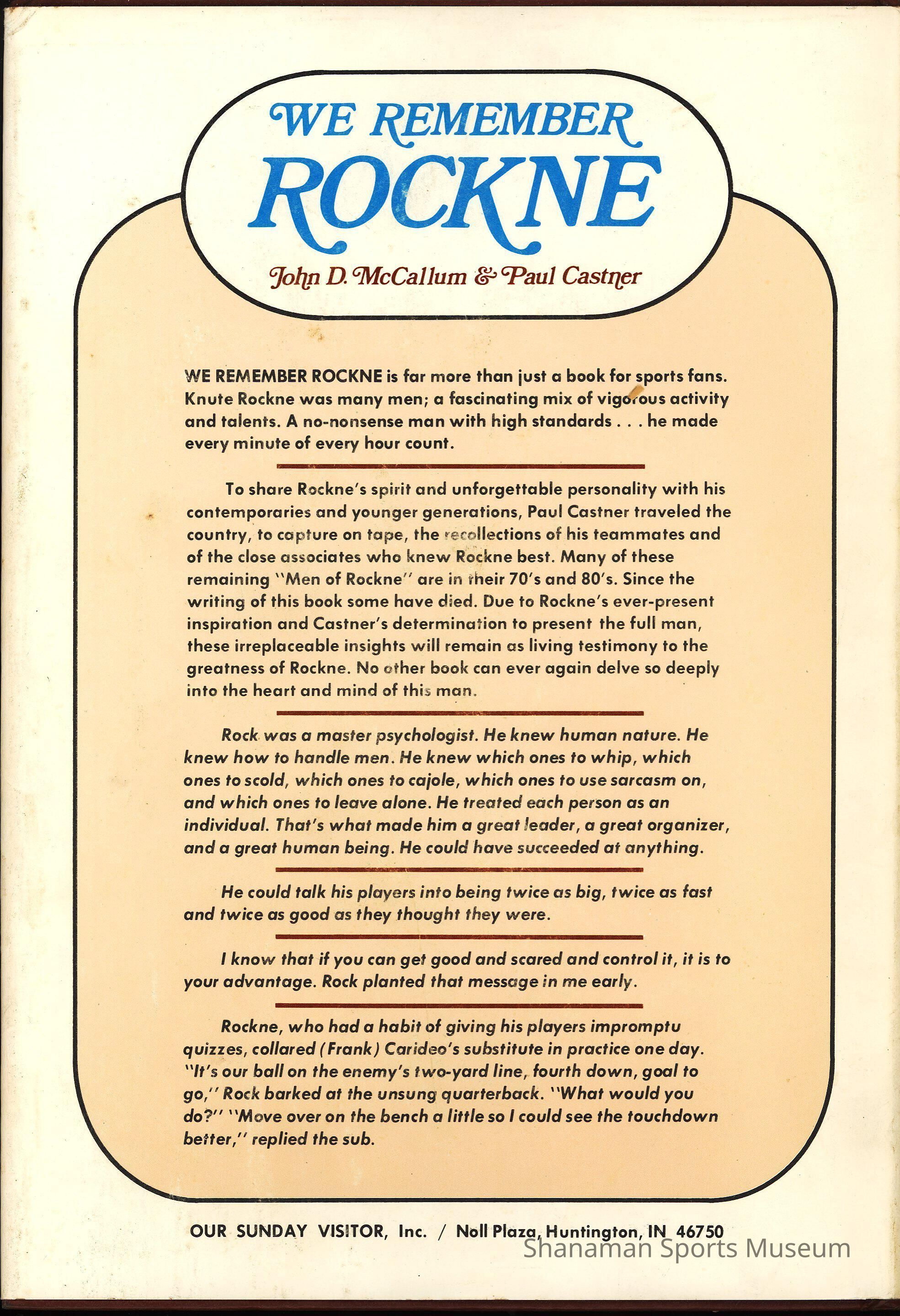 "We Remember Rockne" c:1975