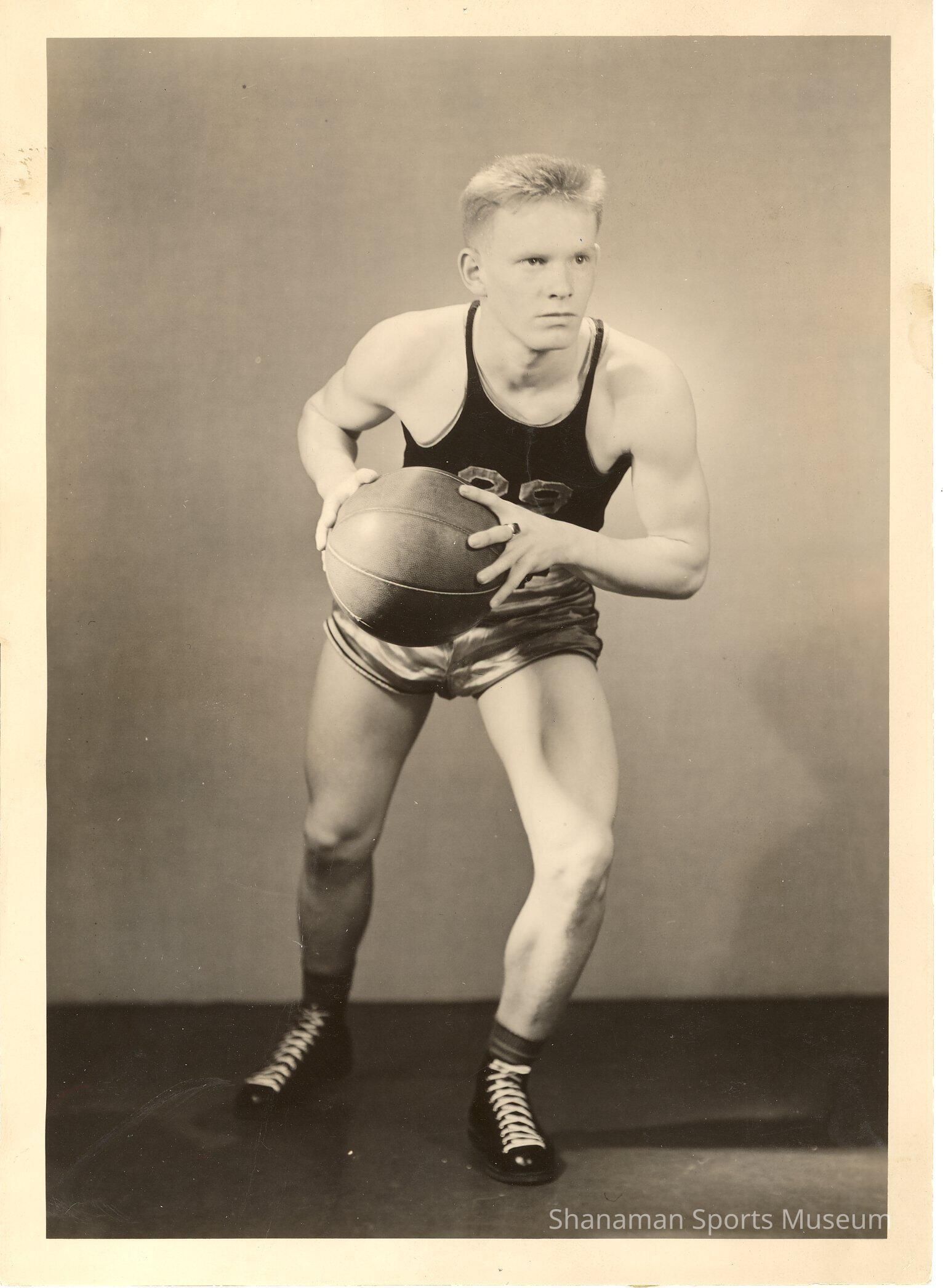 B/w photograph of Dean Mellor, #29 on the College of Puget Sound basketball team, 1950s.Relationships