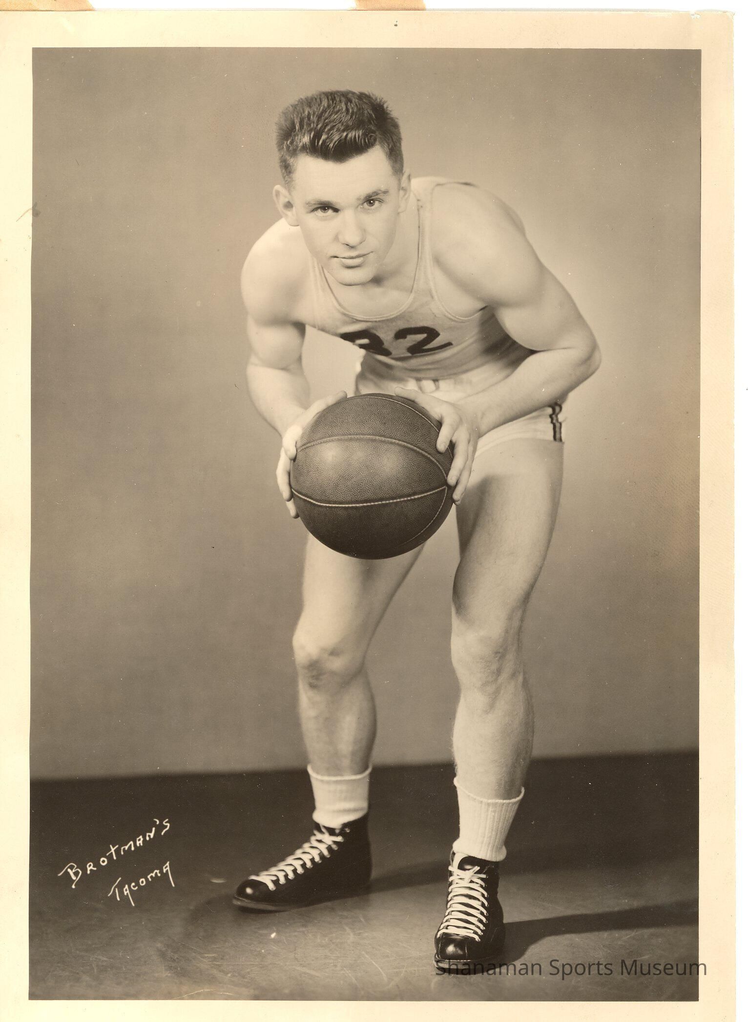 B/w photograph of Bob McGuire, #32 on the College of Puget Sound basketball team, 1950s.Relationships