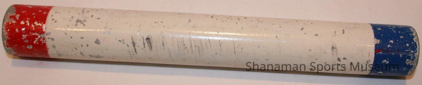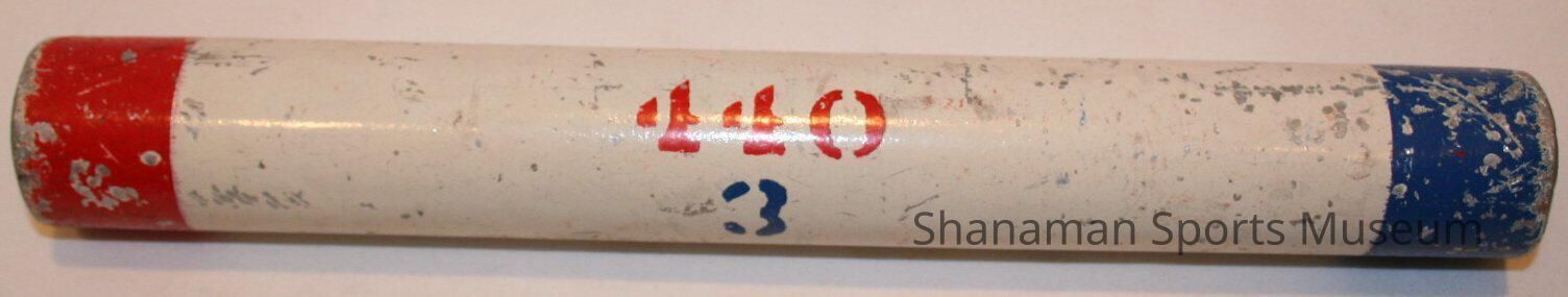 The baton is painted white with red and blue paint at the end. “440/3” is stenciled in the center.