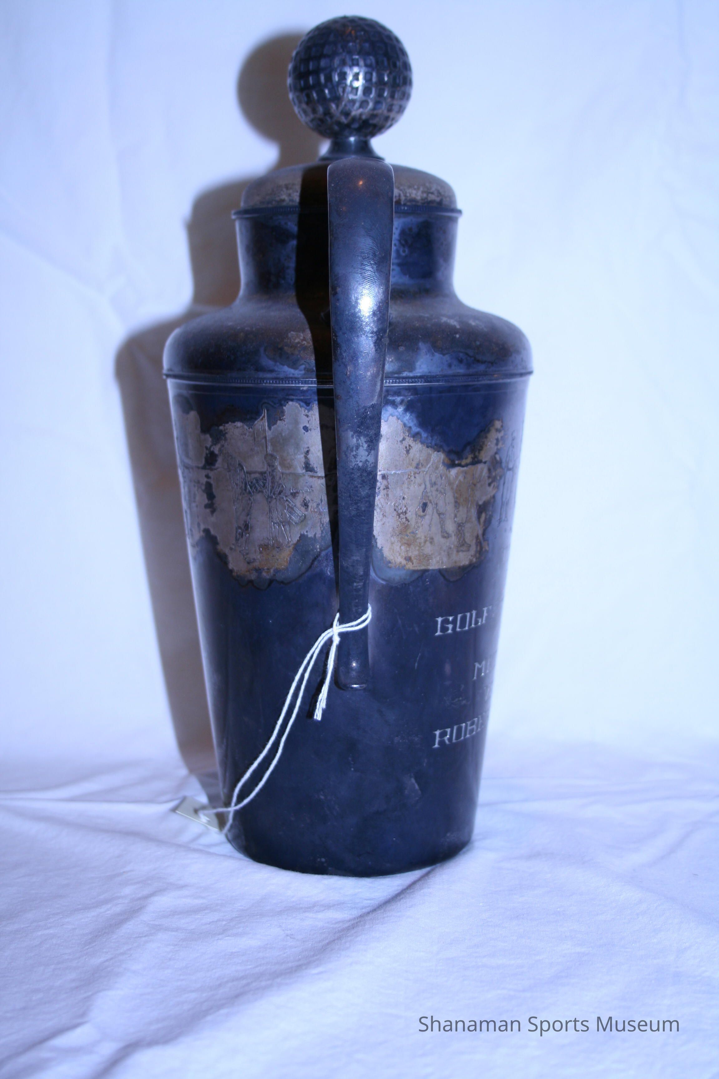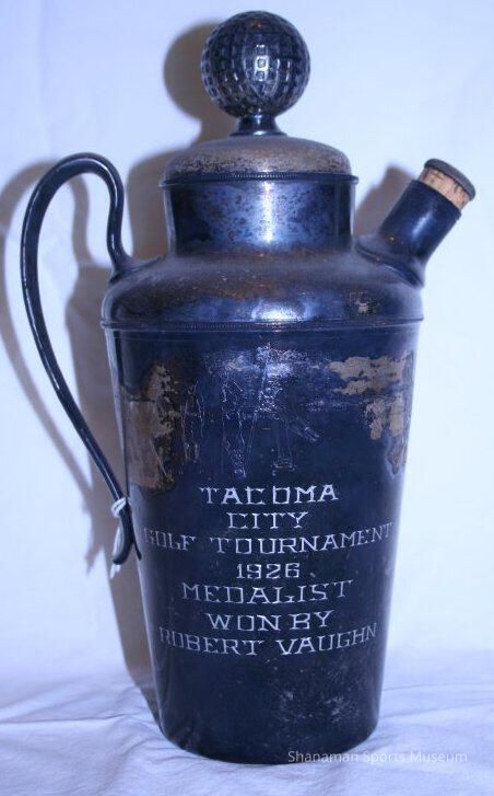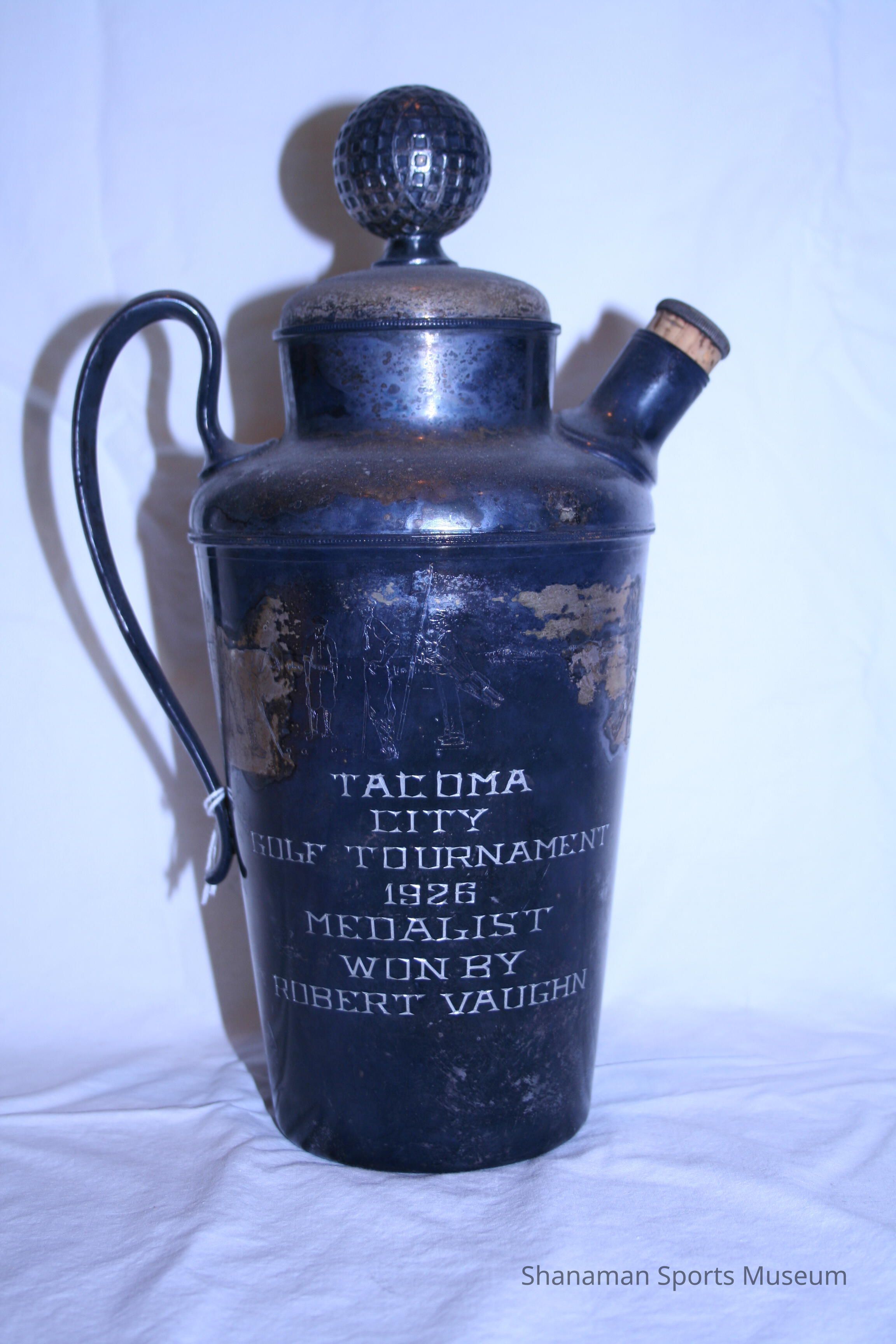 A pitcher-style silver trophy was awarded to Robert Vaughn for winning the 1926 Tacoma City Golf Tournament.