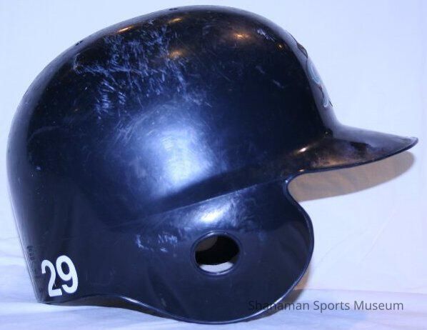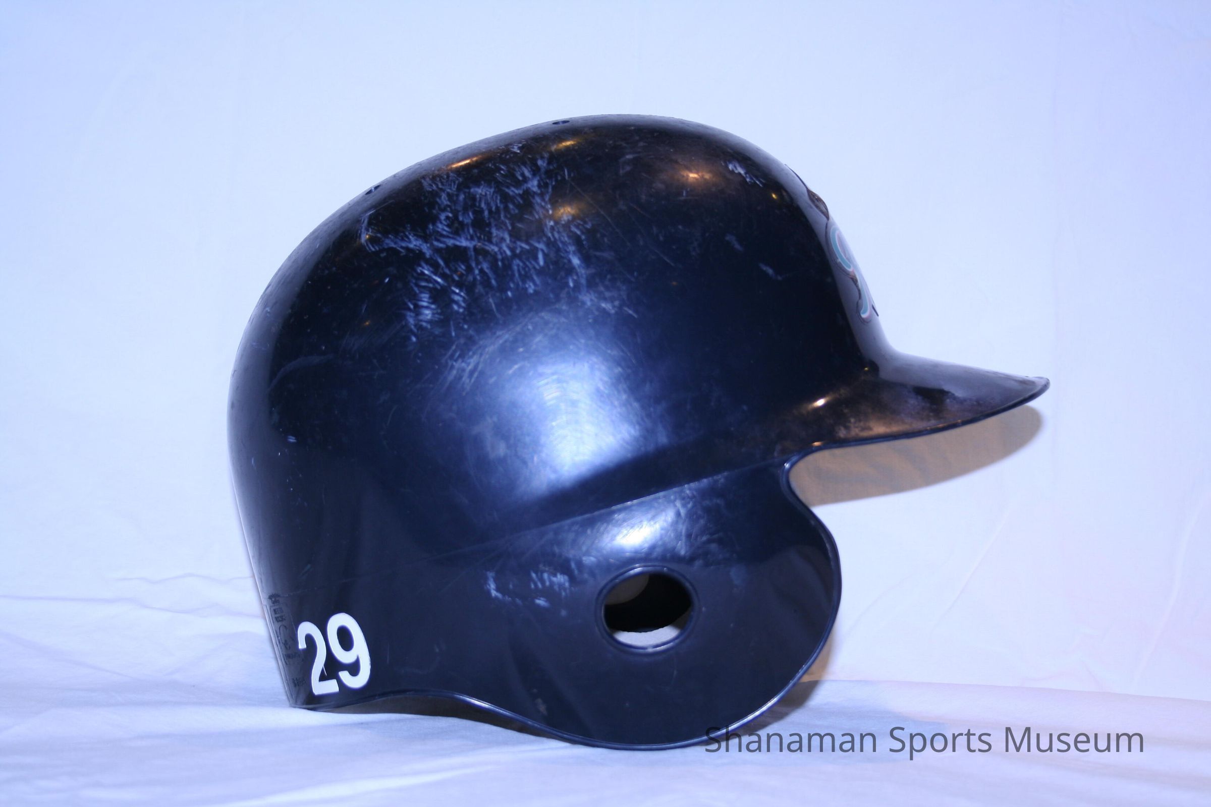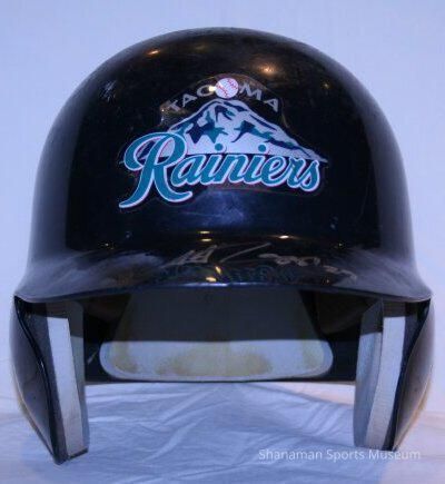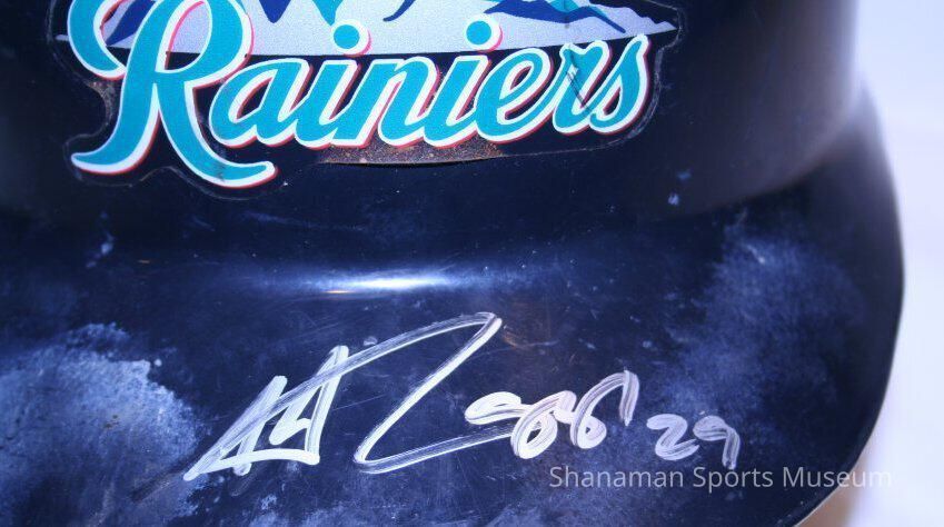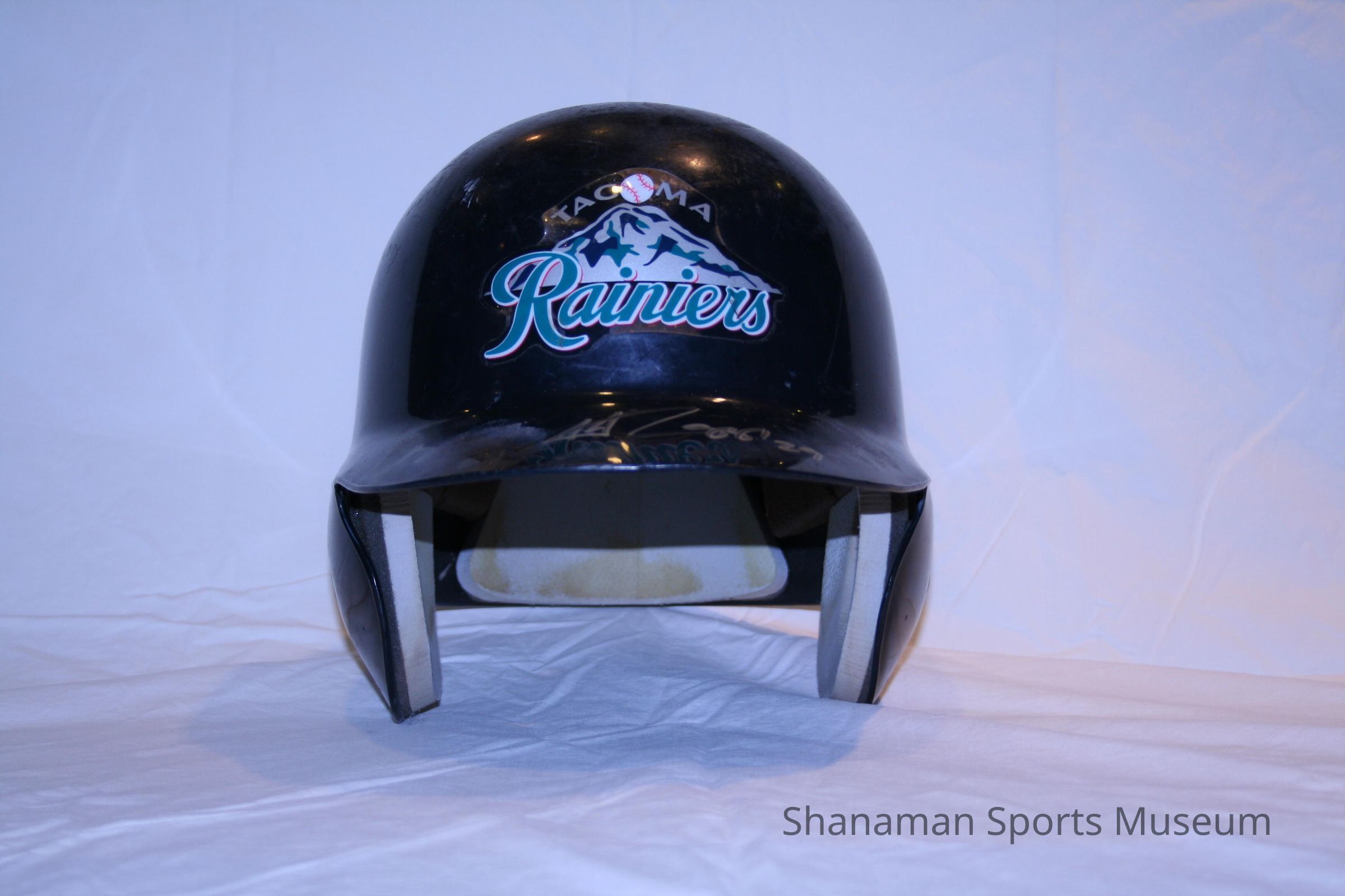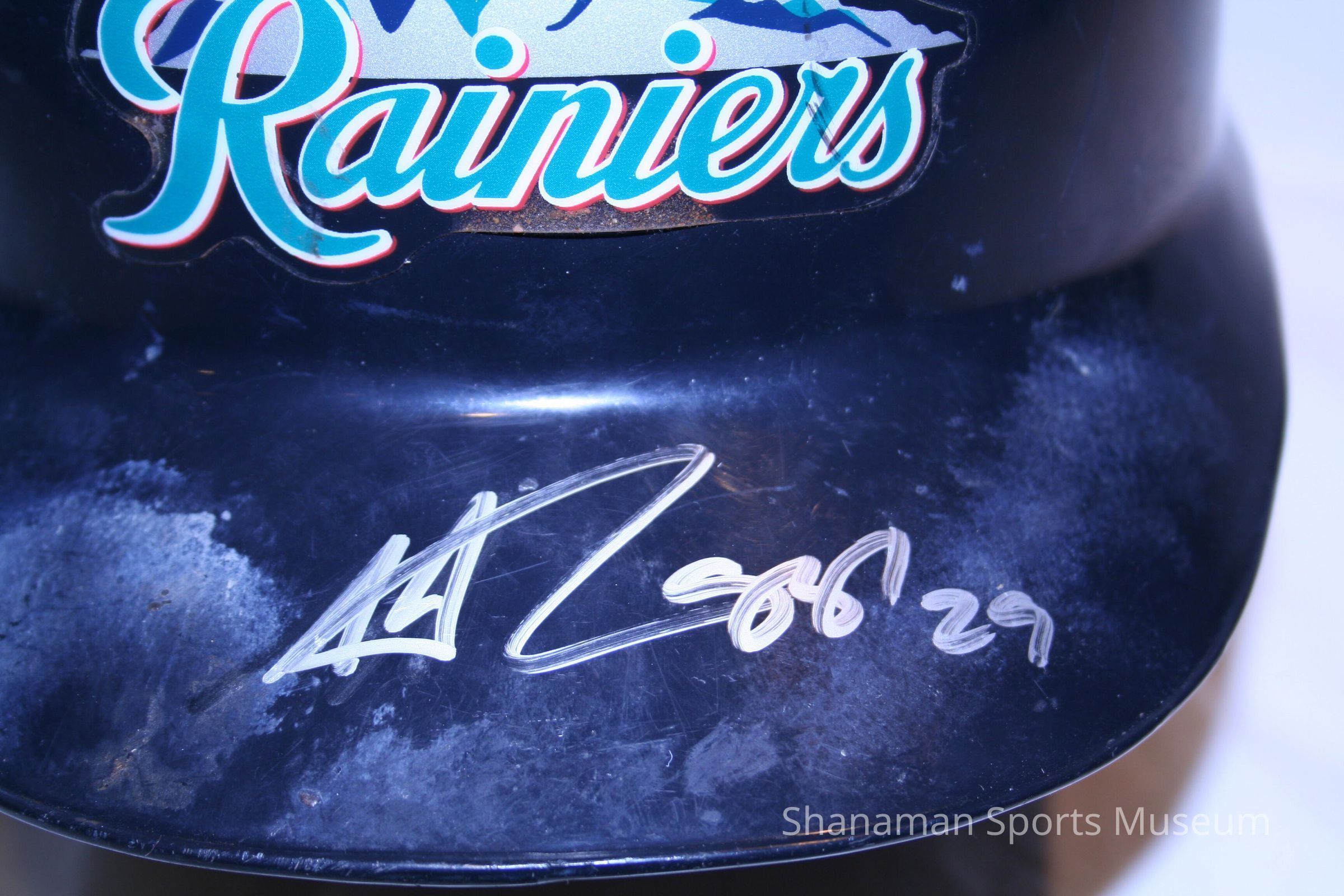 AJ Zapp wore this helmet when he hit an out-of-the-park home run for the Tacoma Rainiers on Sept. 1, 2004. Zapp, who autographed the brim of the helmet, was a first-round draft pick right out of high school by the Atlanta Braves in 1996. He batted .524 with 16 home runs his senior year in high school in Greenwood, Indiana. But he struggled with injuries in the minor leagues and never reached the major leagues, retiring in 2007 after playing in the minor leagues for three different franchises – the Atlanta Braves, the Seattle Mariners and the Cincinnati Reds.Lexicon