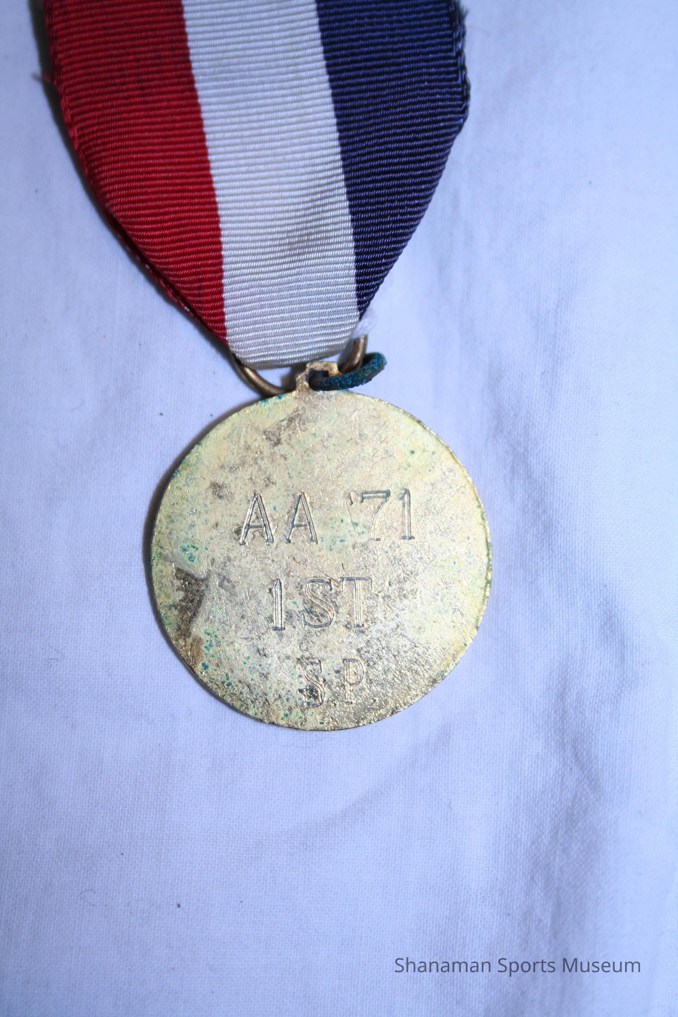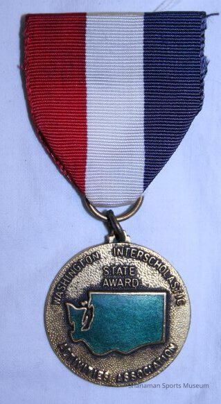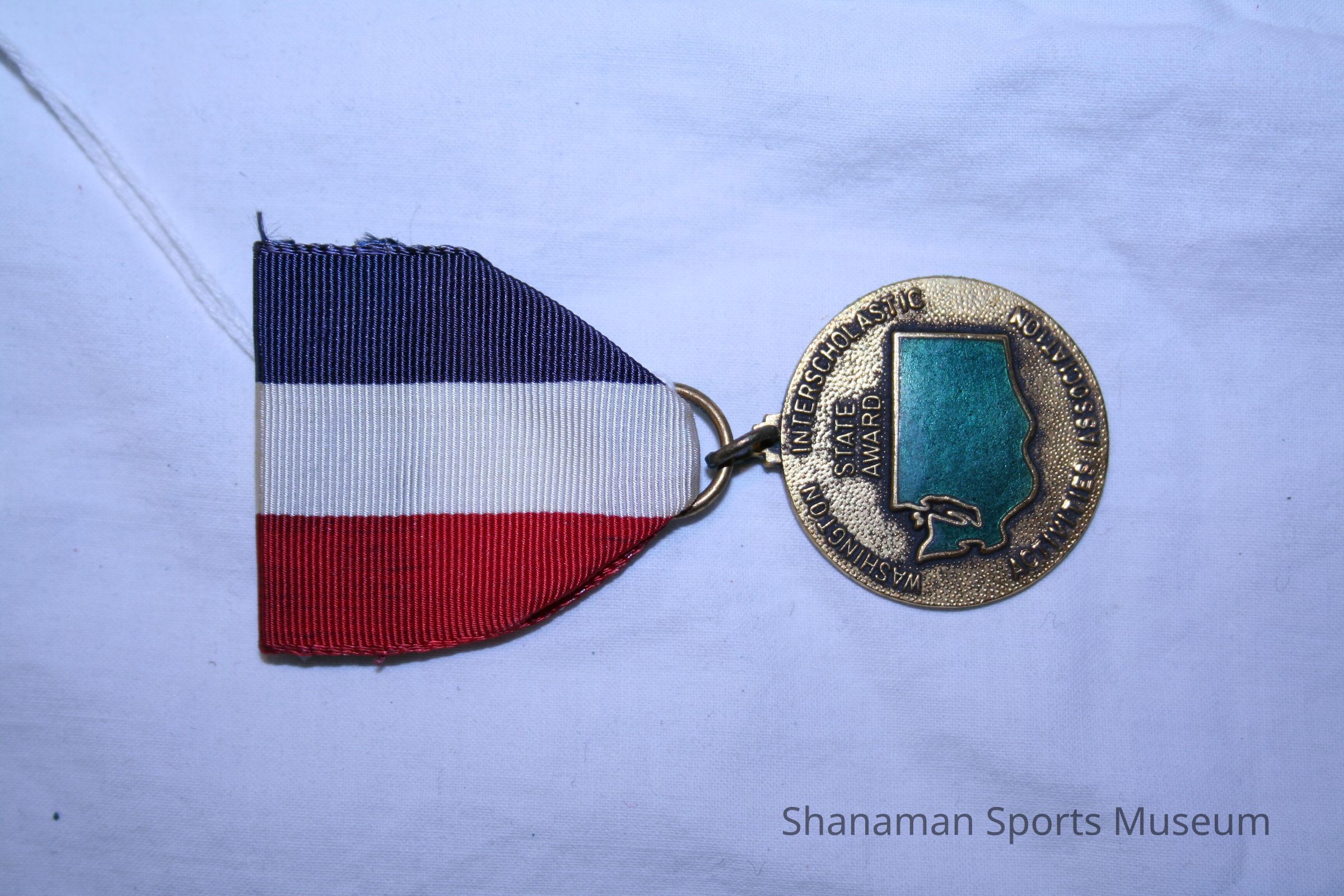 This medal was won by Dana LeDuc in the 1971 Washington State high school track and field championships in the shot put. LeDuc went on to win the Southwest Conference championship in the shot put in 1974, 1975 and 1976 while at the University of Texas and earned All-America honors. He also won the 1976 National Championship in the shot put. LeDuc stayed at his alma mater and was named Texas’ first strength and conditioning coach in 1978. He also served as strength and conditioning coach for the Seattle Seahawks and the St. Louis Rams.