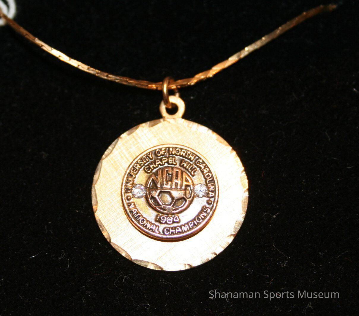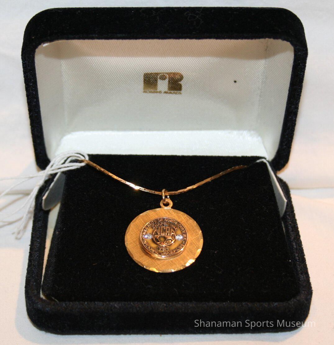 This medallion was presented to Dori Kovanen for winning the 1984 NCAA women’s Division I soccer championship while at the University of North Carolina. Kovanen, a Stadium High product, was one of Washington state’s top athletes by the time she reached her senior year. Kovanen had 32 scholarship in five different sports but chose to play soccer at North Carolina. Kovanen earned a spot as a starter her freshman season in 1981 — the beginning of a dynasty that included winning the NCAA Division I championship that season and 18 titles since then. Kovanen was selected to play for the U.S. National team at the world championship, but a knee injury during practice ended that plan. Kovanen returned to UNC and won four total championships, earned three All-Conference honors, a regional tournament MVP and first and second-team All-America. Kovanen also coached at Stanford University before pursuing a career as a geologist. She was inducted into the Pierce-County Sports Hall of Fame in 2005.