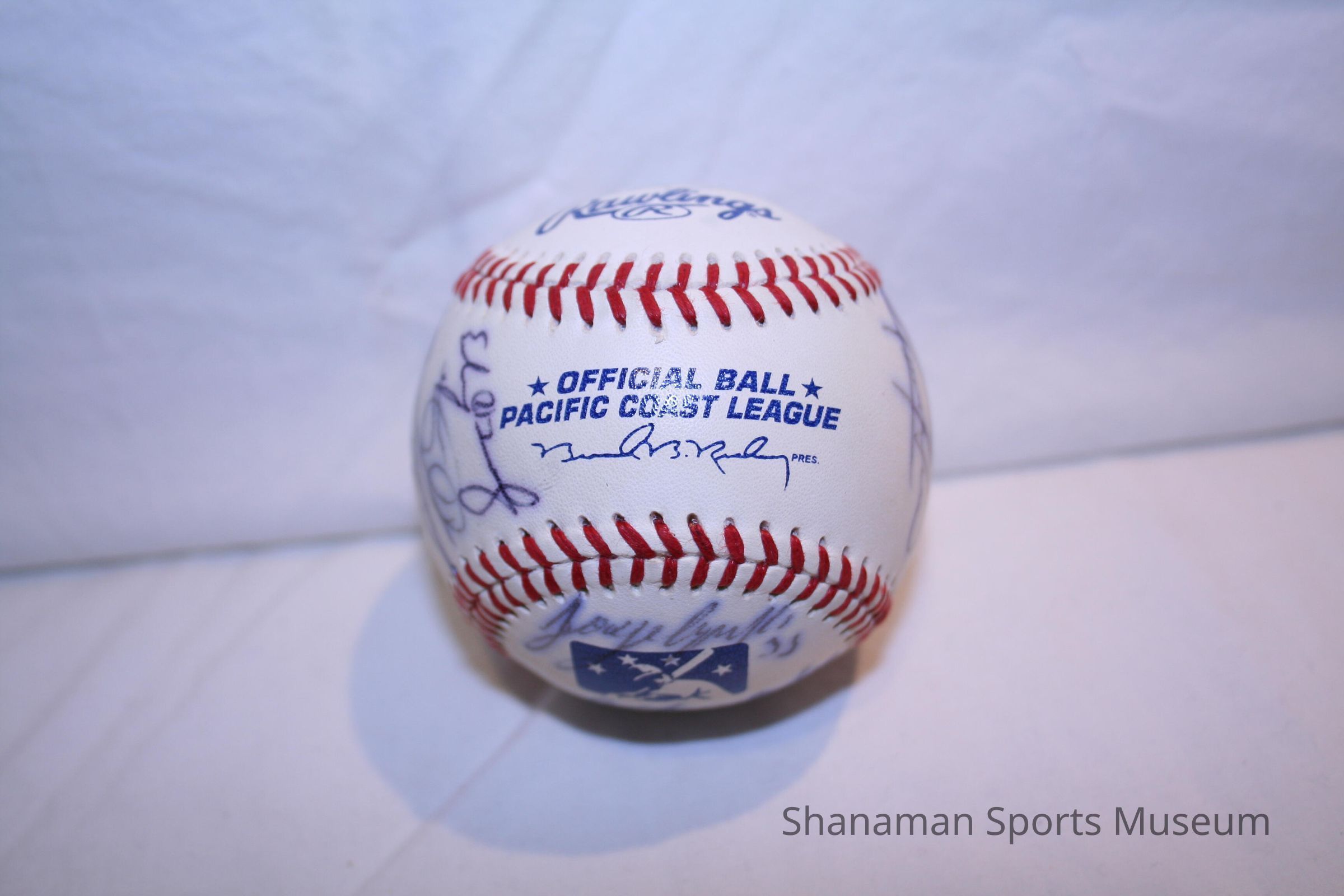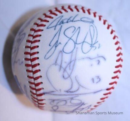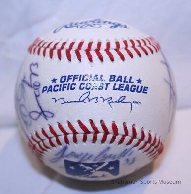 Baseball autographed by members of the 2005 Tacoma Rainiers team. The 2005 Tacoma Rainiers were one of the most successful teams in franchise history as they made a run all the way to the Pacific Coast League Championship against Nashville. The Rainiers (80-64 record) were managed by Dan Rohn who was named the PCL manager of the year. Tacoma lost the first two games against Nashville and forced a 13th-inning game in the best-of-three series. Nashville’s Nelson Cruz (who went on to play for the Seattle Mariners) hit a three-run home run to beat the Rainiers. Tacoma did win five PCL Championships in its history; 1961, 1969, 1978, 2001 and 2010.