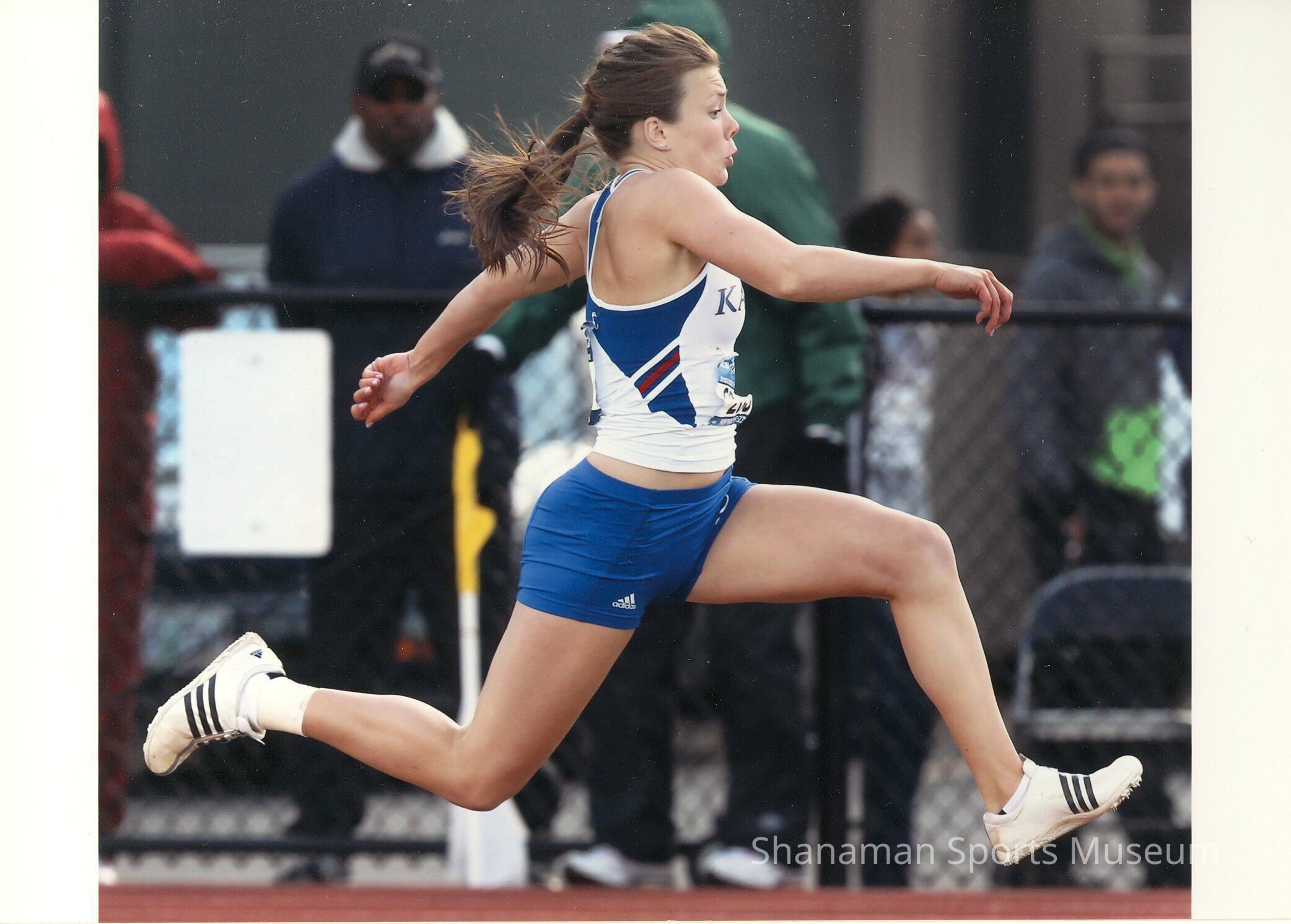 Andrea Geubelle, a Curtis High School graduate, competed in track and field for the Vikings who went on to the University of Kansas. Geubelle, seen competing in the long jump for Kansas at Hayward Field in Eugene, Oregon, was a three-time champion in high school in the long jump, triple jump and 100-meter race. Geubelle won the long jump at the 2008 AAU Junior Olympic Games and at the 2009 Nike Outdoor Nationals, she won gold medals in the long and triple jump. In 2013, Geubelle was ranked as America’s top female triple jumper. She won the national title in 2013 in both events and, at 20-years-old, she finished third in the 2012 Olympic Trials. She made the Olympic team for the 2016 games in Rio de Janeiro, Brazil and was as three-time NCAA champion at Kansas. In 2012, Geubelle was named a Dick Hannula Amateur Athlete of the Year. Photo donated by Marc Blau.