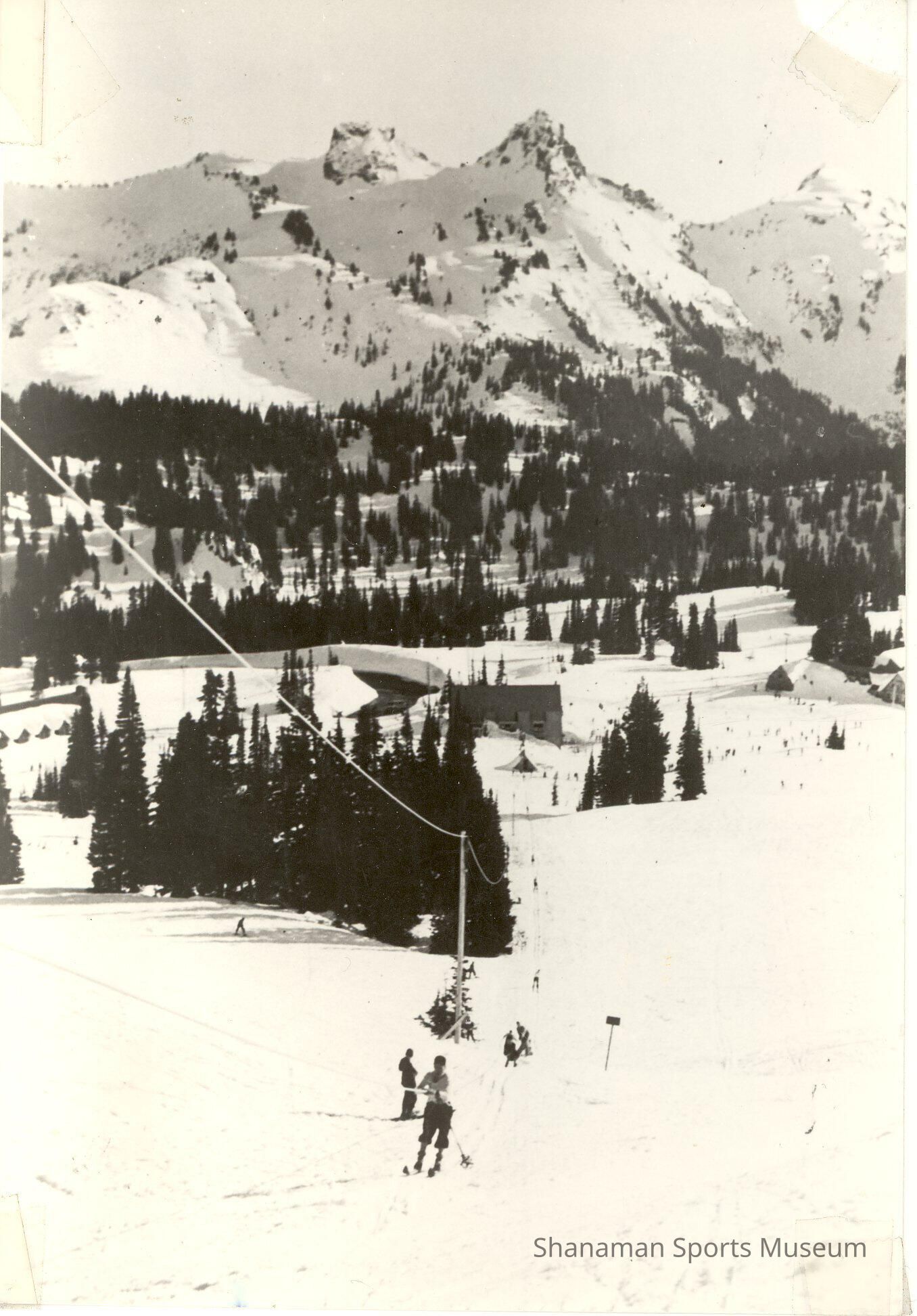 Back in 1937, a rope tow for skiers was installed at Alta Vista at Paradise and it became a popular place for skiing. With Paradise averaging 641 inches of snow per year, it became a popular destination for skiers. Paradise Inn was built in 1916 and opened in 1917 and it became a popular hotel for skiers during the snowy winters. It became a famous place to ski. In 1935, the U.S. Olympic downhill ski team held their tryouts at Paradise. Two years later, a ski rope tow was built there. The ski lifts were removed in the 1970s. The road to Paradise from Longmire is open year around, but all drivers from Nov. 1 to May 1 are required to carry chains. Paradise set the world record for measured snowfall in a single year when 1,122 inches fell in the 1971-72 winter.Made/Created