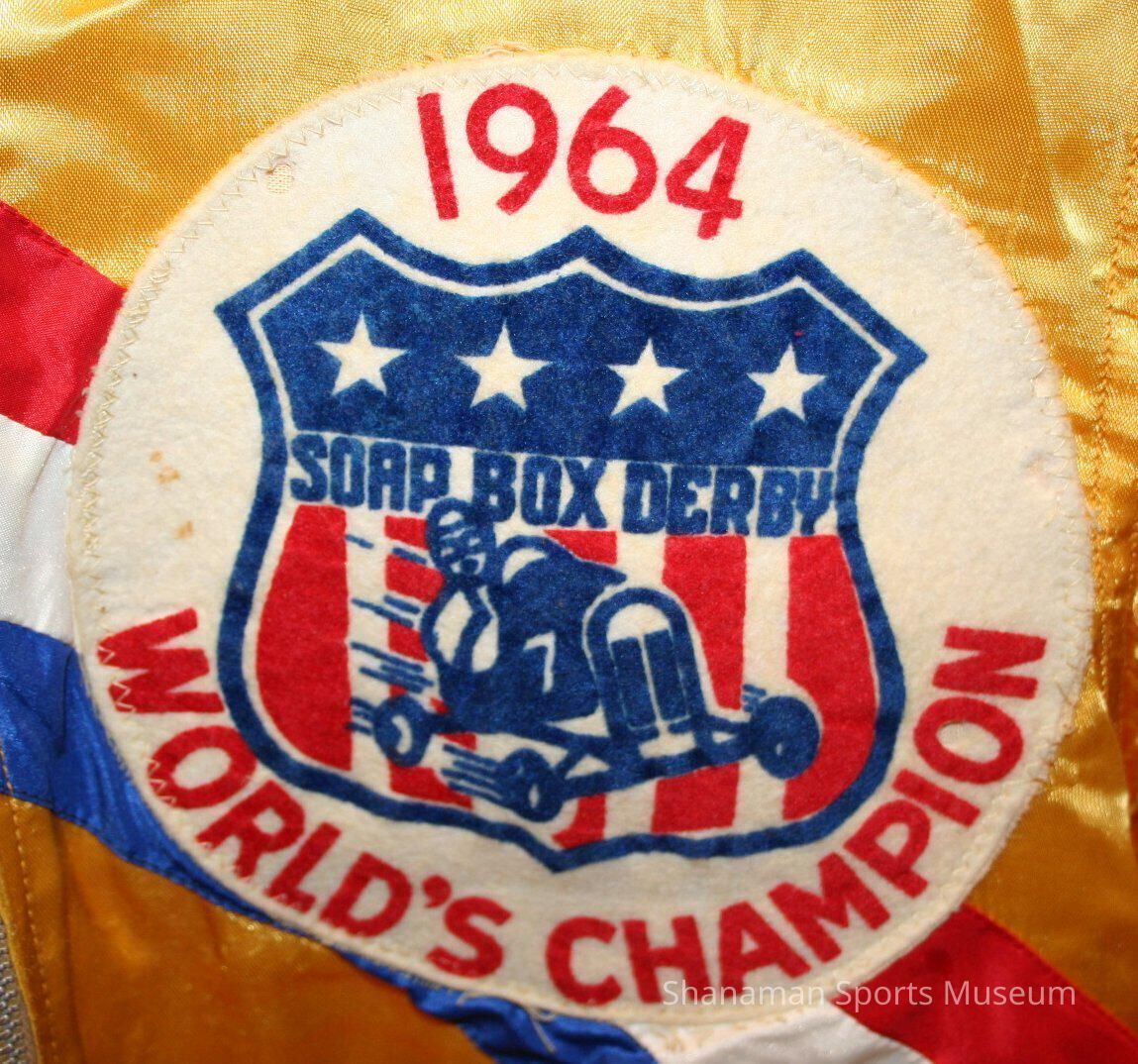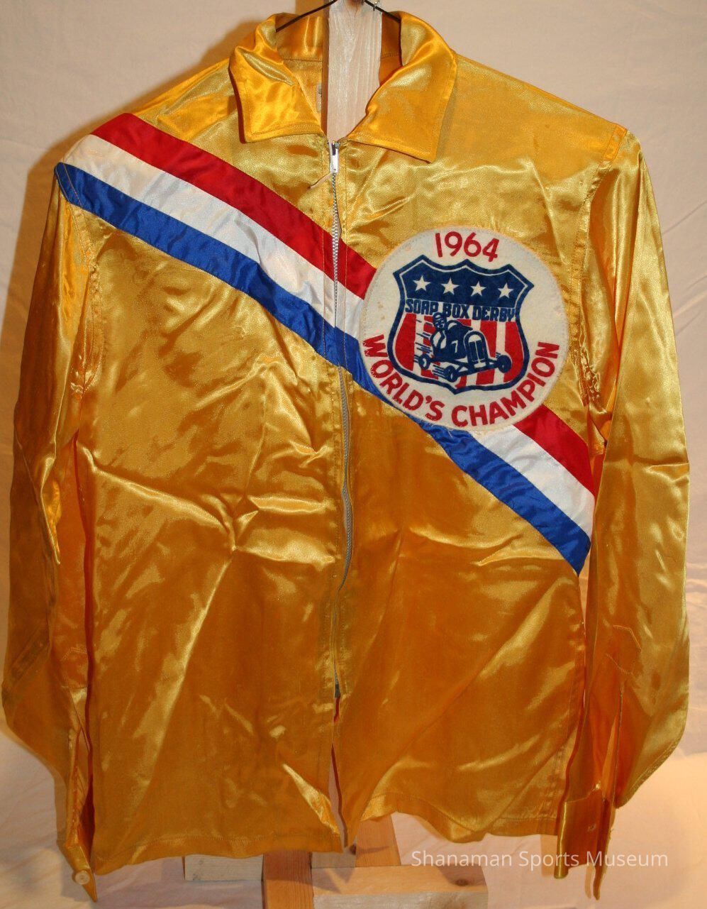 Gregory Schumacher was awarded this gold satin jacket after winning the 1964 All-American Soap Box Derby Championship. Schumacher, 14, of Tacoma, gave the Pacific Northwest its first derby world championships when he won the race in Akron, Ohio. Schumacher bettered 239 competitors in his sleek white racer to capture the $7,500 first-place scholarship. The first official All-American Soap Box Derby in Dayton, Ohio, was in 1934. The national race ran continuously until a four-year hiatus during World War II and then resumed in 1946 and has been held every year since. Tacoma held its first soap box derby in 1940.
