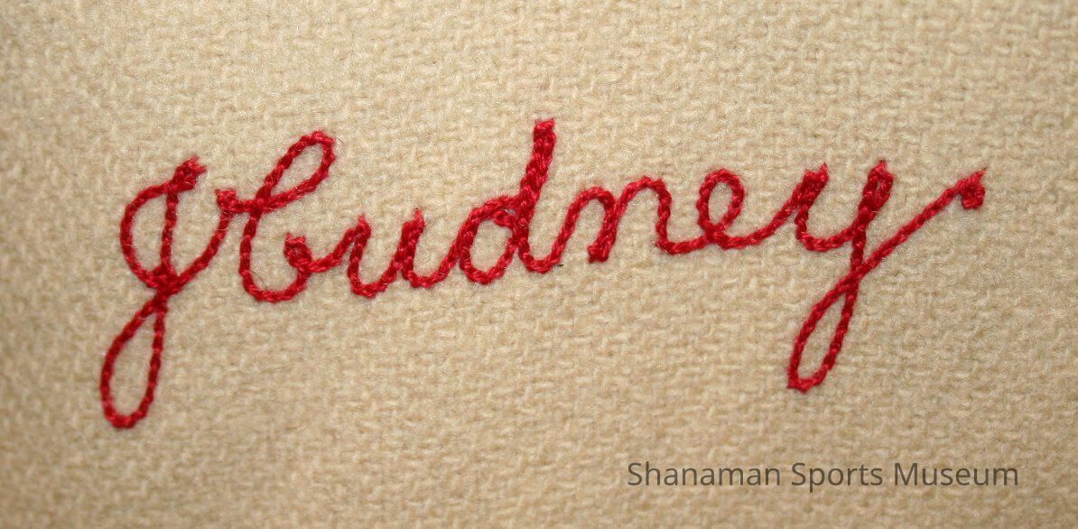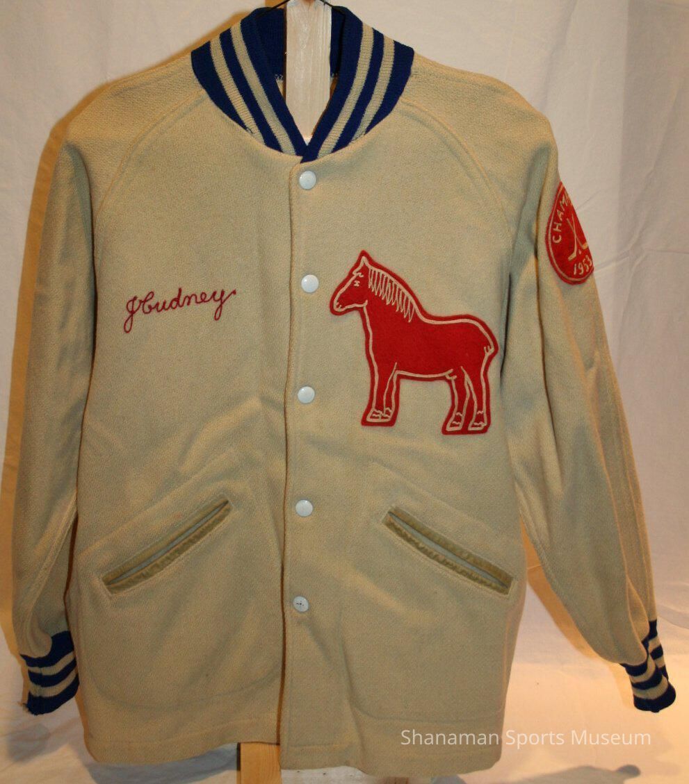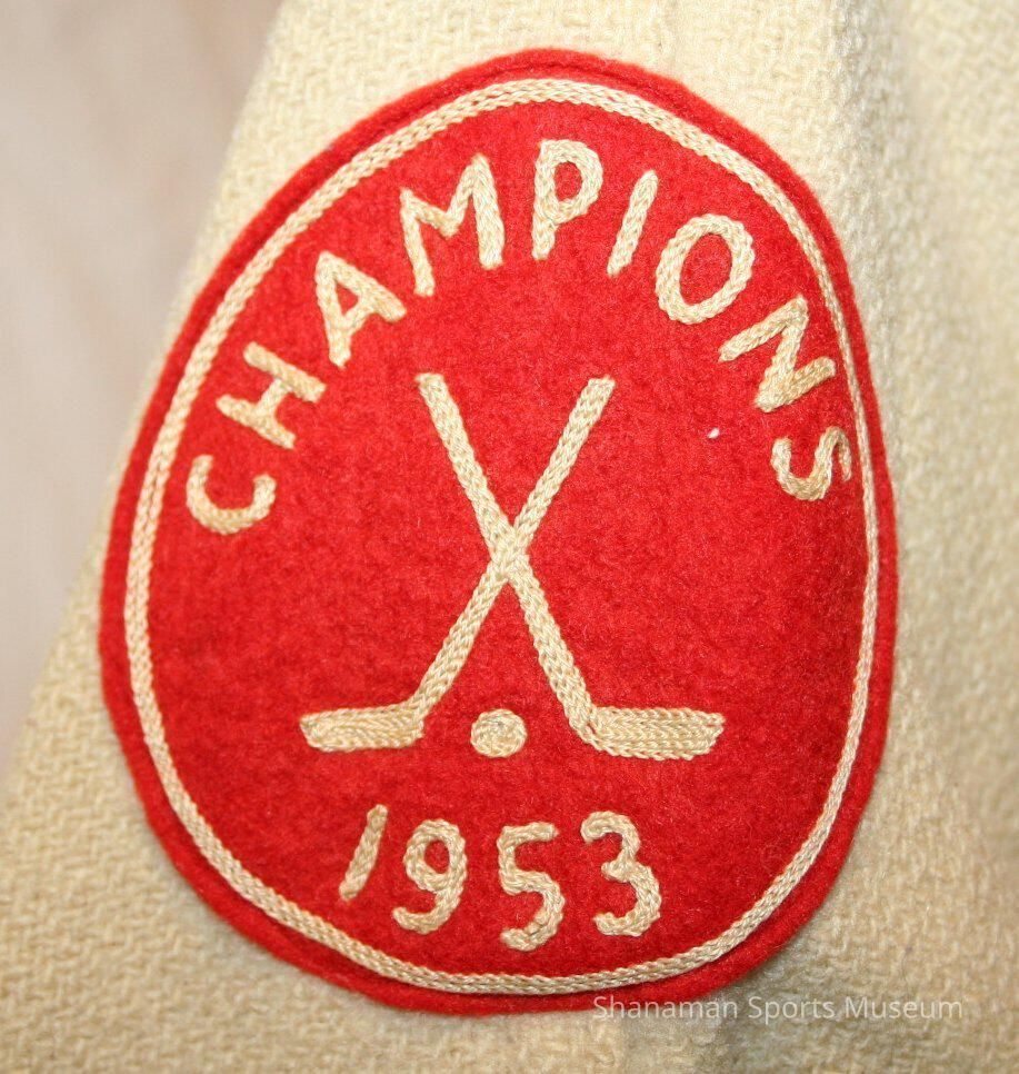 A red and white Champions 1953 patch is on the left arm, with J Cudney embroidered in cursive over the right breast.