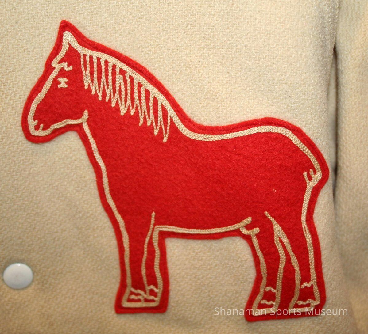 A patch of the Cheney Studs horse mascot is over the left breast.Lexicon