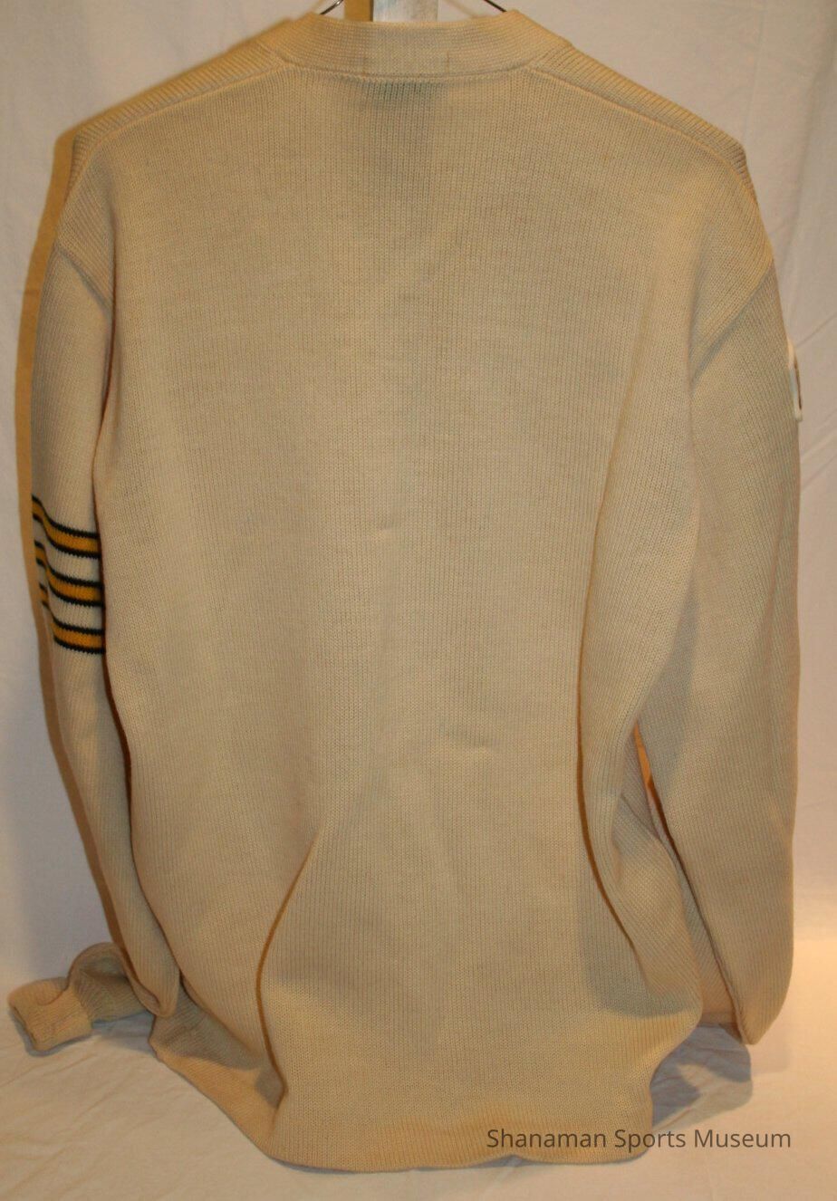Jerry Cudney, who wore this varsity letterman sweater, was a versatile athlete who was also a member of the Cheney Studs Pee-Wee hockey team that won a championship in 1950-51. The Studs were part of a lager organization that included pee wee football, hockey and basketball at various divisions. Founder Ben Cheney was an avid baseball fan but grew up in a low-income family and couldn’t afford his own gear. Cheney worked to grow his own successful business in Tacoma, the Cheney Lumber Company, and began to sponsor youth sports programs for boys and girls until his death in 1971.