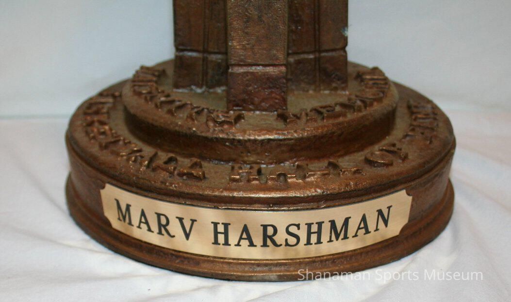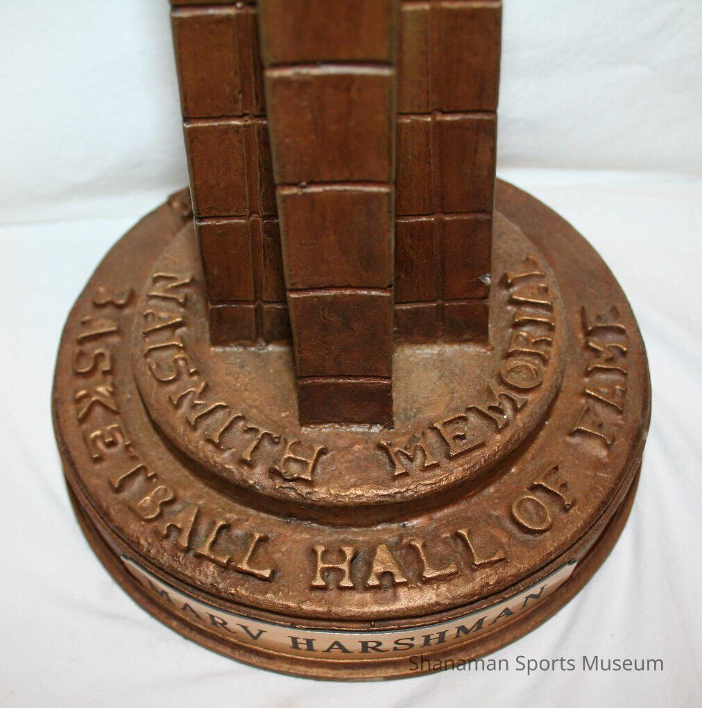 Marv Harshman, the longtime basketball coach at Washington State University and then the University of Washington, received this trophy when he was inducted into the Naismith Memorial Basketball Hall of Fame in 1985. Harshman began a successful coaching career after playing football, basketball, baseball and track at the Pacific Lutheran College in the 1930s. After graduating, he then coached basketball and some baseball and football at PLC before moving on to Washington State to coach basketball. His teams won 642 games over 40 years.Lexicon