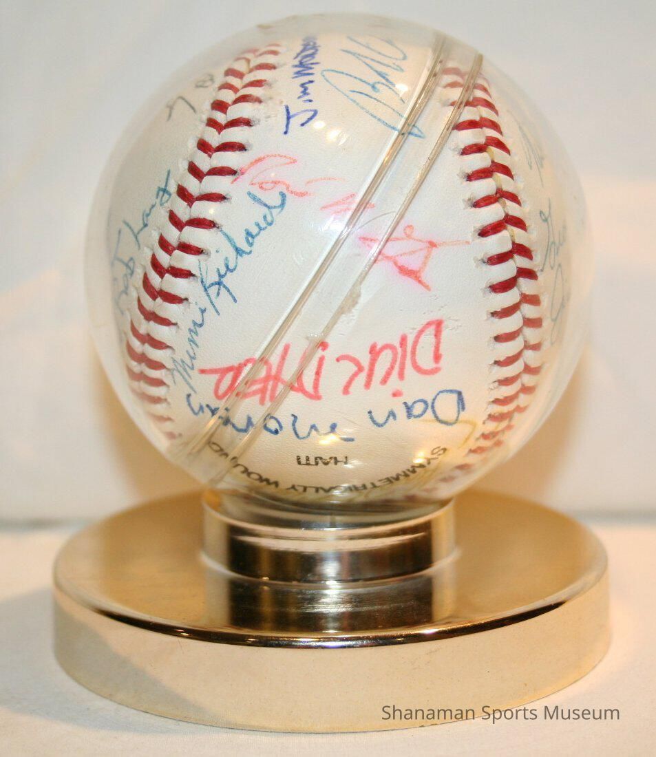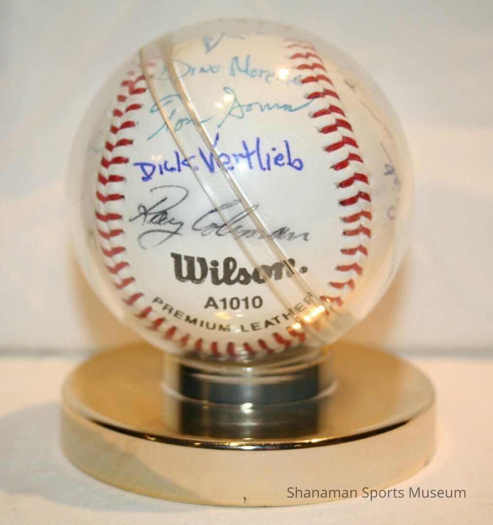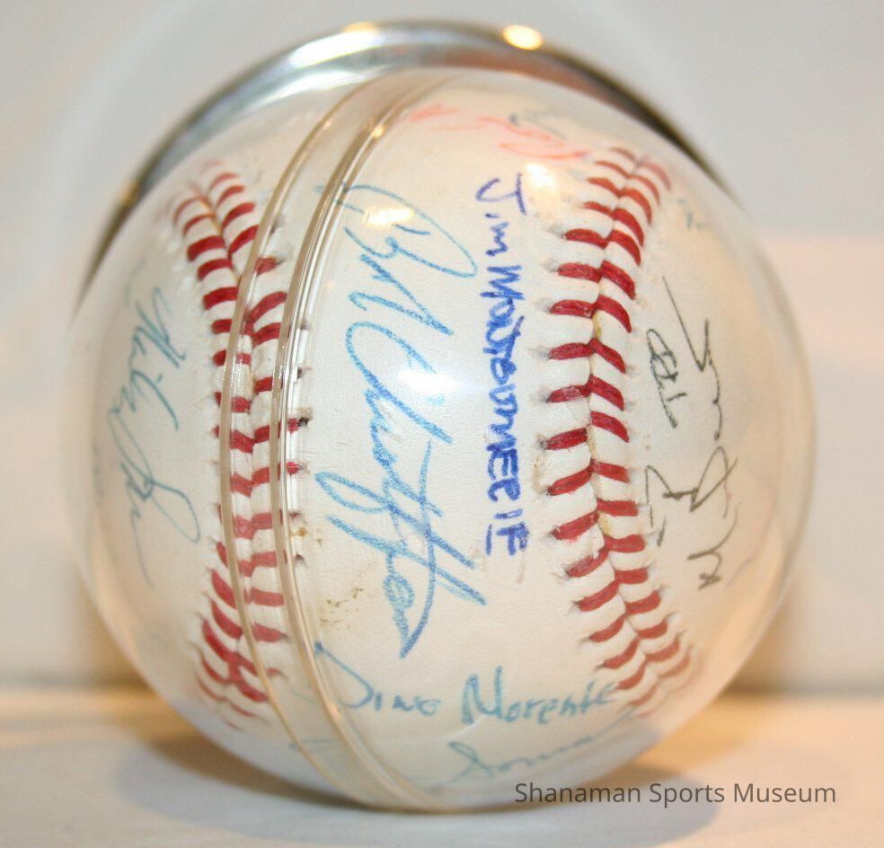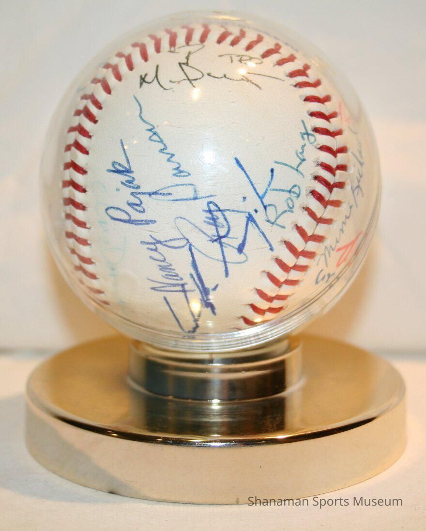 The baseball tournament from the 1990 Goodwill Games was held in Tacoma's Cheney Stadium. This autographed baseball was signed by the umpires and administrators who worked that baseball tournament. The Cuban national team easily won the baseball championship held in Cheney Stadium. They clobbered the United States team 16-2 in the semifinals. Cuba placed first in baseball, Japan took second the United States took third. The U.S. took a gold medal in baseball at the 1990 Summer Olympics. There were several players who played baseball in the 1990 Goodwill Games who went on and played in the major leagues. From Canada's team there was Rob Butler and from Japan's team there was Shigetoshi Hasegawa and Shingo Takatsu. The U.S. team had several future major leaguers, most notably Aaron Sele and Paul Byrd.Lexicon