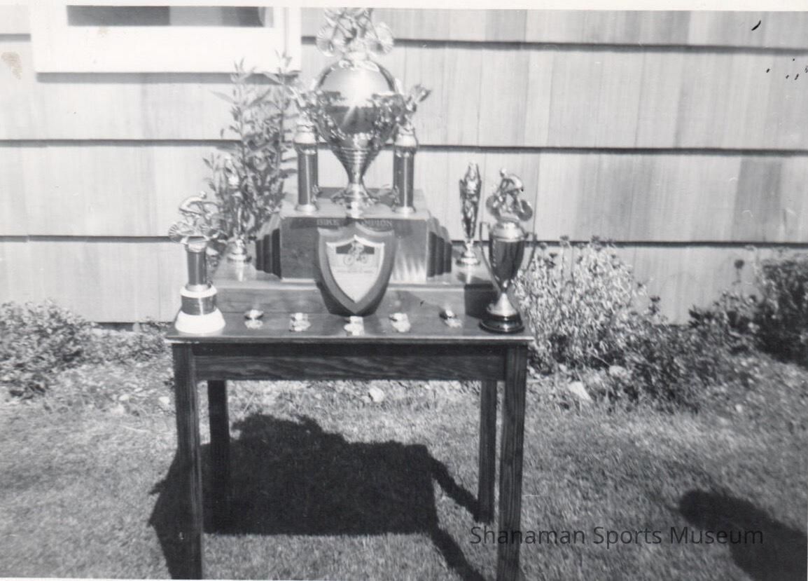 Richard ‘Dick’ Perkins shows off the trophies he won for state bicycle races during the summer of 1952. Perkins received his first racing bike from his father, a bike shop owner, in 1949 and went on to claim the junior Washington Amateur Bicycle League Championship in June of that year. Perkins, who attended Stadium High in Tacoma, won the race the next three years, each time winning a spot to nationals. Perkins raced in San Diego, New Jersey and twice in Columbus and was interviewed by ABC’s Wide World of Sports. He retired from bicycle racing in 1952.Lexicon